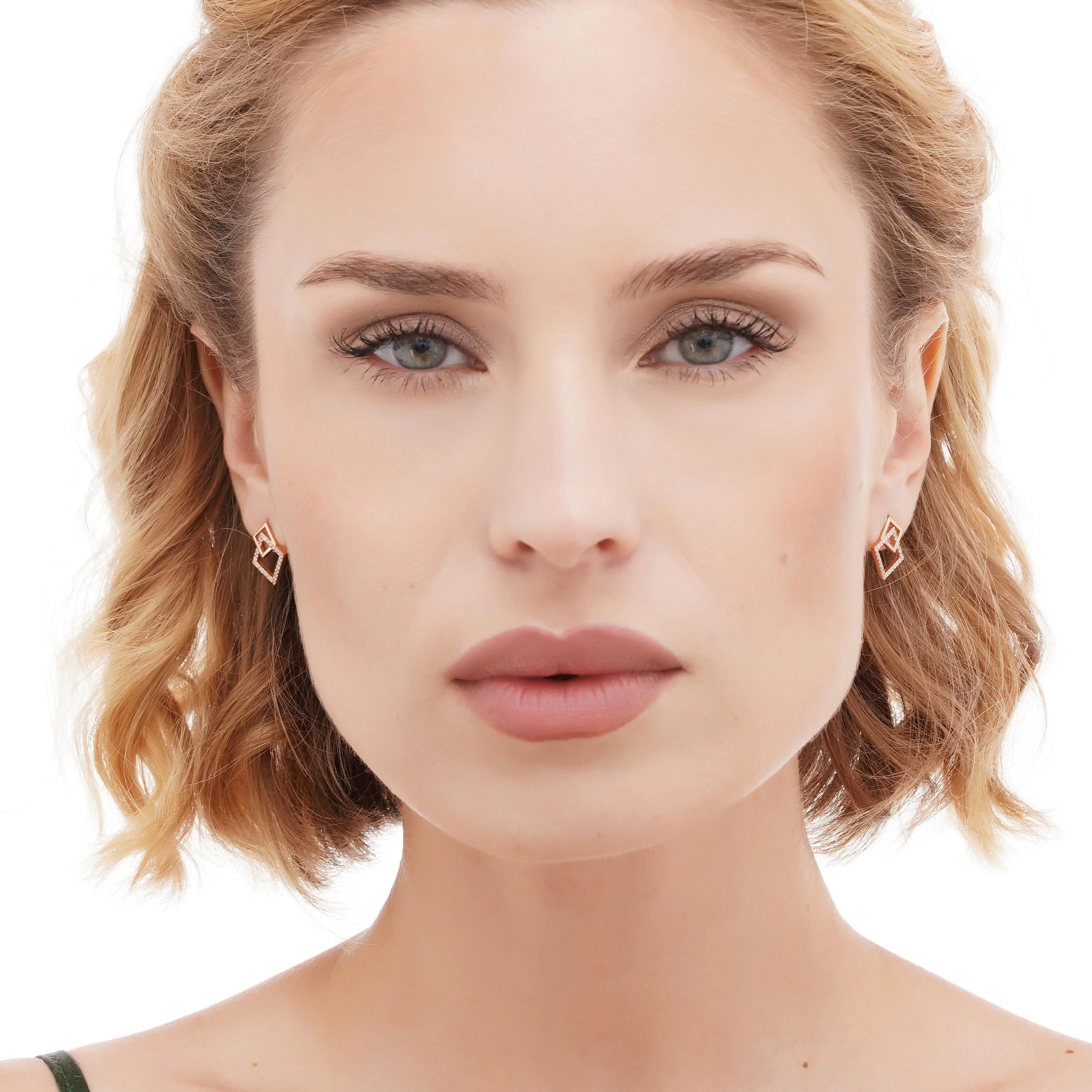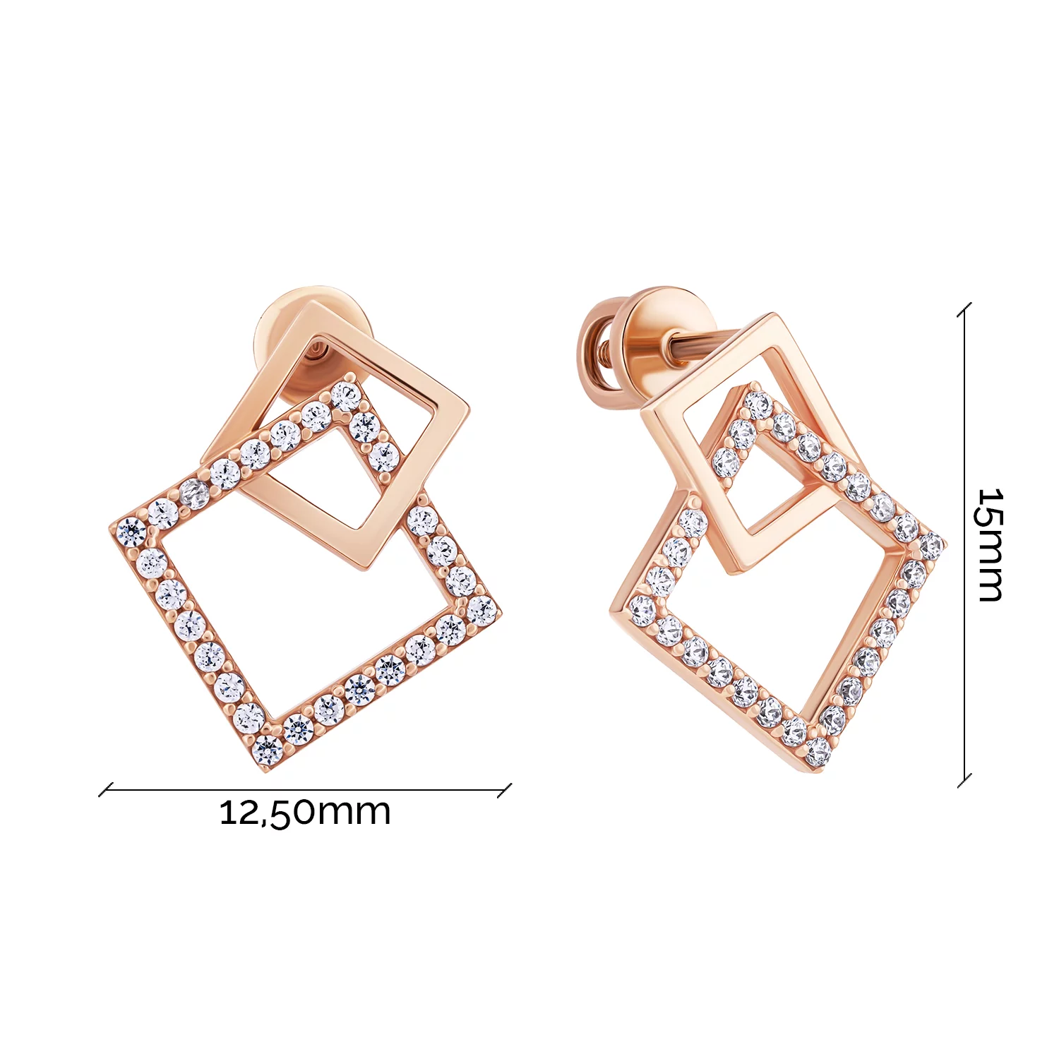 Элегантные сержки-гвоздики в форме квадрата в красном золоте с фианитами - 1876967