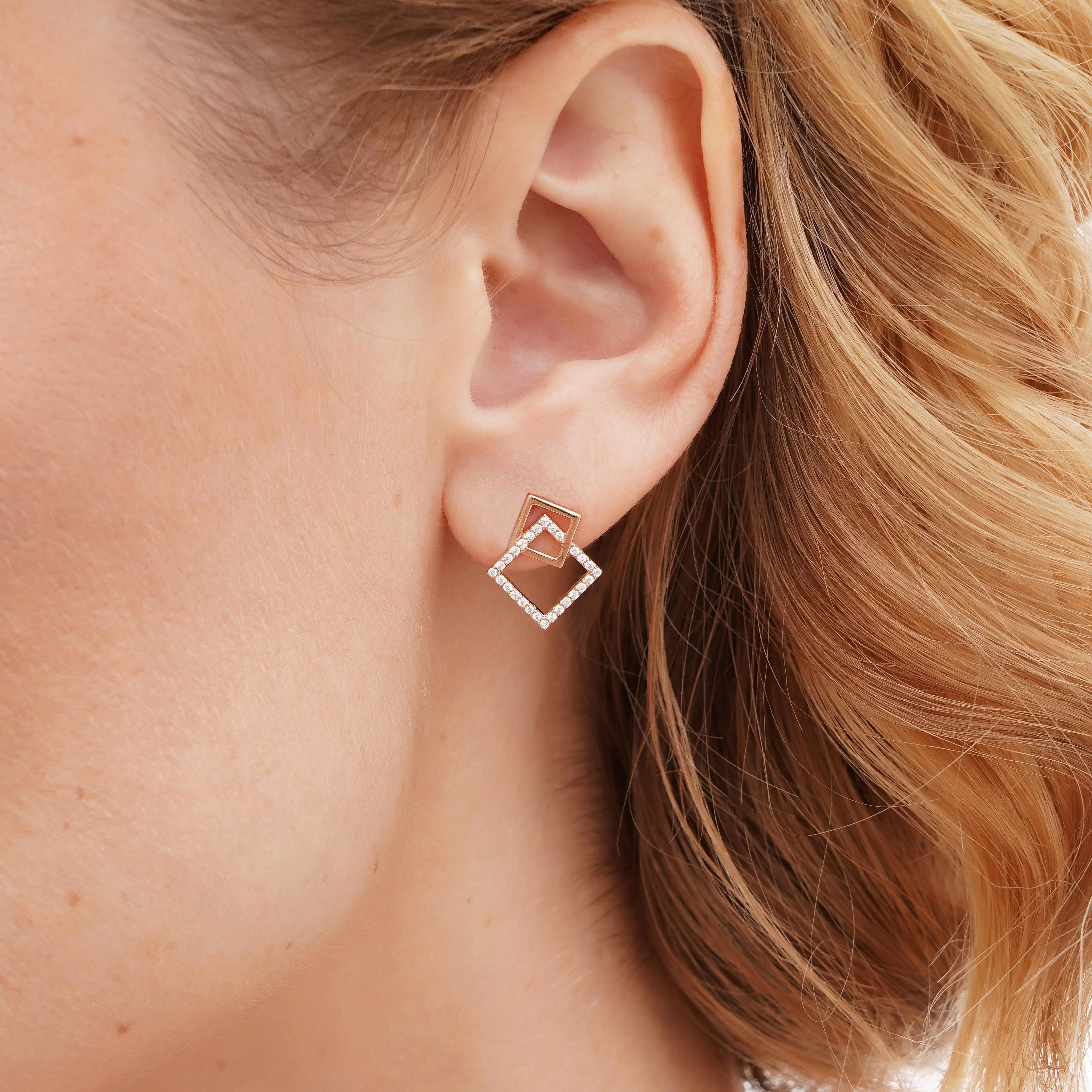 Экстравагантные сережки в форме квадрата из белого золота с бриллиантами - 1876575