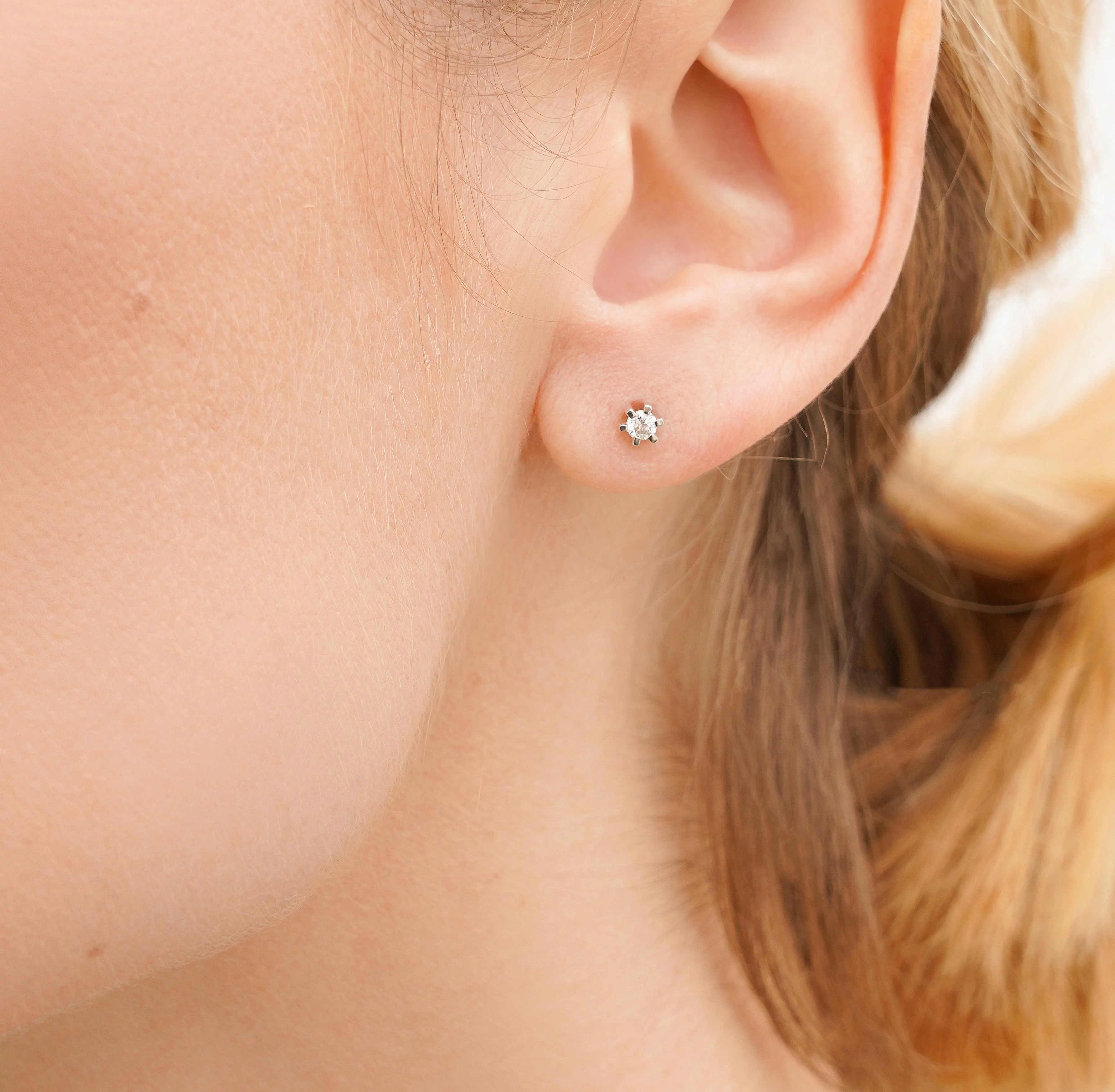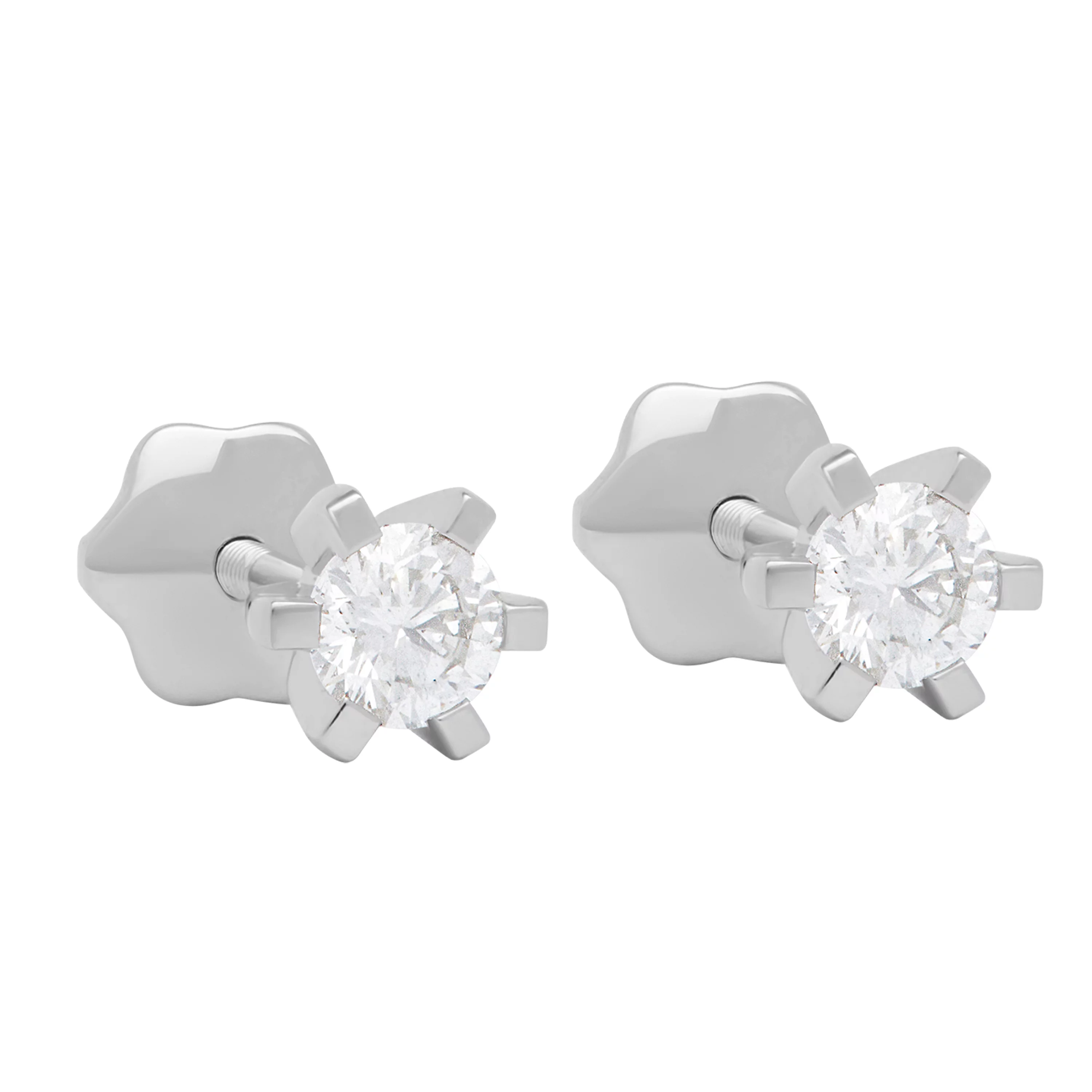 Серьги-гвоздики в белом золоте с бриллиантом в стиле минимализм - 1818610