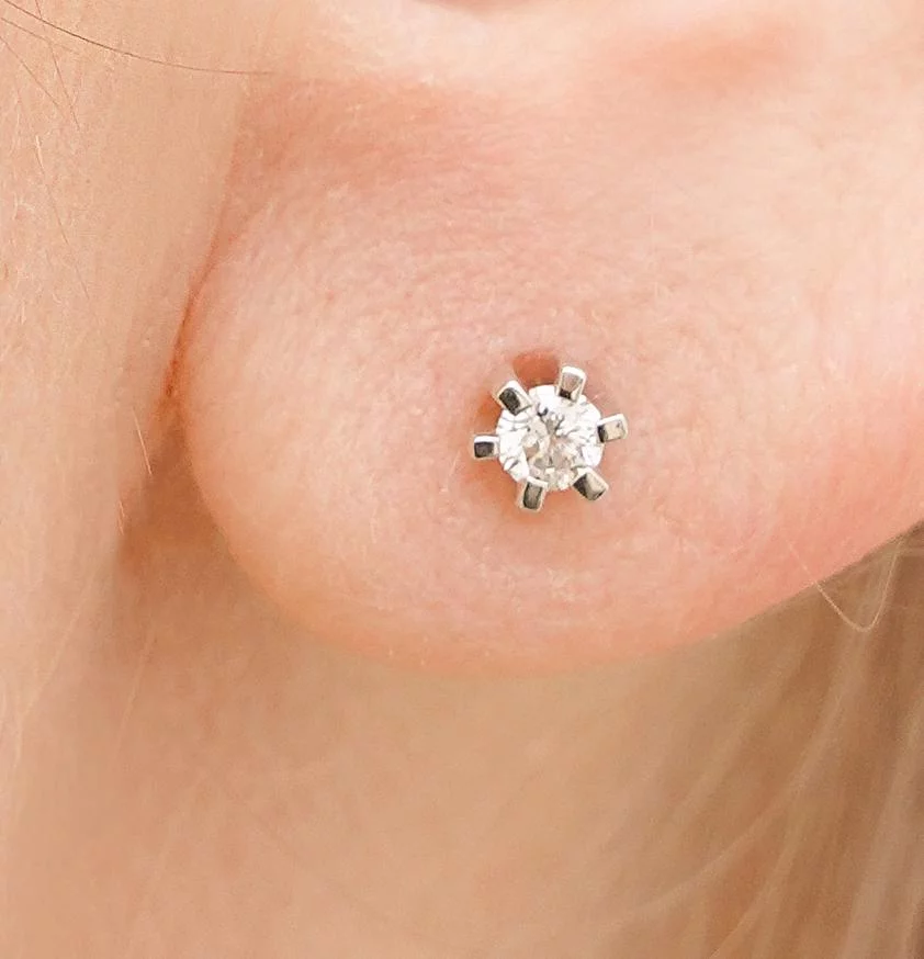 Серьги-гвоздики из белого белого с бриллиантом в стиле минимализм - 1818556