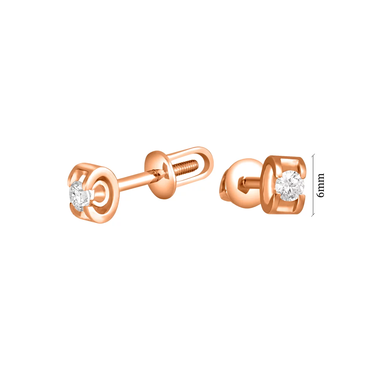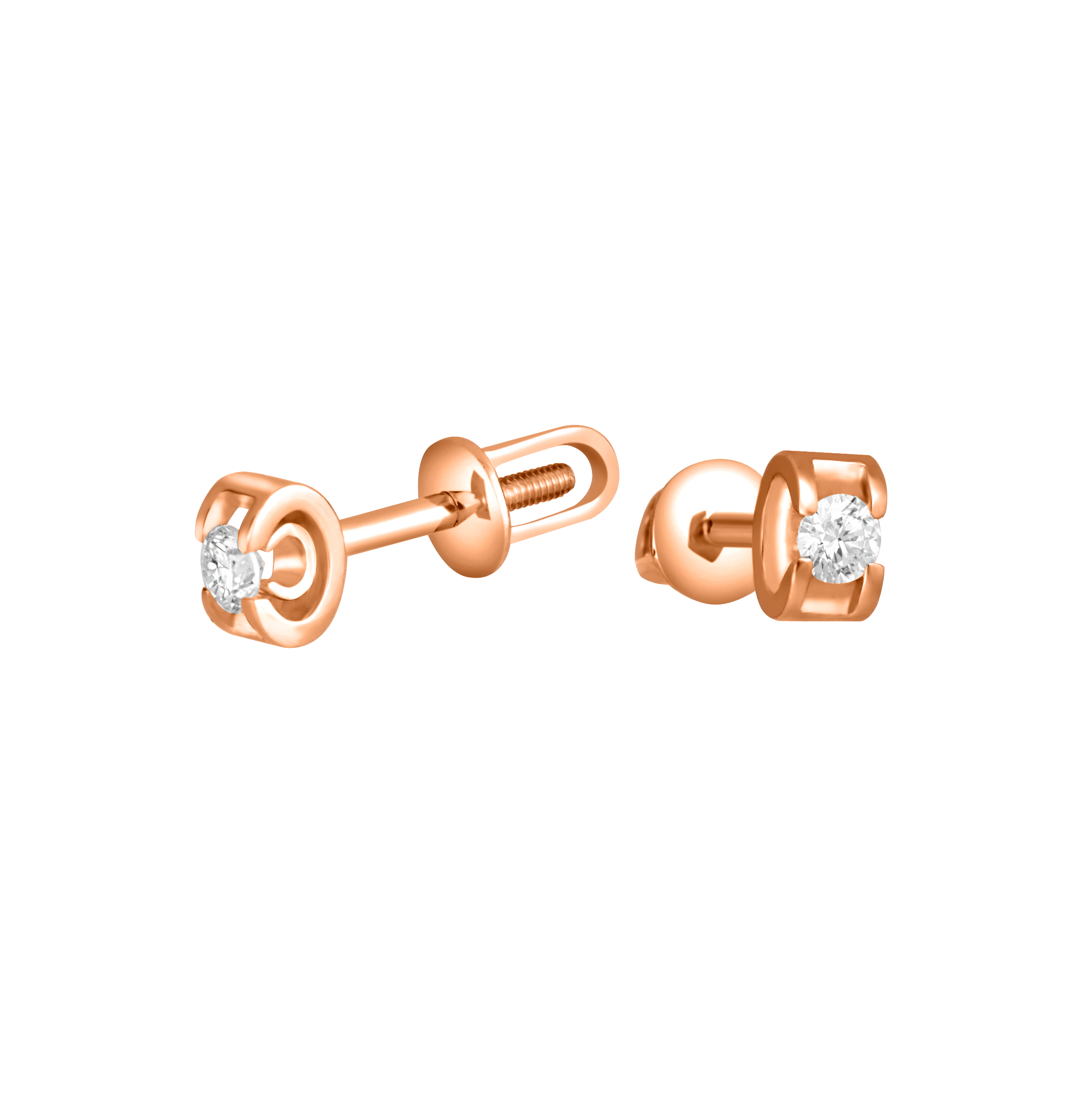 Серьги-гвоздики из красного золота с бриллиантами - 963302
