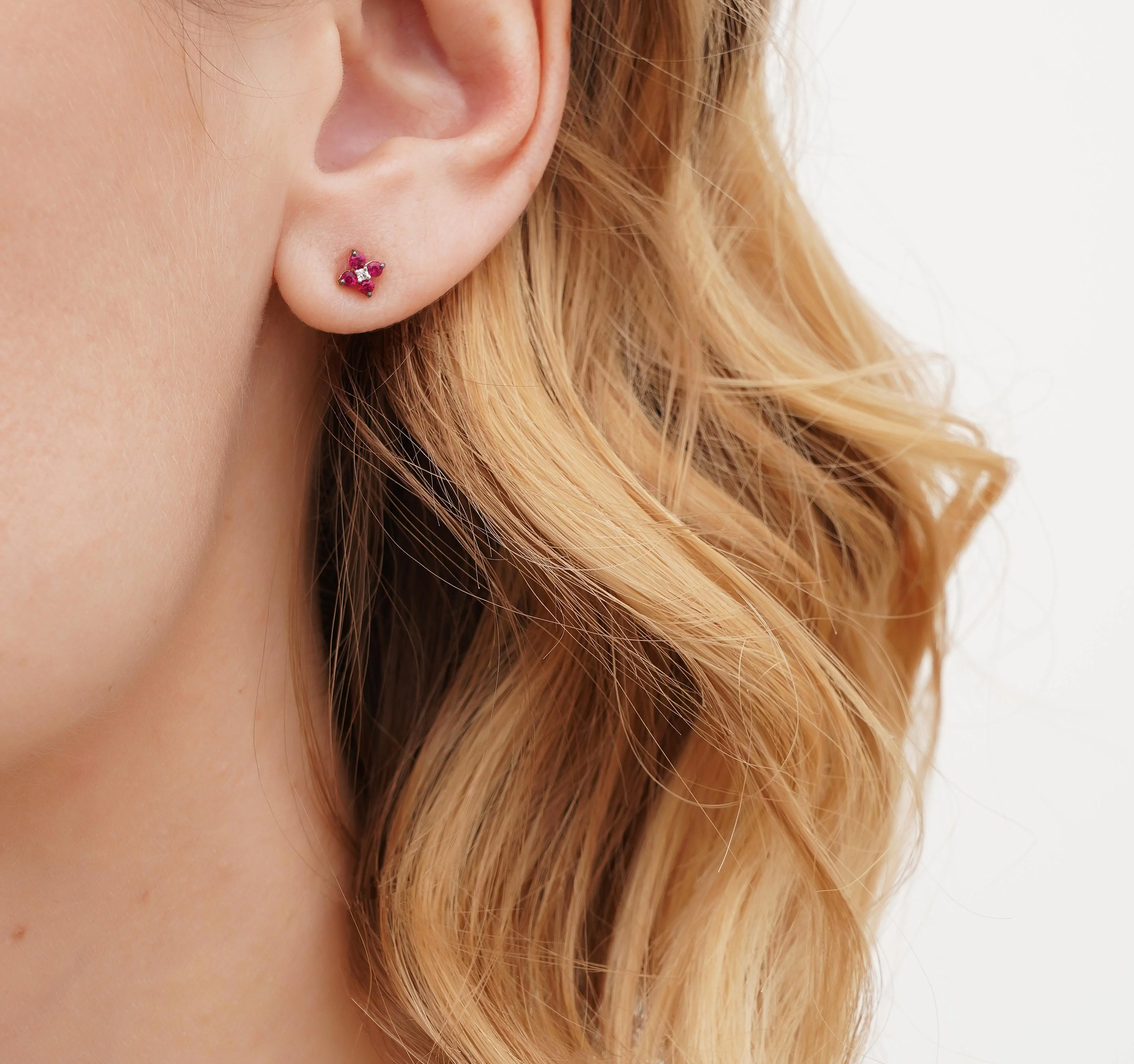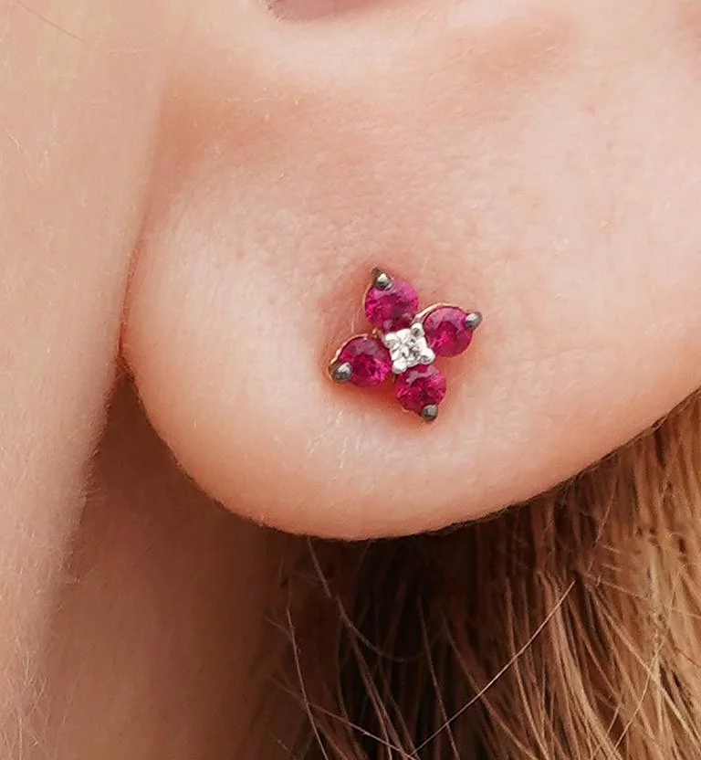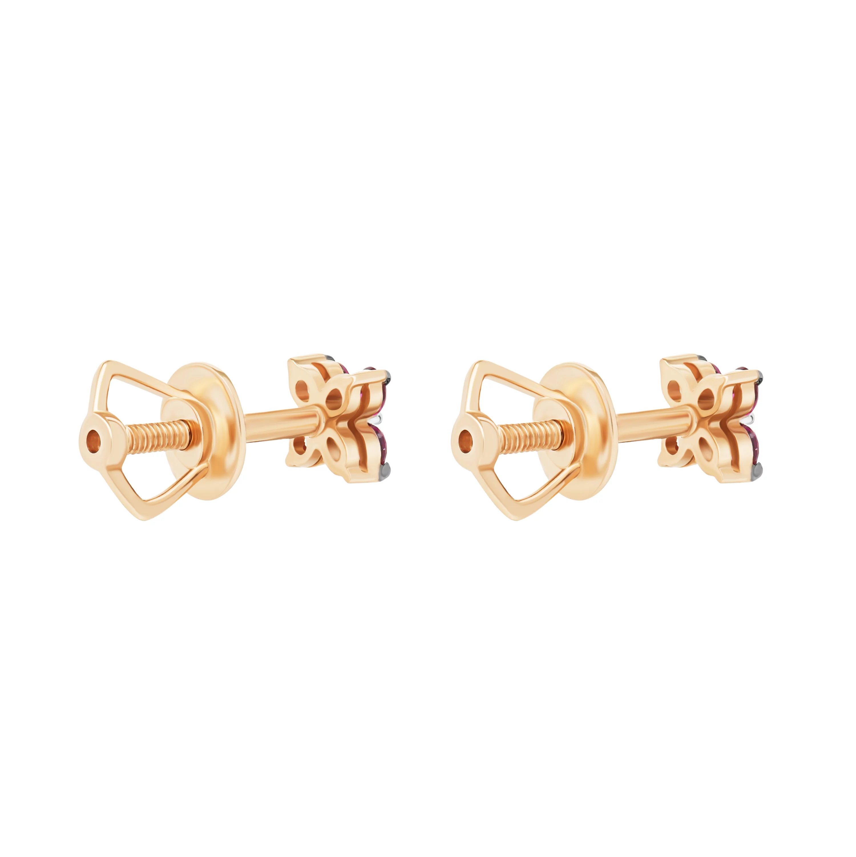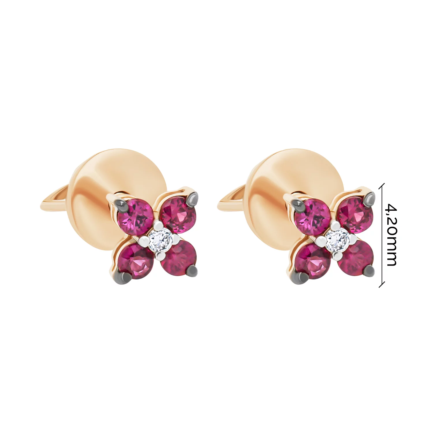 Сережки-гвоздики из красного золота с рубином и бриллиантами - 1727007