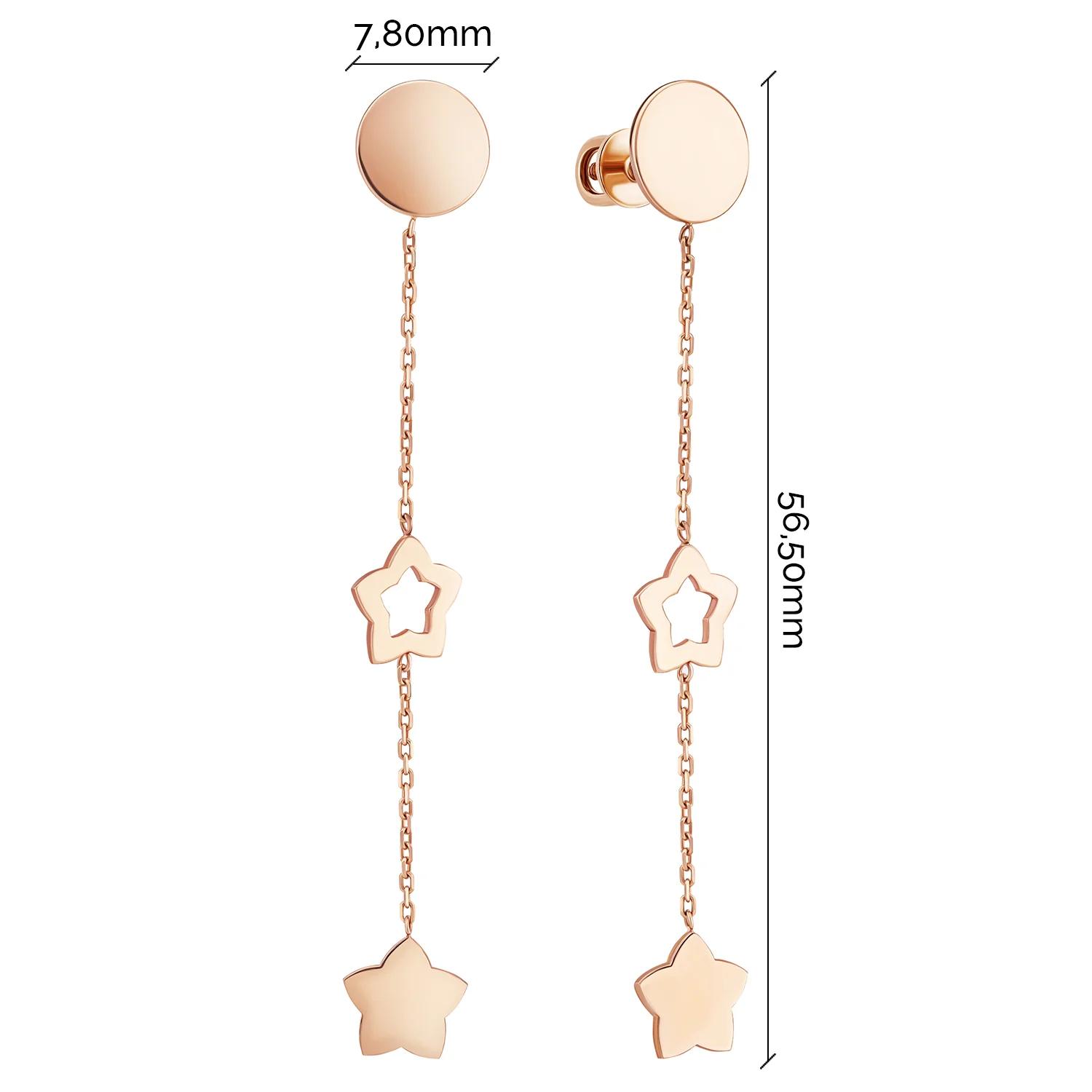 Сережки-гвоздики с подвесами "Звездочки" в красном золоте - 1949453