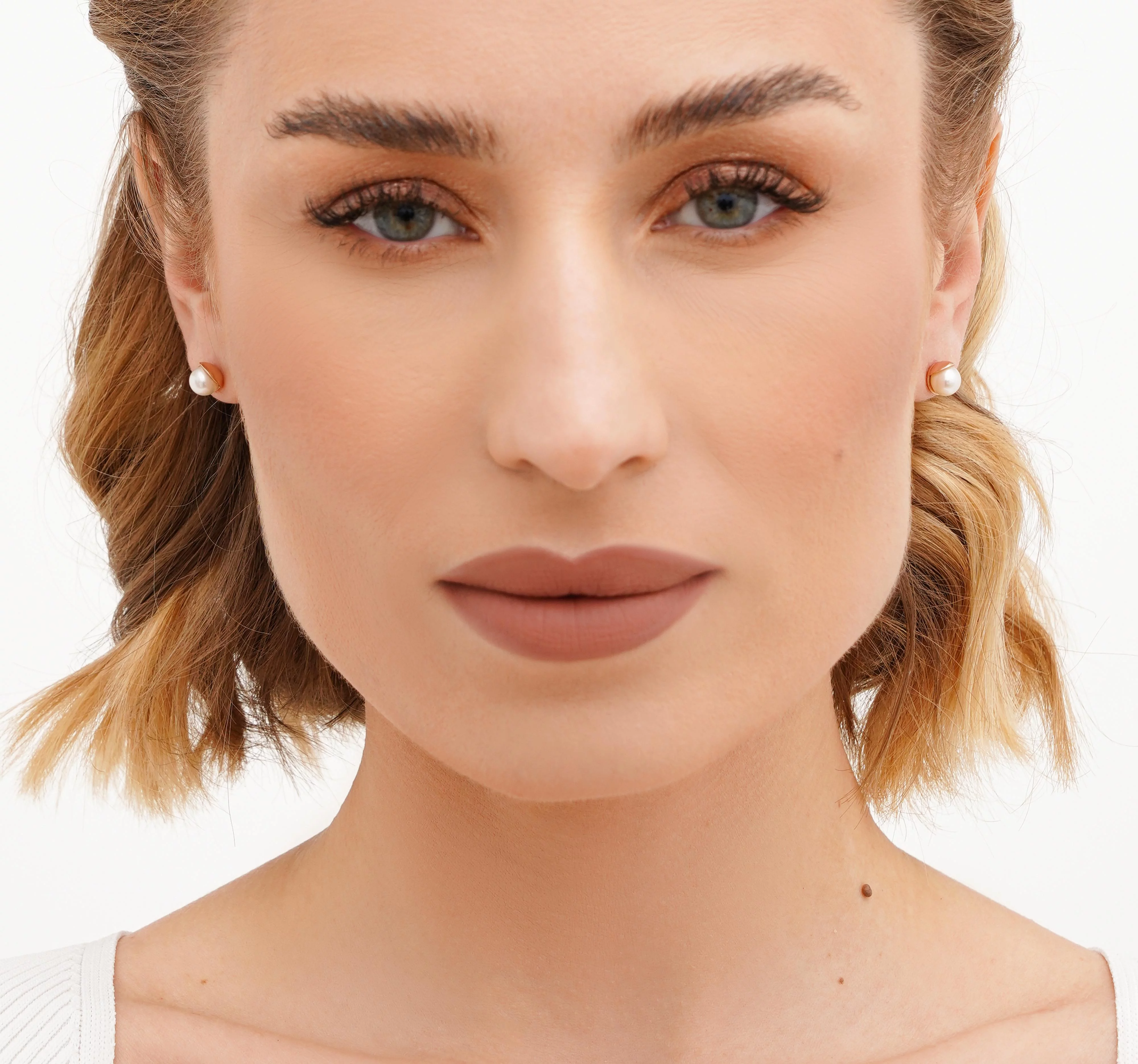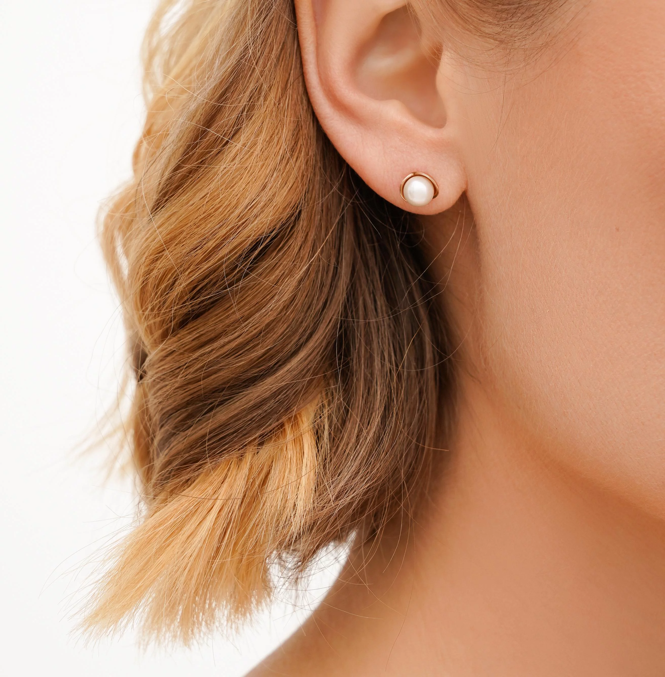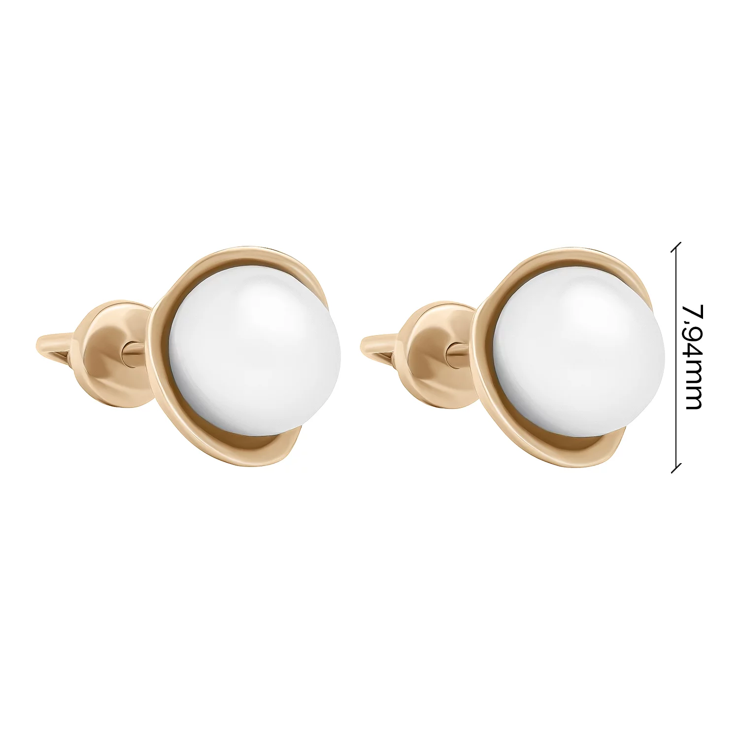 Сережки-гвоздики с жемчужиной и фианитами из красного золота - 1617638