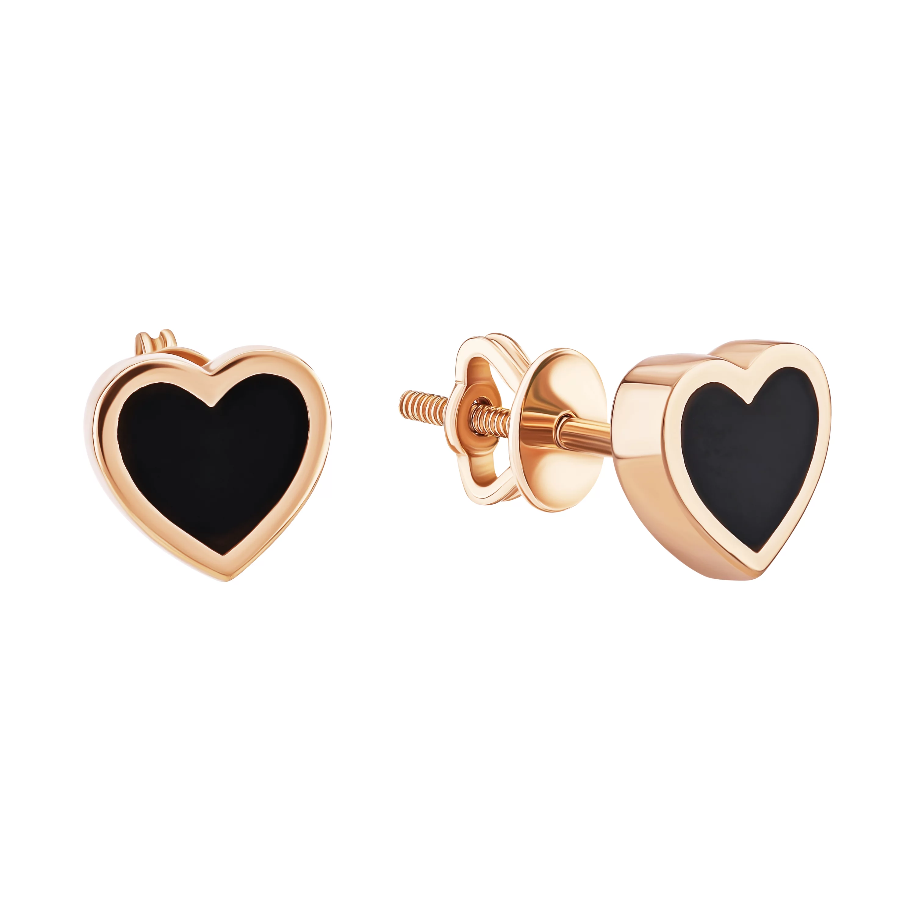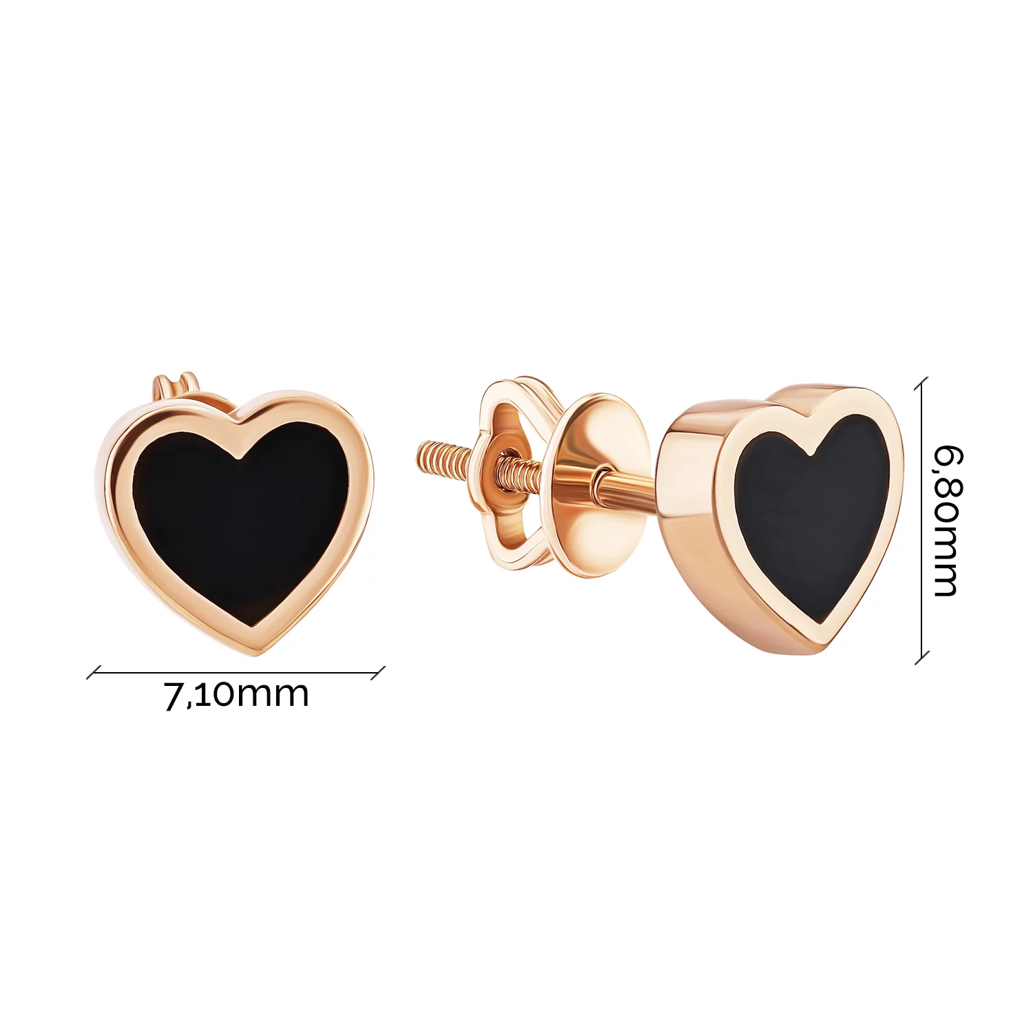 Элегантные сережки-гвоздики "Монетка" из красного золота с эмалью - 1923478