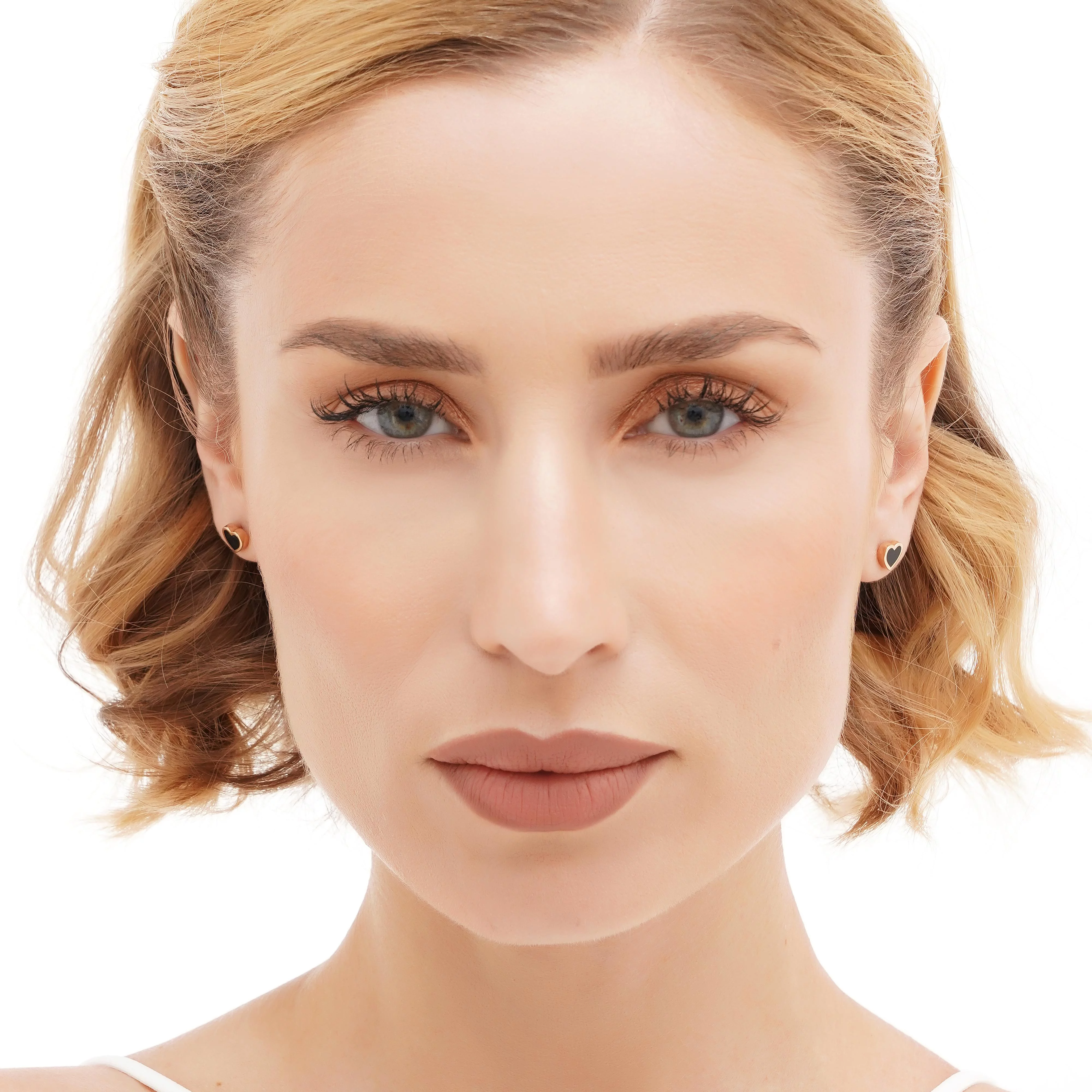 Сережки-гвоздики в форме клевера из красного золота с фианитами - 1748321