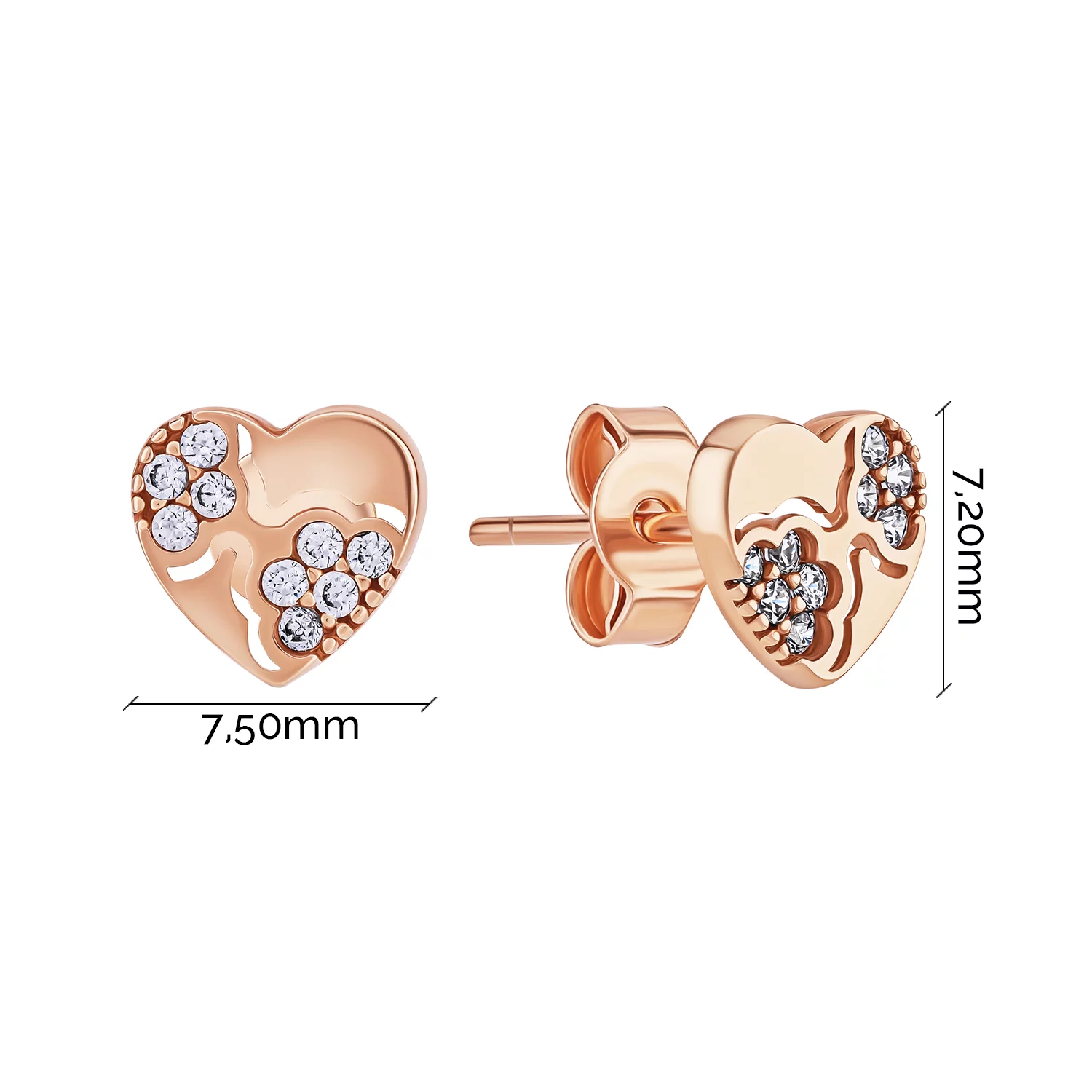 Сережки-гвоздики детские из красного золота с фианитом "Цветочки" - 1095080