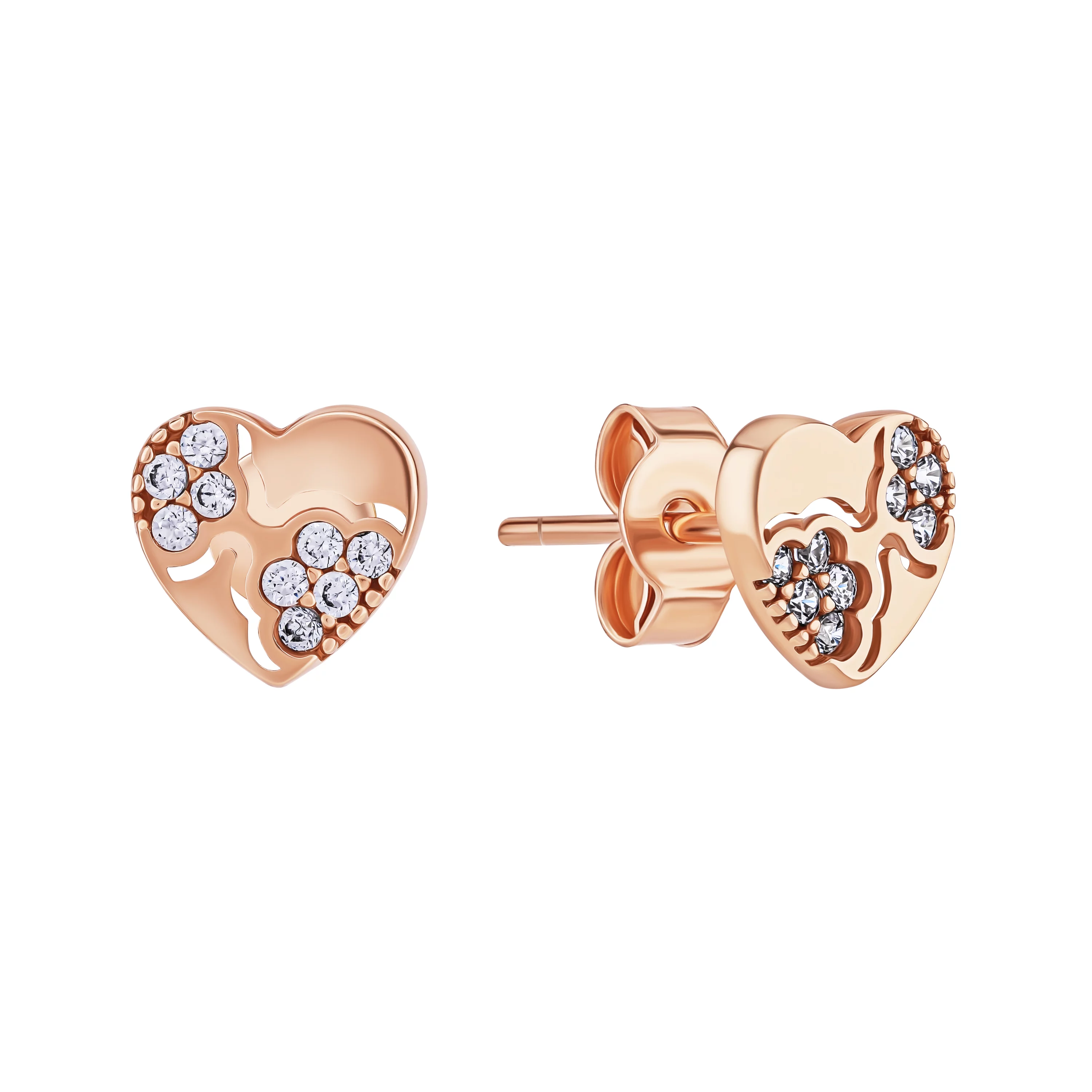 Сережки-гвоздики из красного золота с фианитом "Дерево жизни" - 1095072