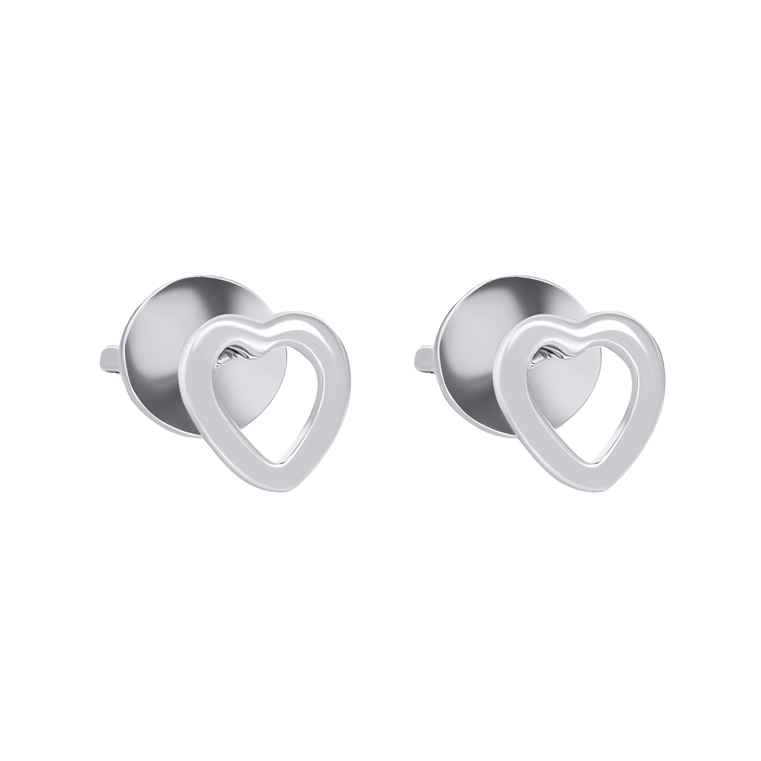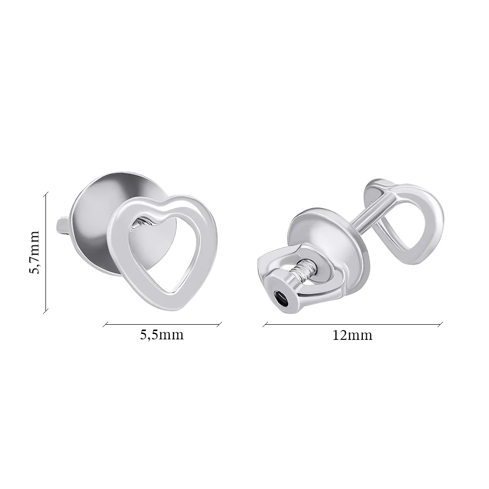 Сережки-гвоздики "Сердце" из серебра - 1501329