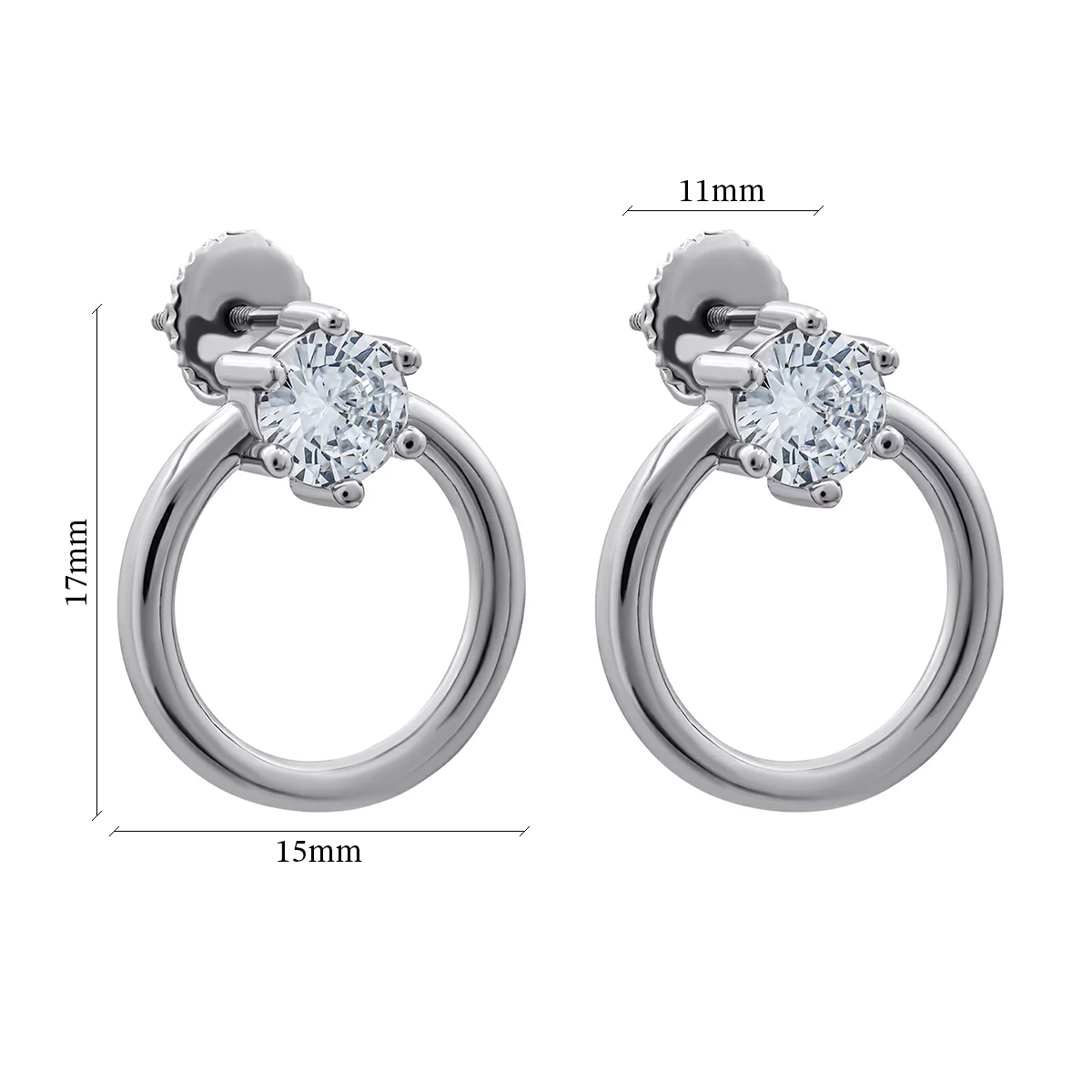 Сережки-гвоздики серебряные в форме кольца с фианитом - 1269065