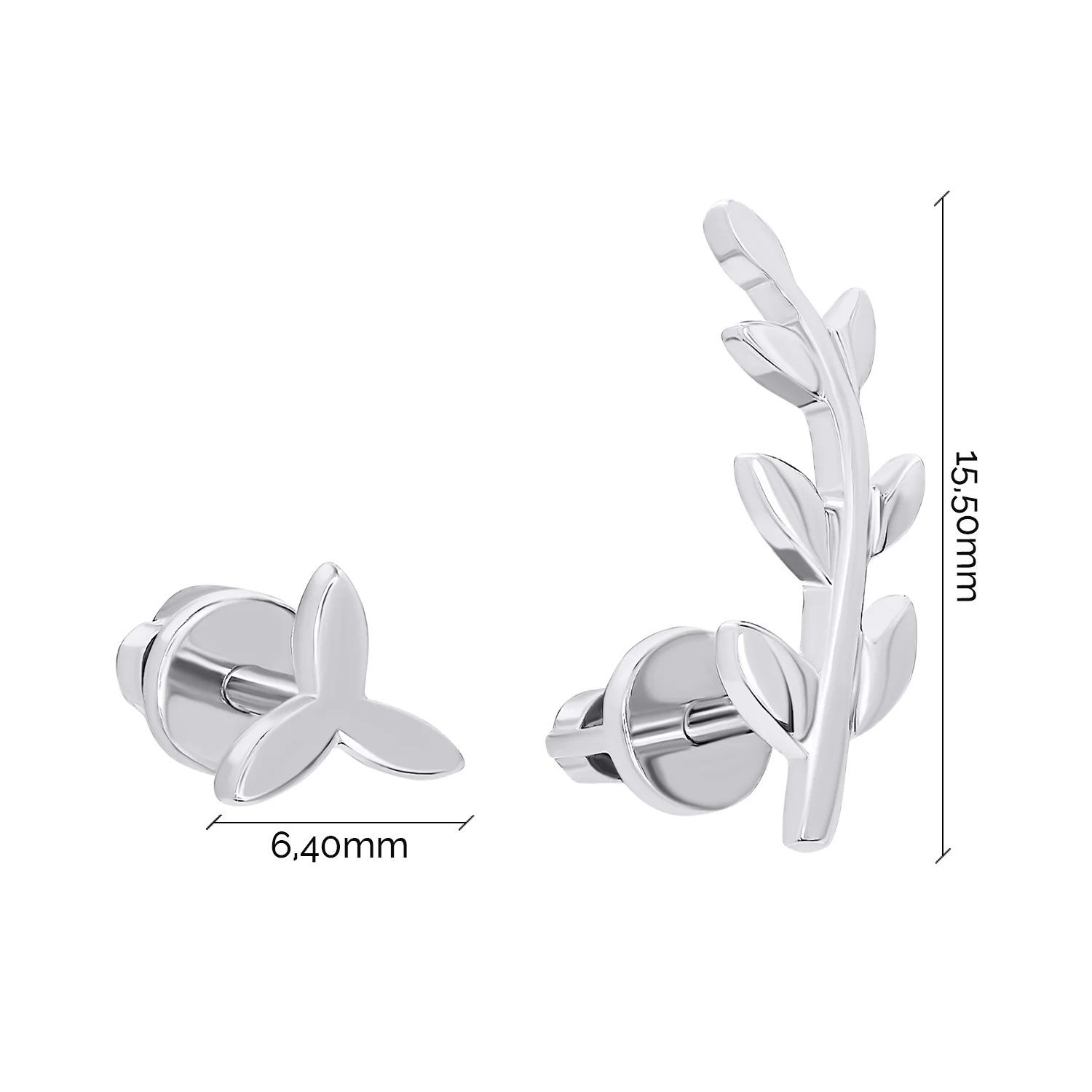 Серебряные сережки-гвоздики в форме веточки - 1487244