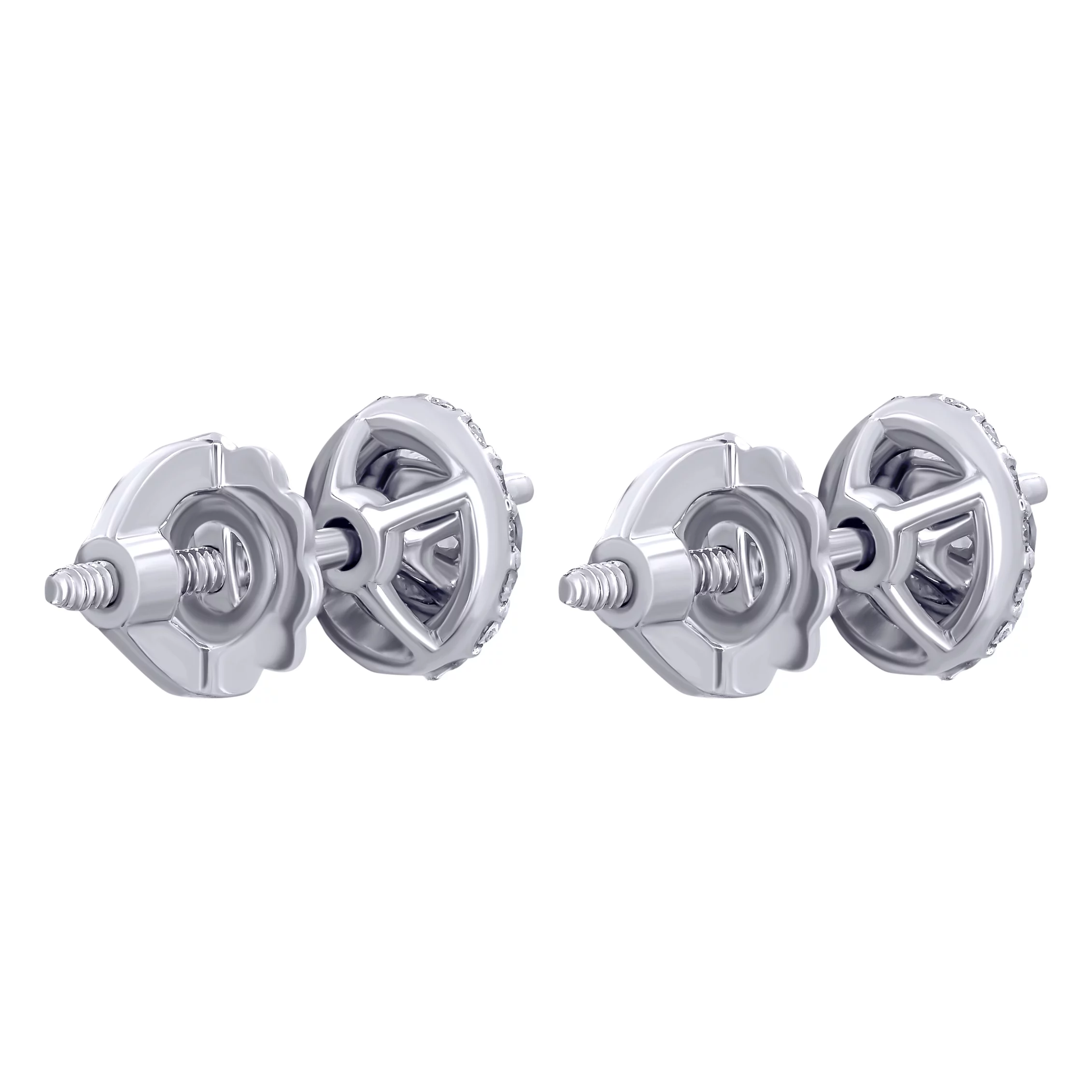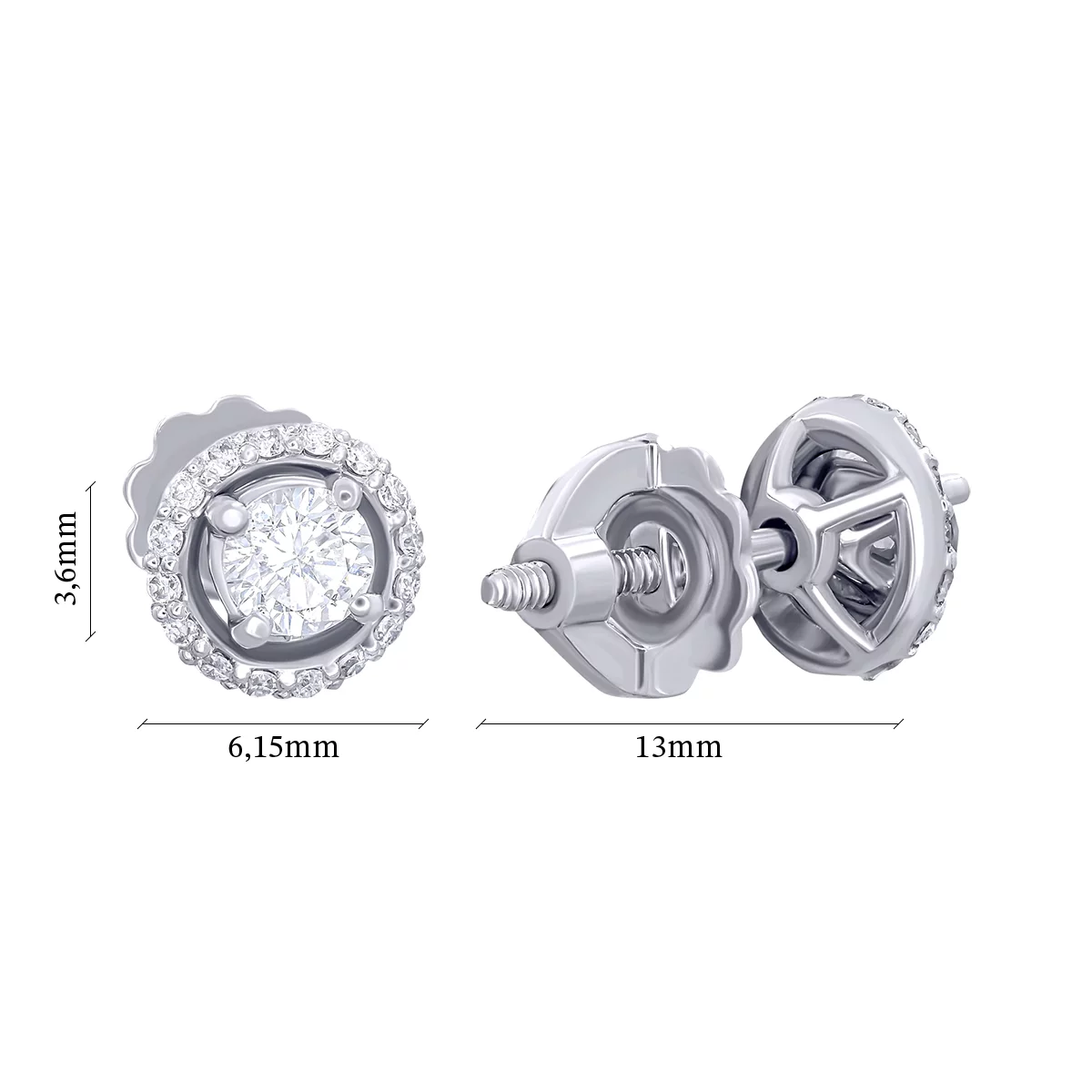 Сережки-гвоздики "Квадрат" из белого золота с изумрудом и бриллиантами - 1804068