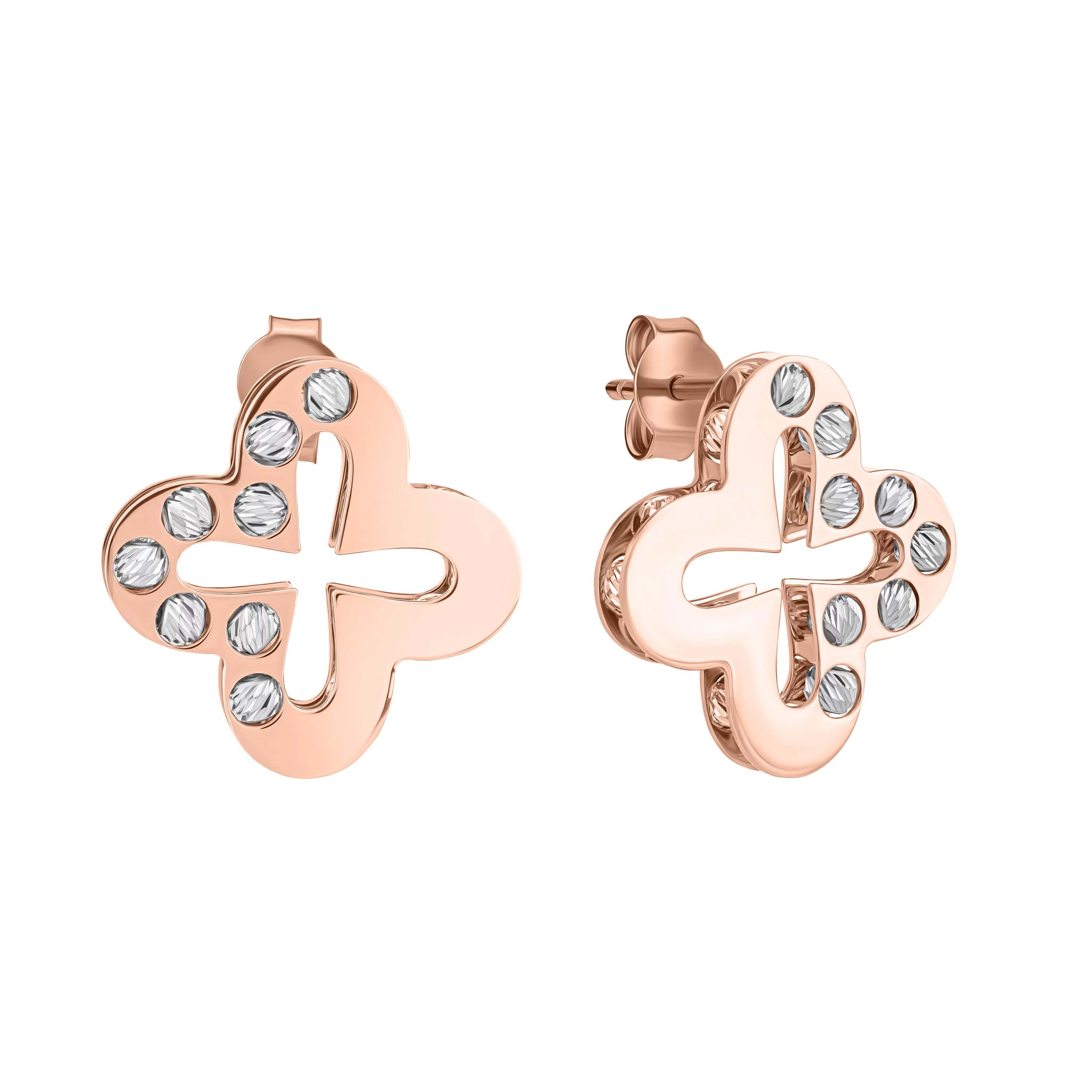 Стильные сережки-гвоздики в форме цветка в комбинированном золоте и алмазной гранью - 1870043
