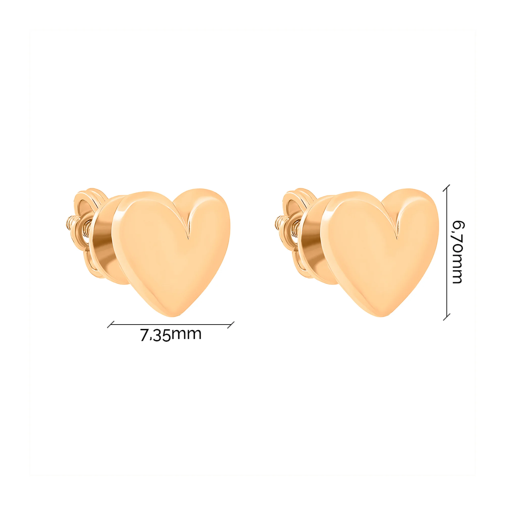 Сережки-гвоздики з червоного золота в форме сердечка - 1454211