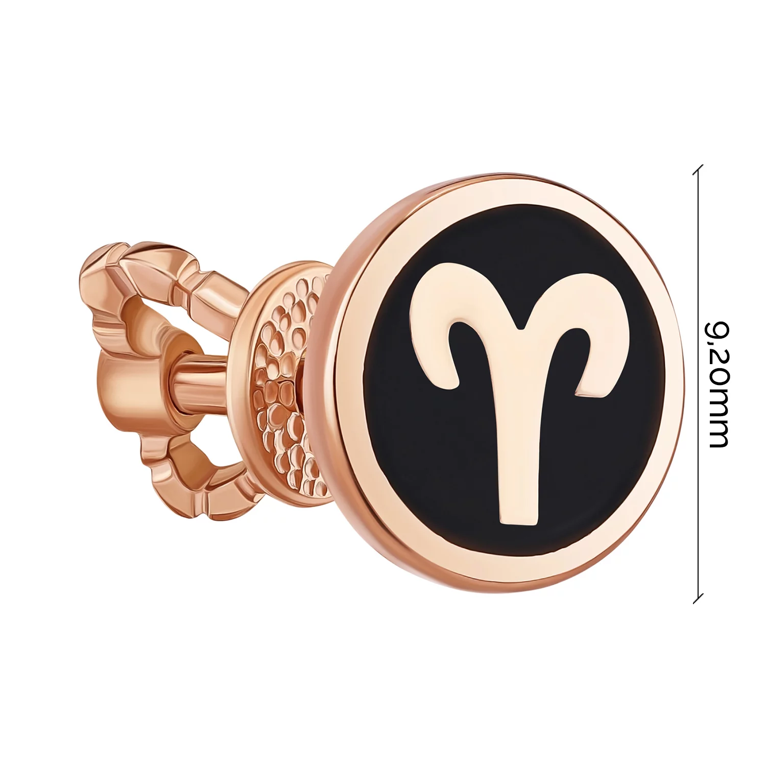 Моносережка-пусет "Знак зодиака Телец" в красном золоте с эмалью - 1958679