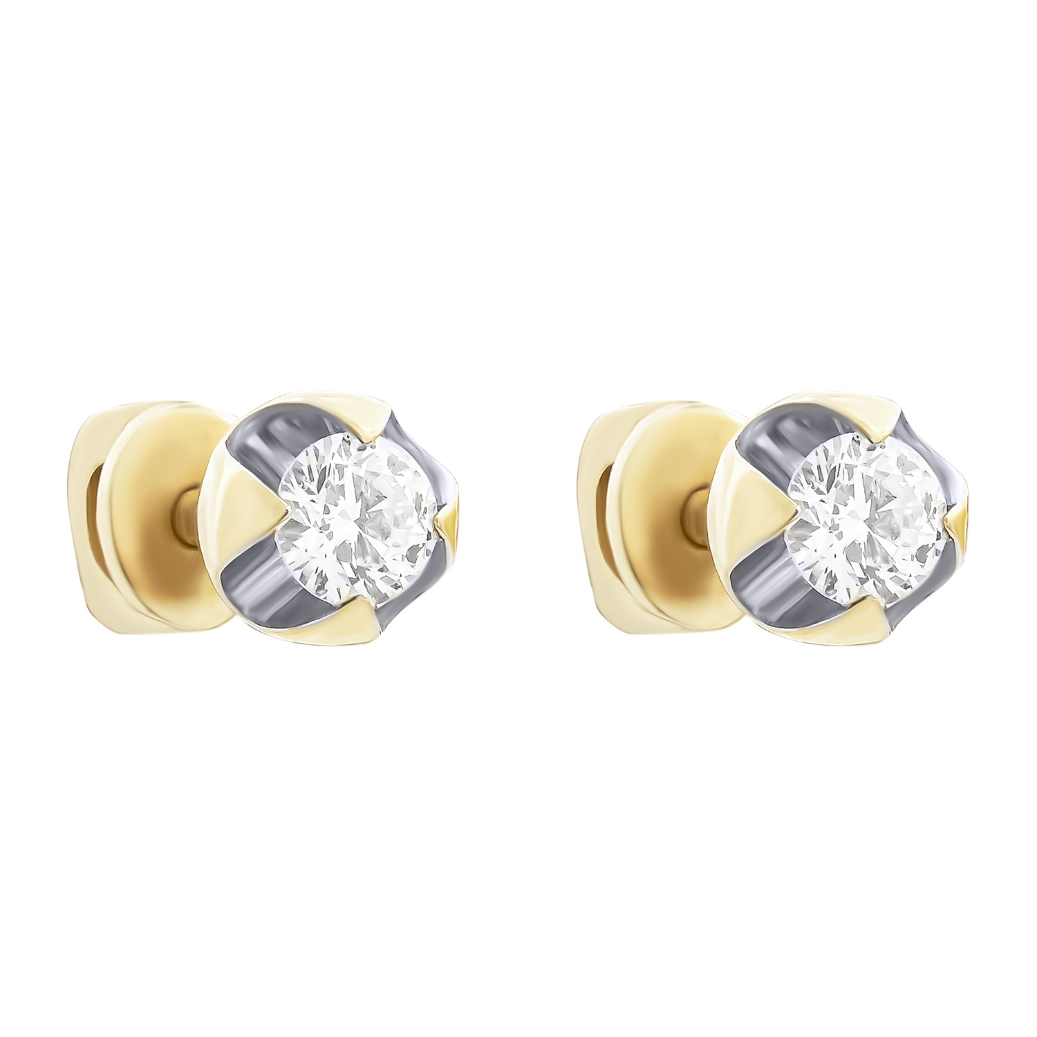 Сережки-гвоздики с бриллиантами в комбинированном золоте - 798650