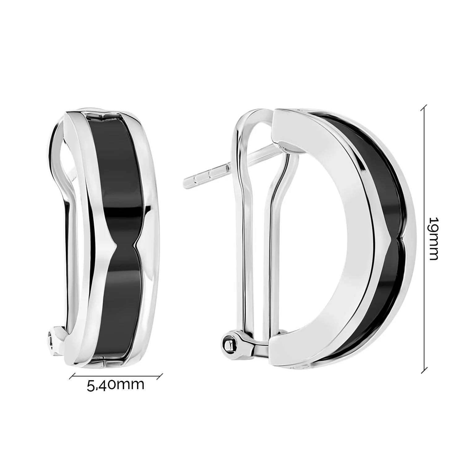 Сережки-гвоздики "Квадрат" из белого золота с изумрудом и бриллиантами - 1804068