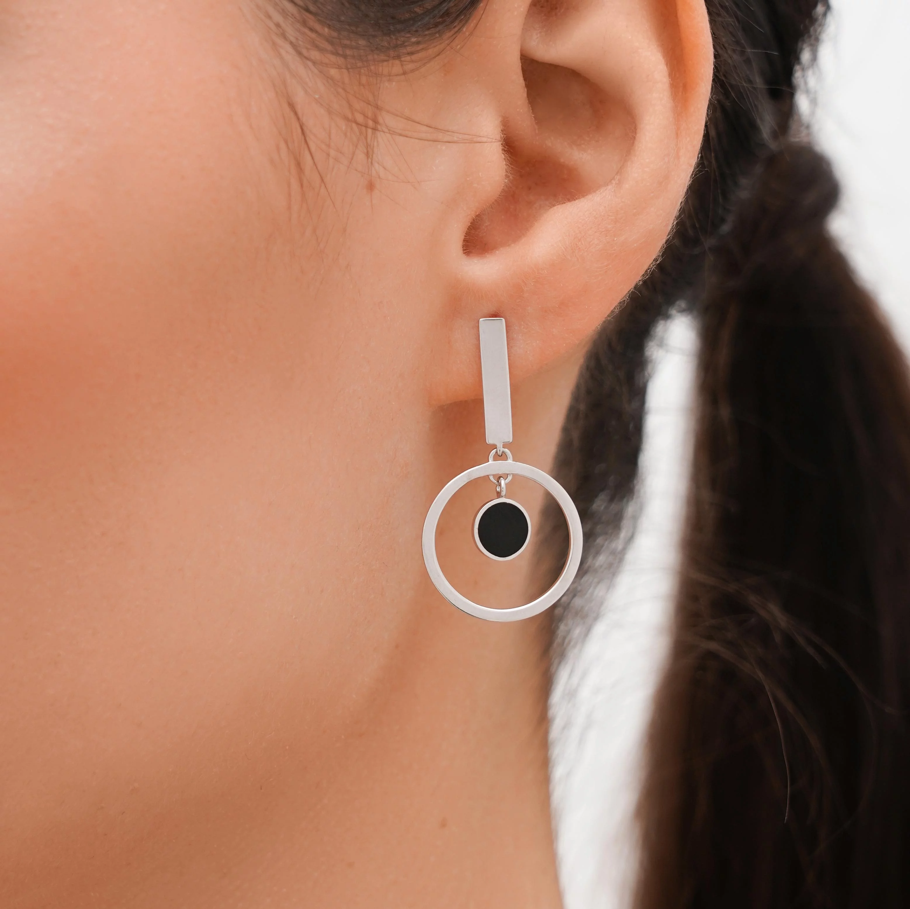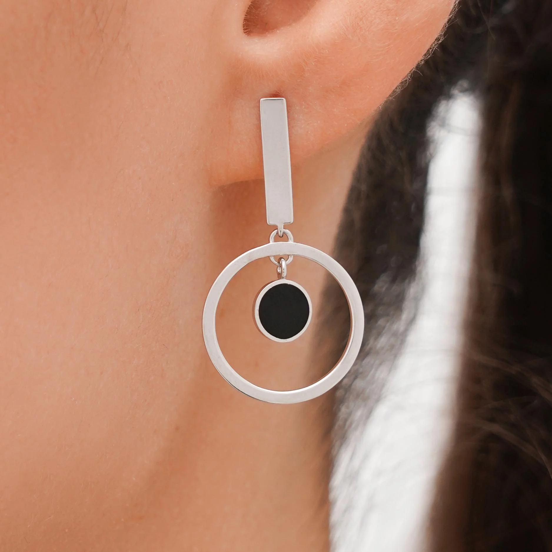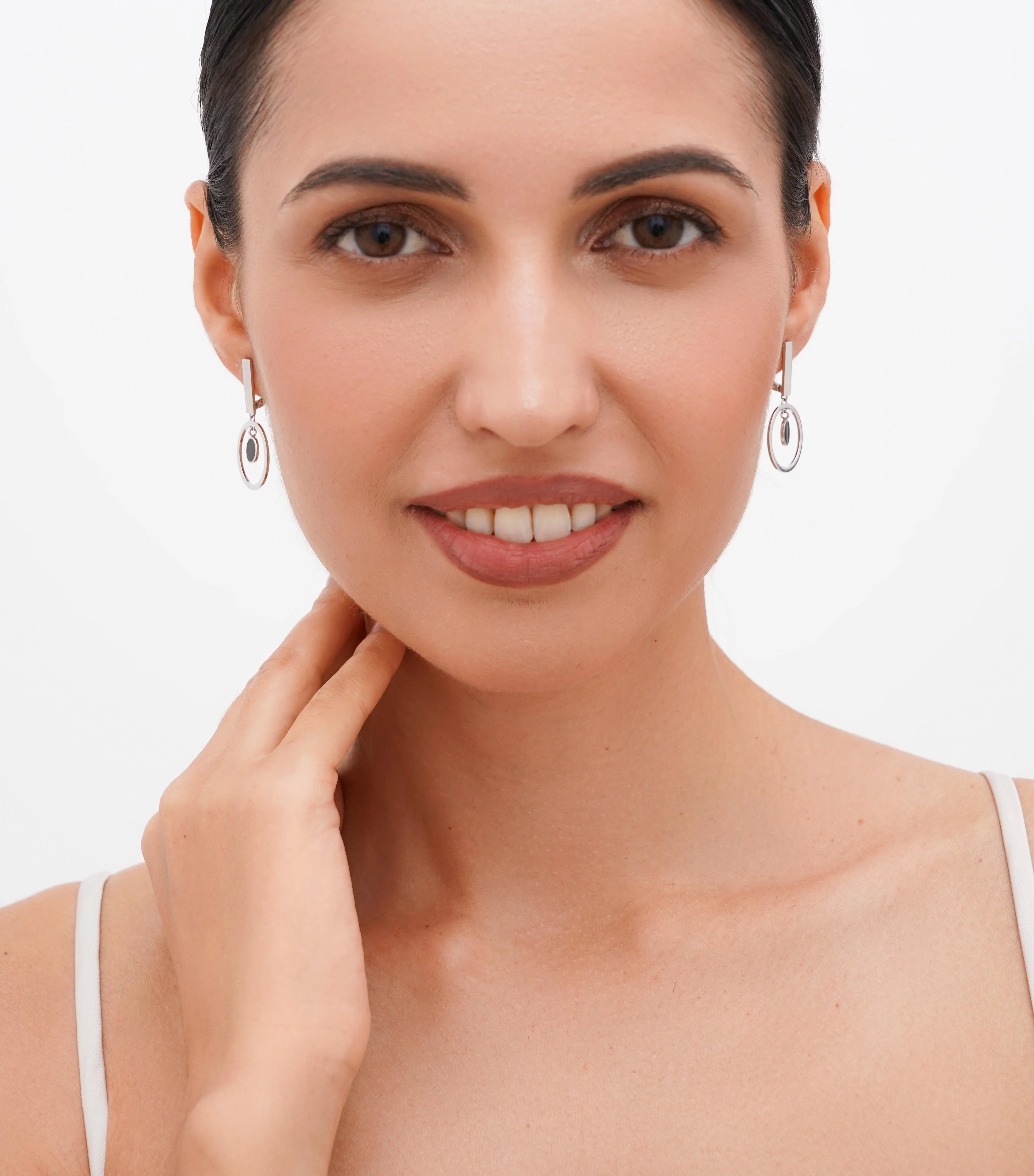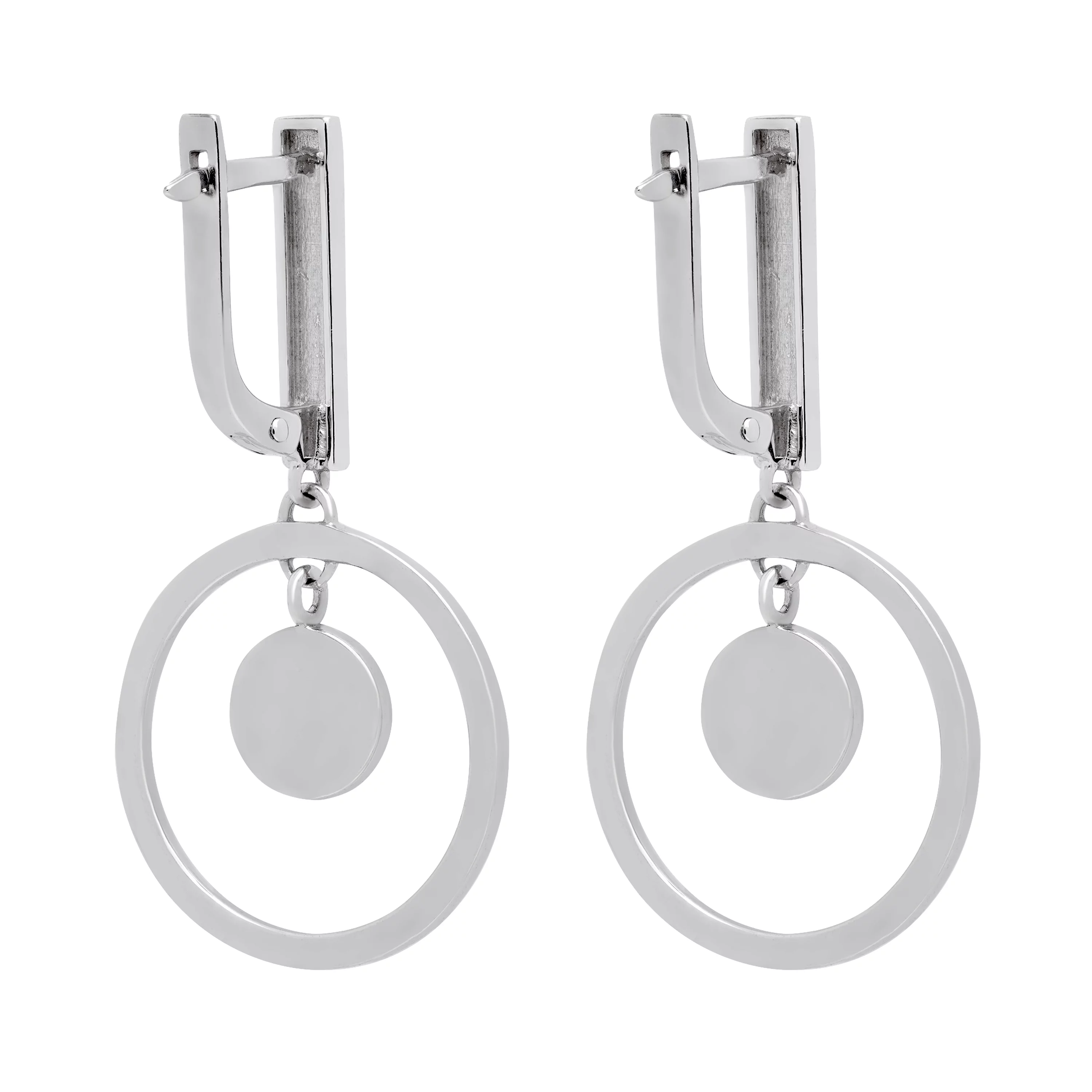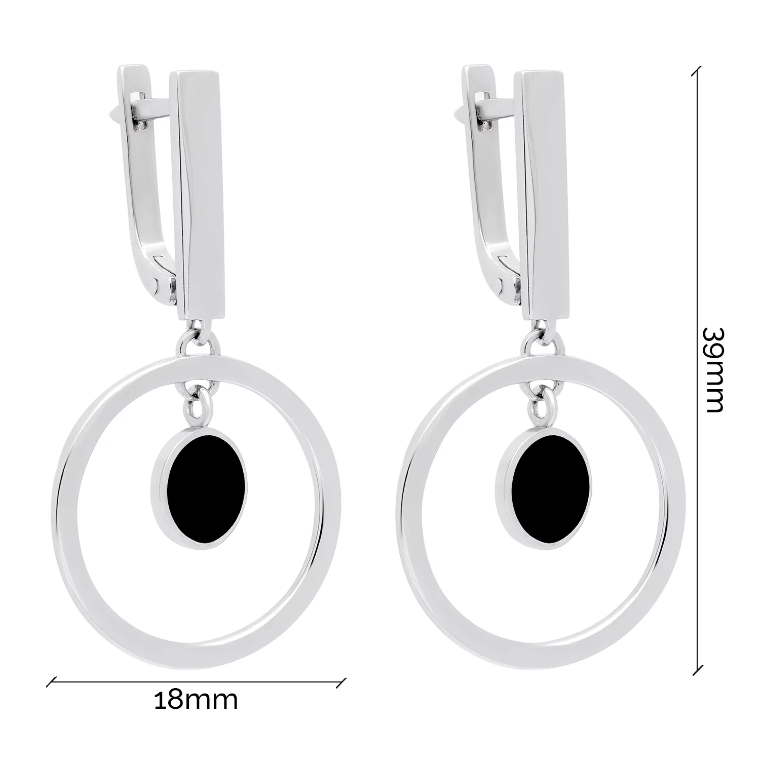 Классические сережки-гвоздики с подвесами из белого золота с эмалью - 1949910