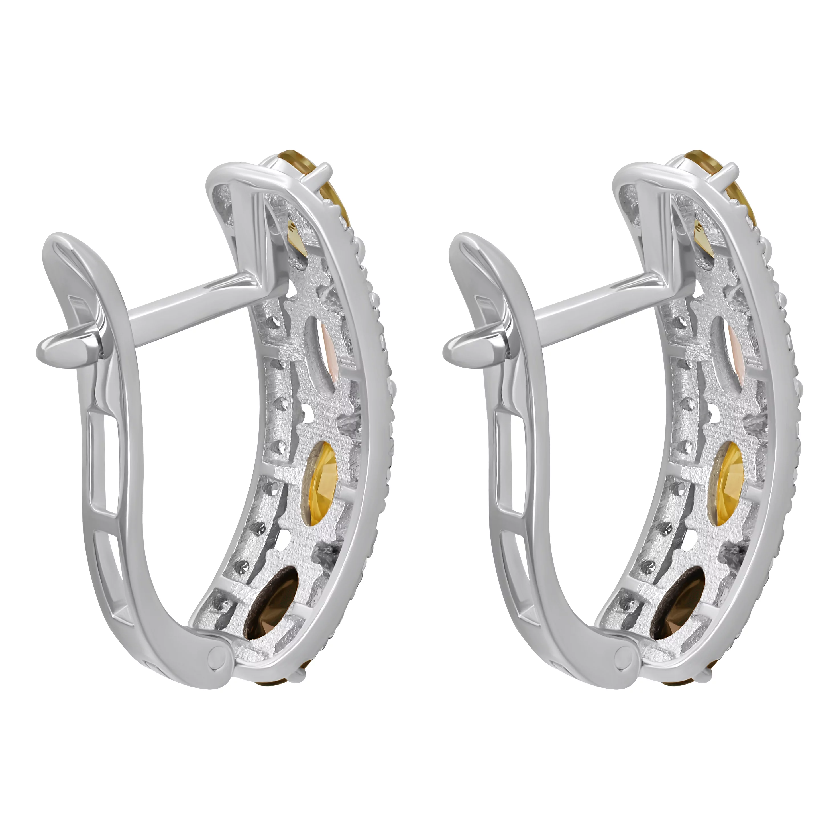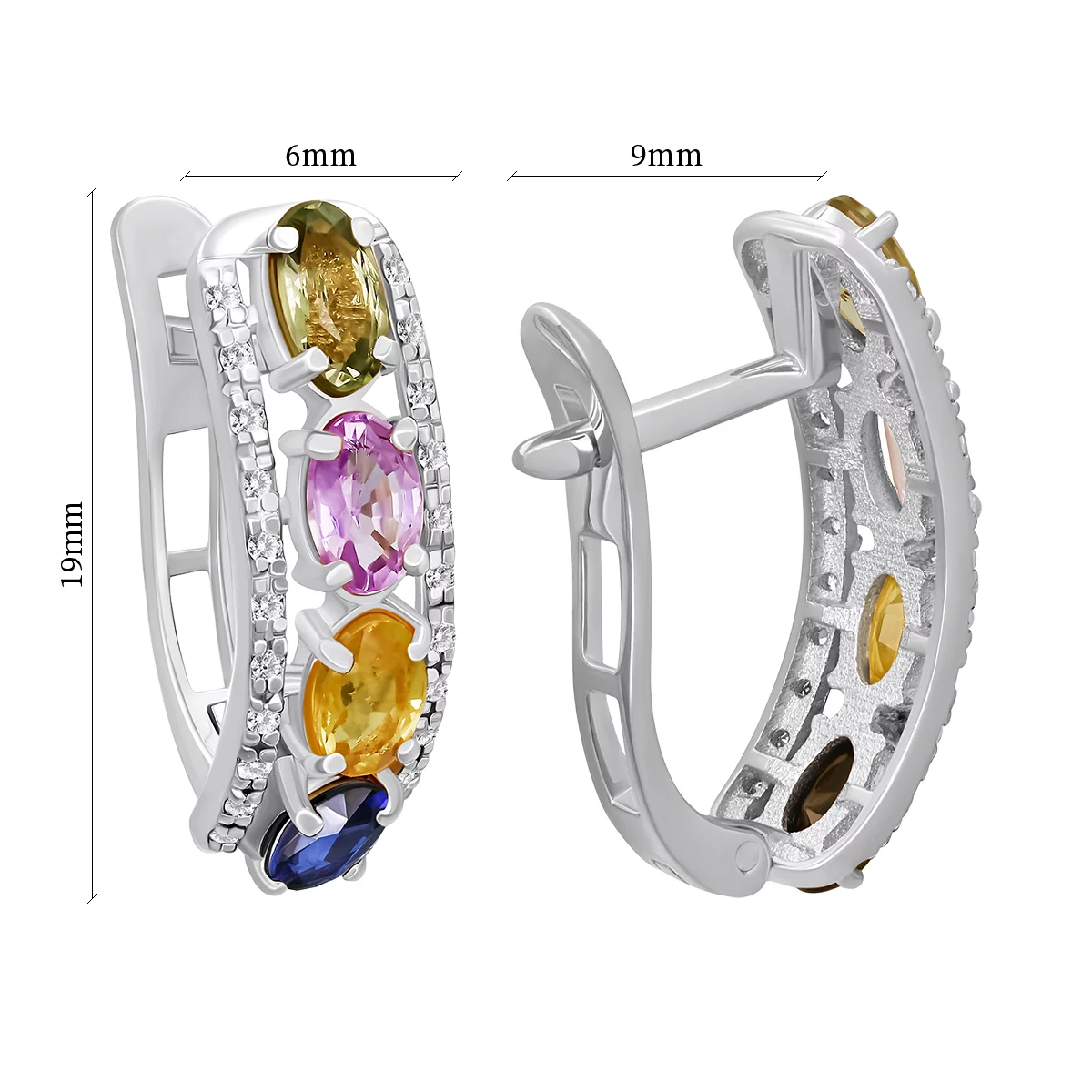 Сережки-гвоздики из белого золота с бриллиантами и сапфирами - 1474553