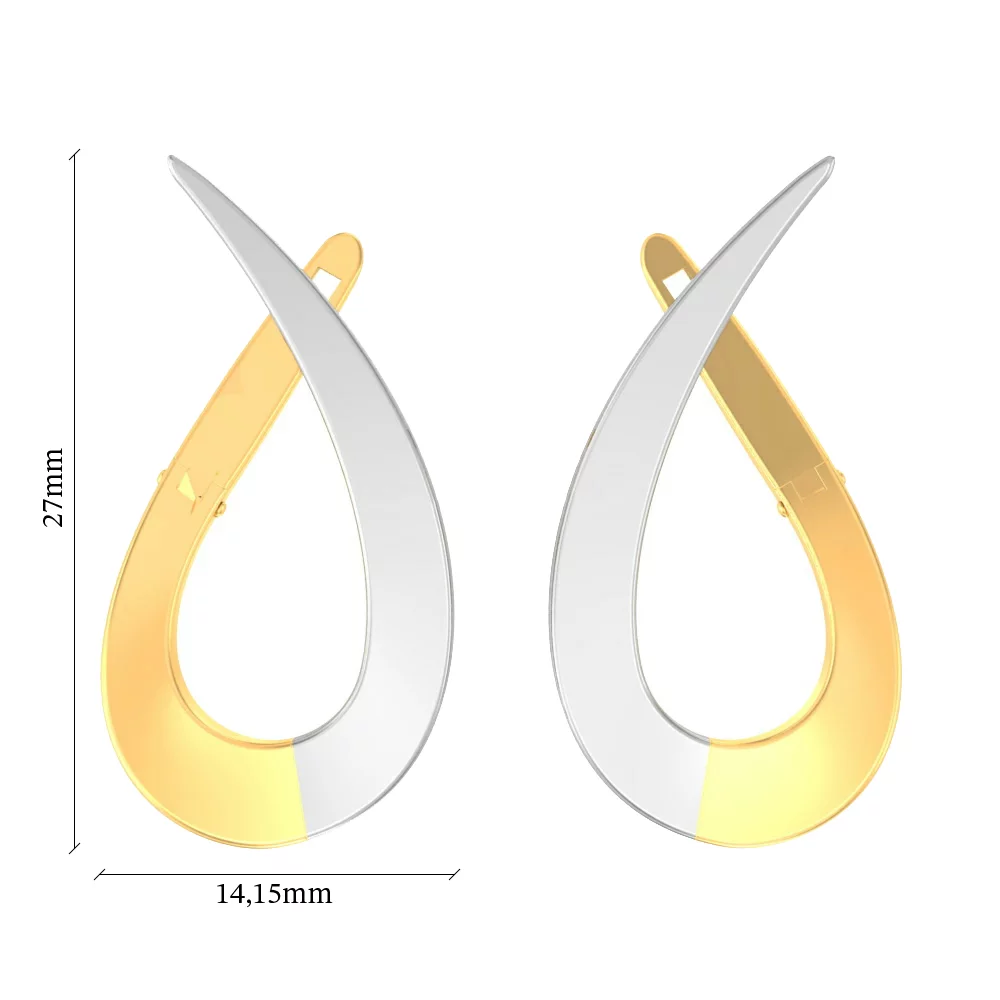 Сережки "Капли" из комбинированного золота - 613738