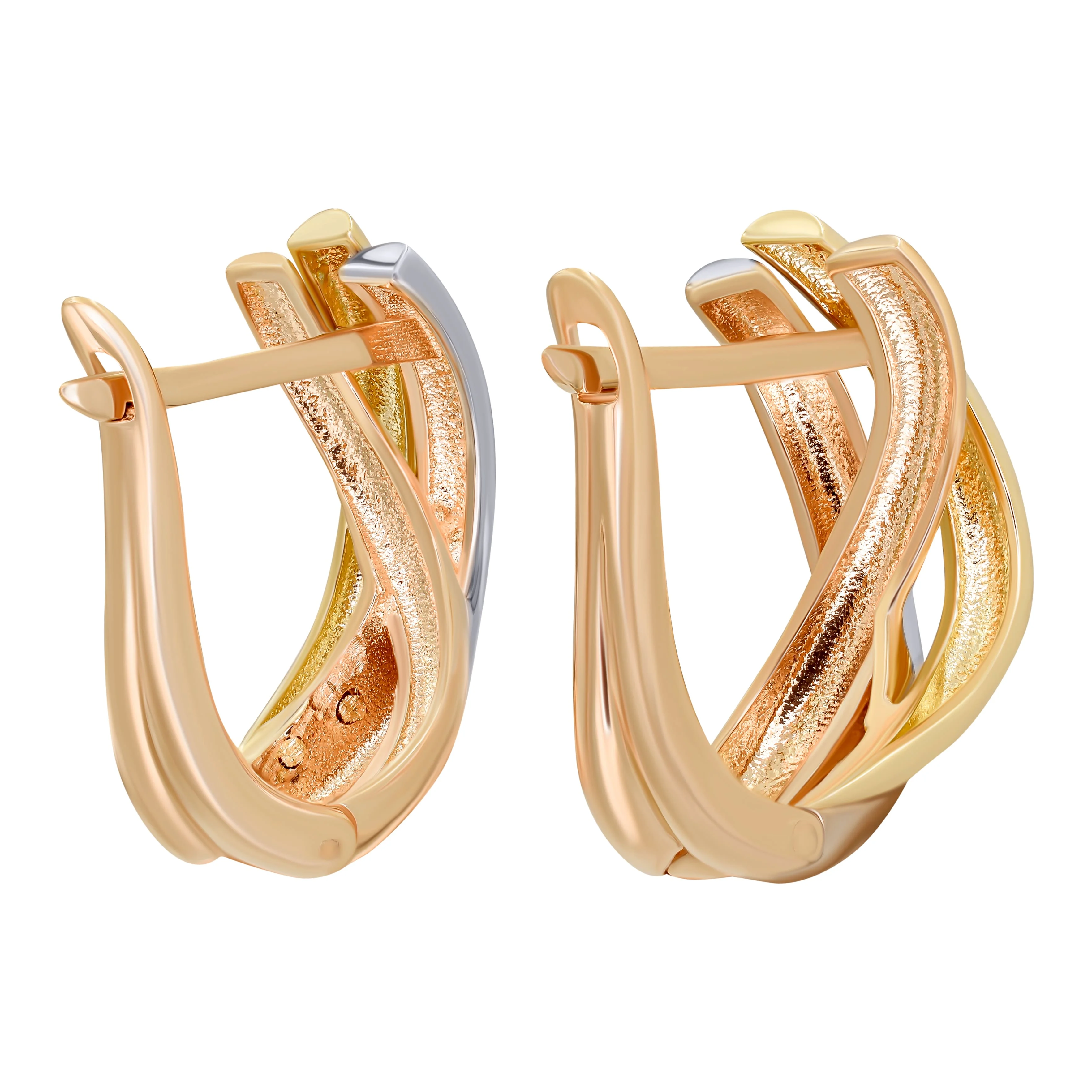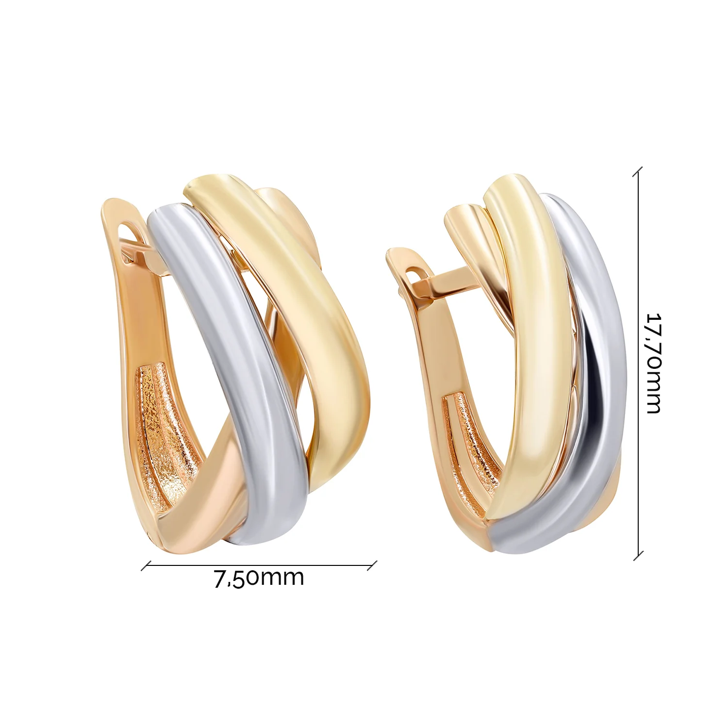 Сережки "Тринити" из комбинированного золота - 890857