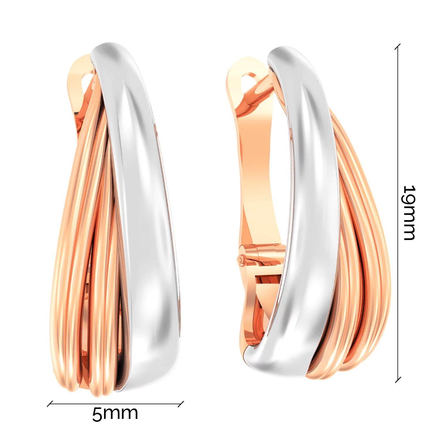 Сережки-гвоздики с подвесом из комбинированного золота с алмазной гранью - 1870255