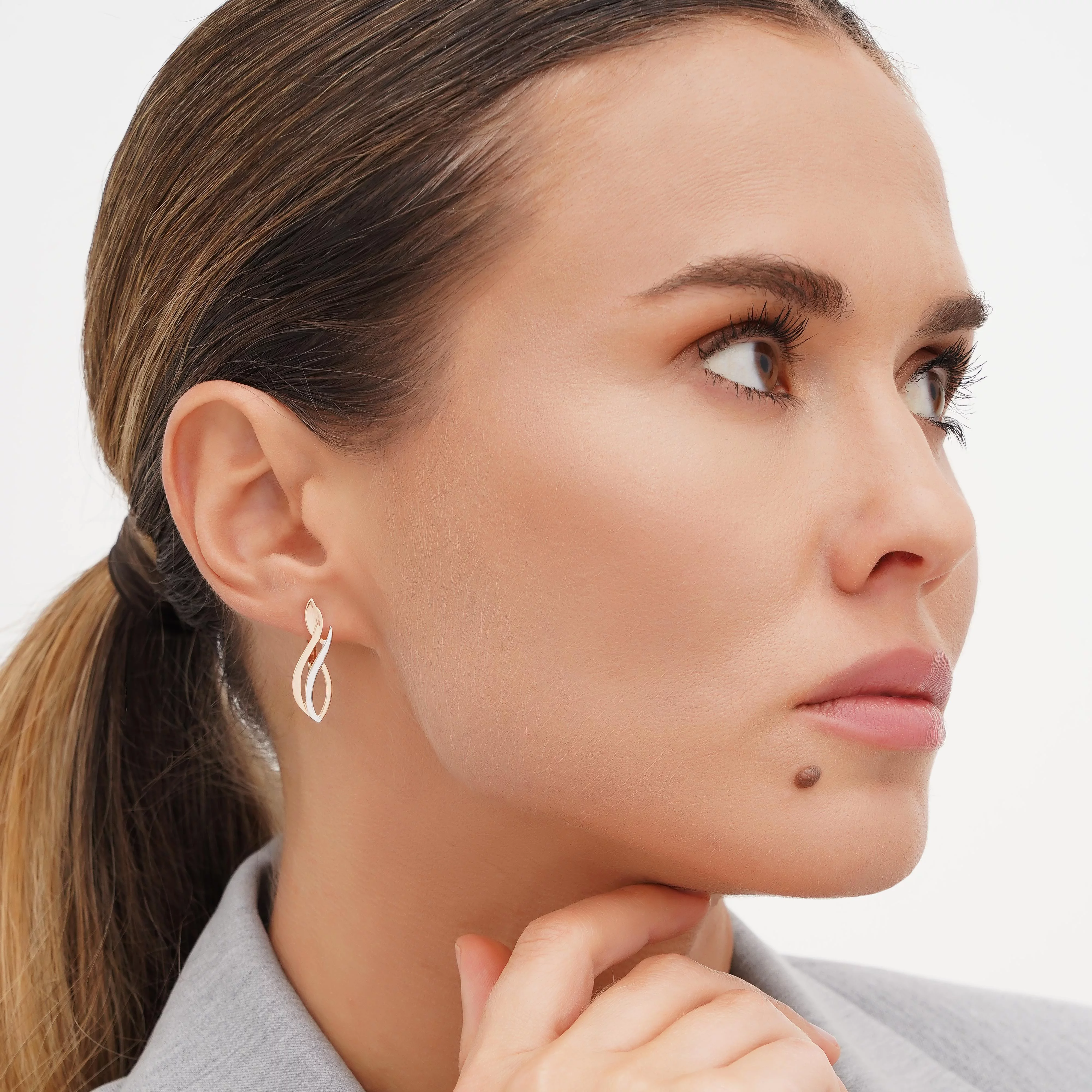 Украшением любого женского образа, как торжественного, так и повседневного, станут сережки из комбинированного золота «Линии». Их изготовили из драгоценного металла 585 пробы белого и красного цветов. Сочетание оттенков придает украшению оригинальность, а контрастность деталей привлекает внимание и вызывает интерес. Мягкие и плавные линии на основании сережек добавляют образу женственность и нежность. Такие украшения гармонично смотрятся как с платьями, так и с брюками или костюмами. Их можно дарить женщинам любого возраста на праздники или просто так.