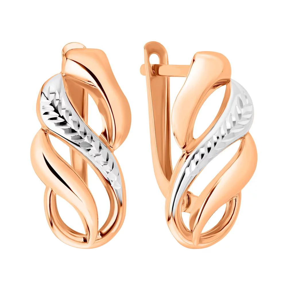 Сережки из комбинированного золота с алмазной гранью - 959208