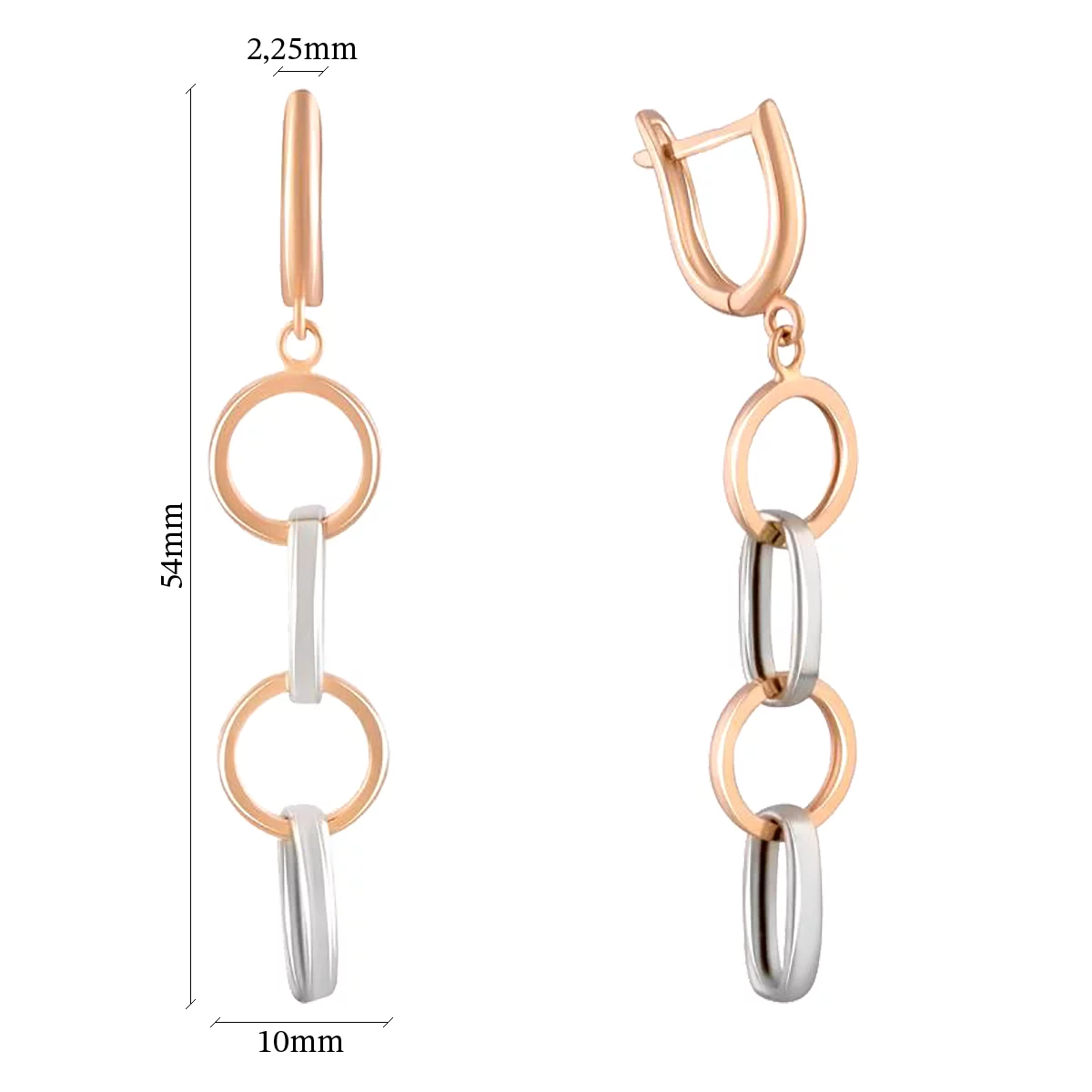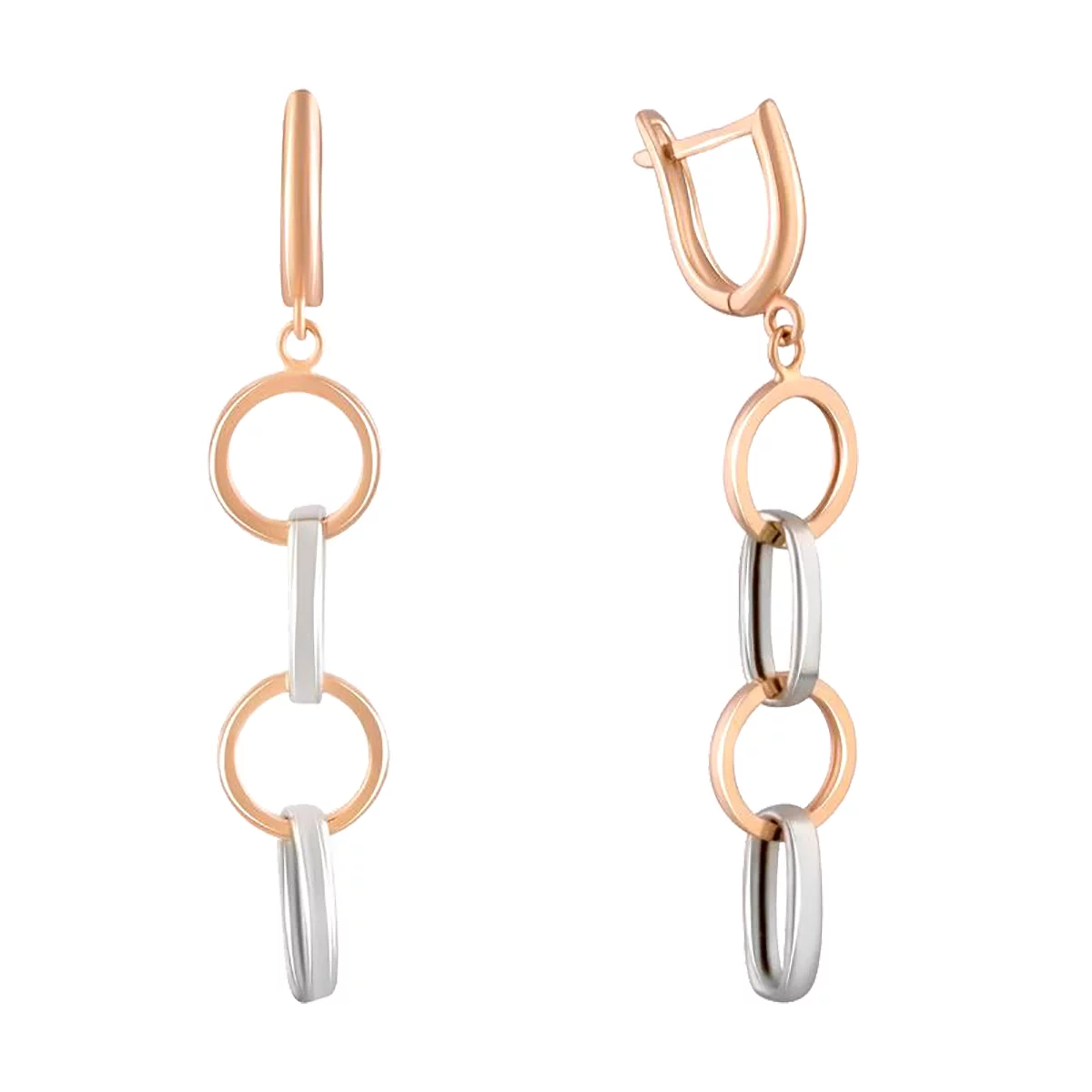 Сережки из комбинированного золота с подвесками Звенья - 965251