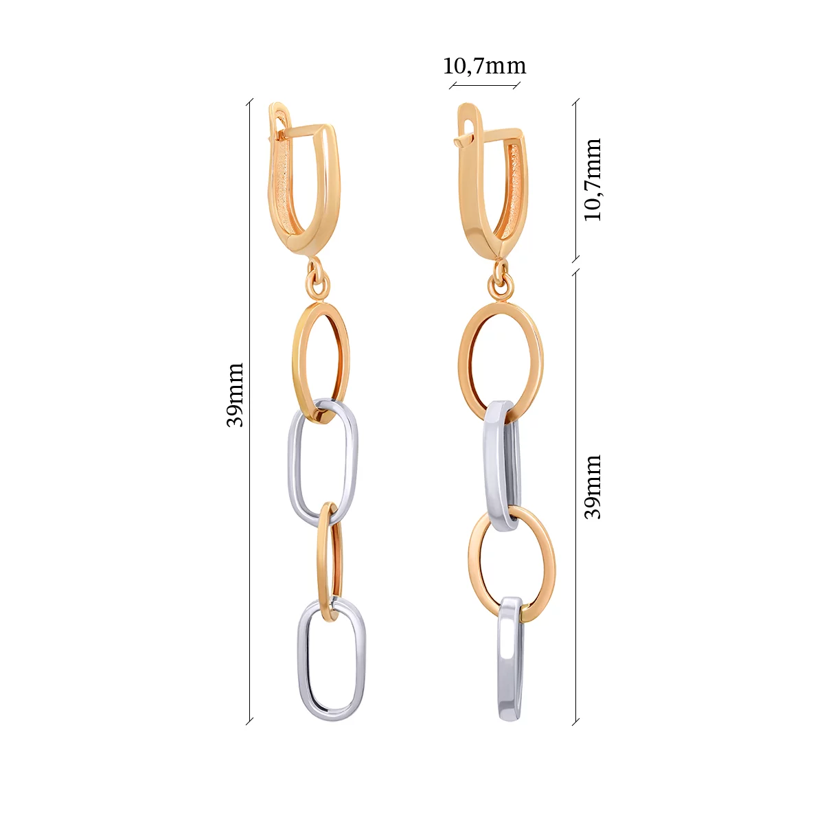 Элегантные сережки-гвоздики с подвесом в геометрическом стиле из комбинированного золота - 1918777