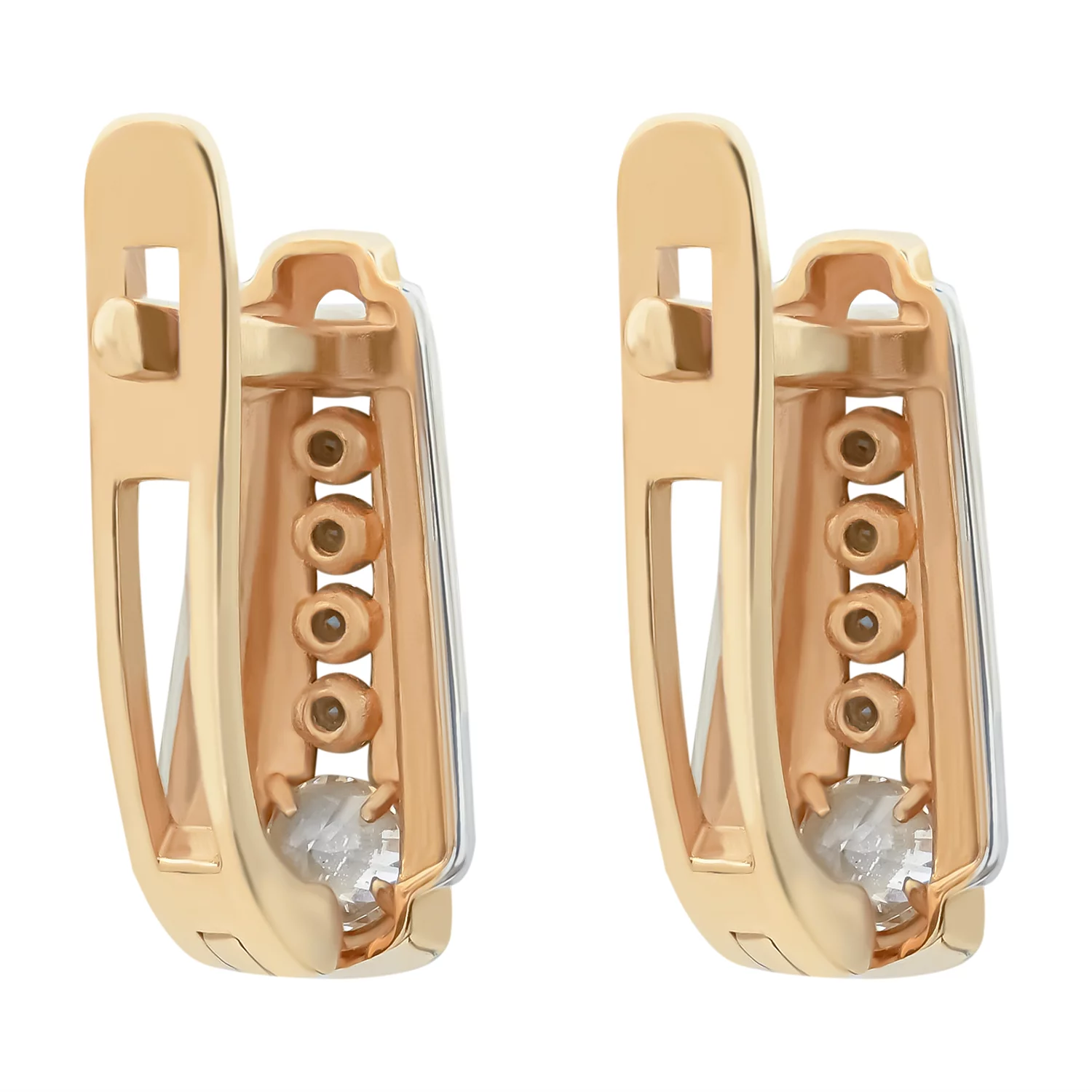 Сережки из комбинированного золота с фианитом - 828176