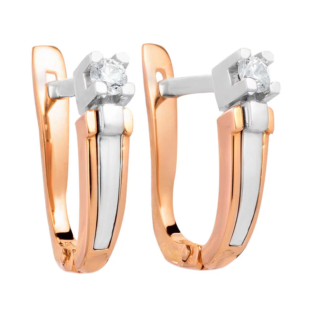 Элегантные сережки-протяжки в минималистичном дизайне из белого золота и фианитами - 1870345