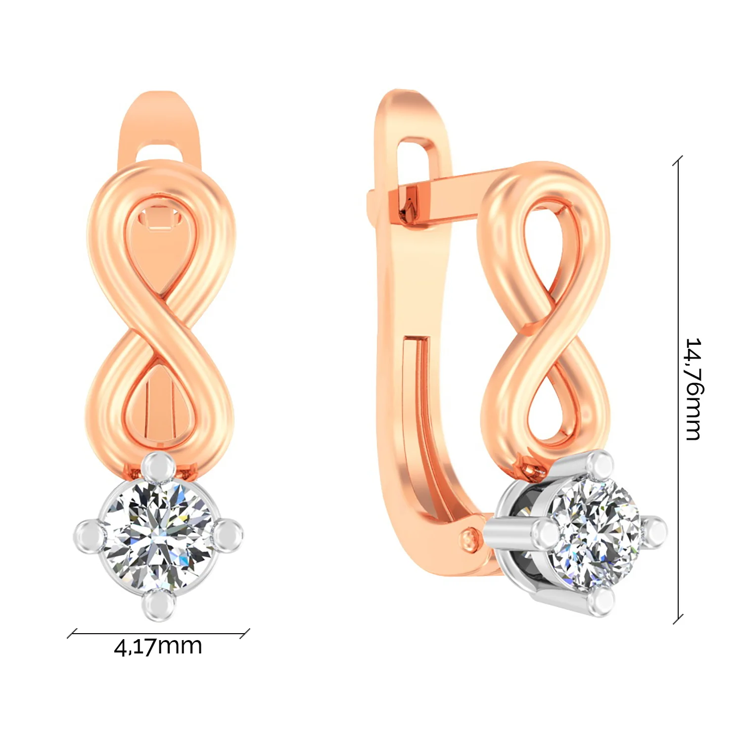 Сережки "Звездочка" с фианитами в красном золоте с подвесами - 1866957