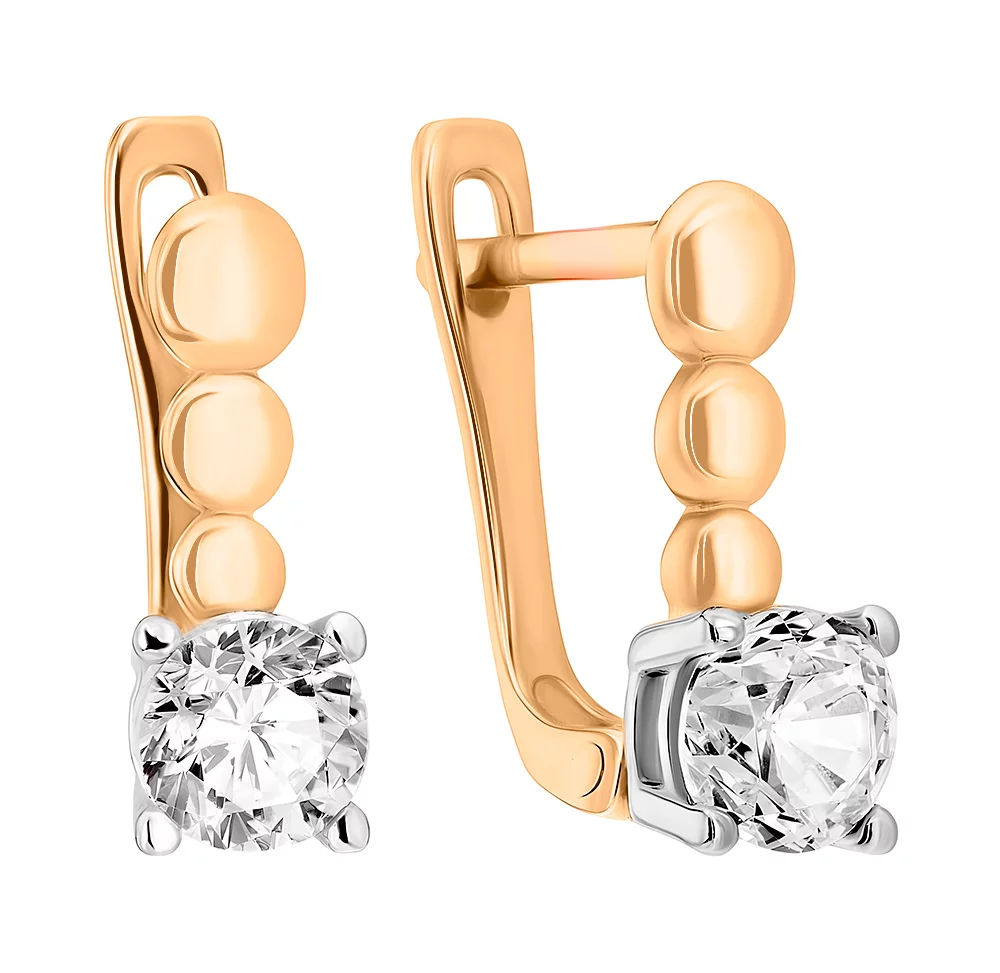 Сережки с подвесом "Цепочки" из комбинированного золота с фианитами - 1613529