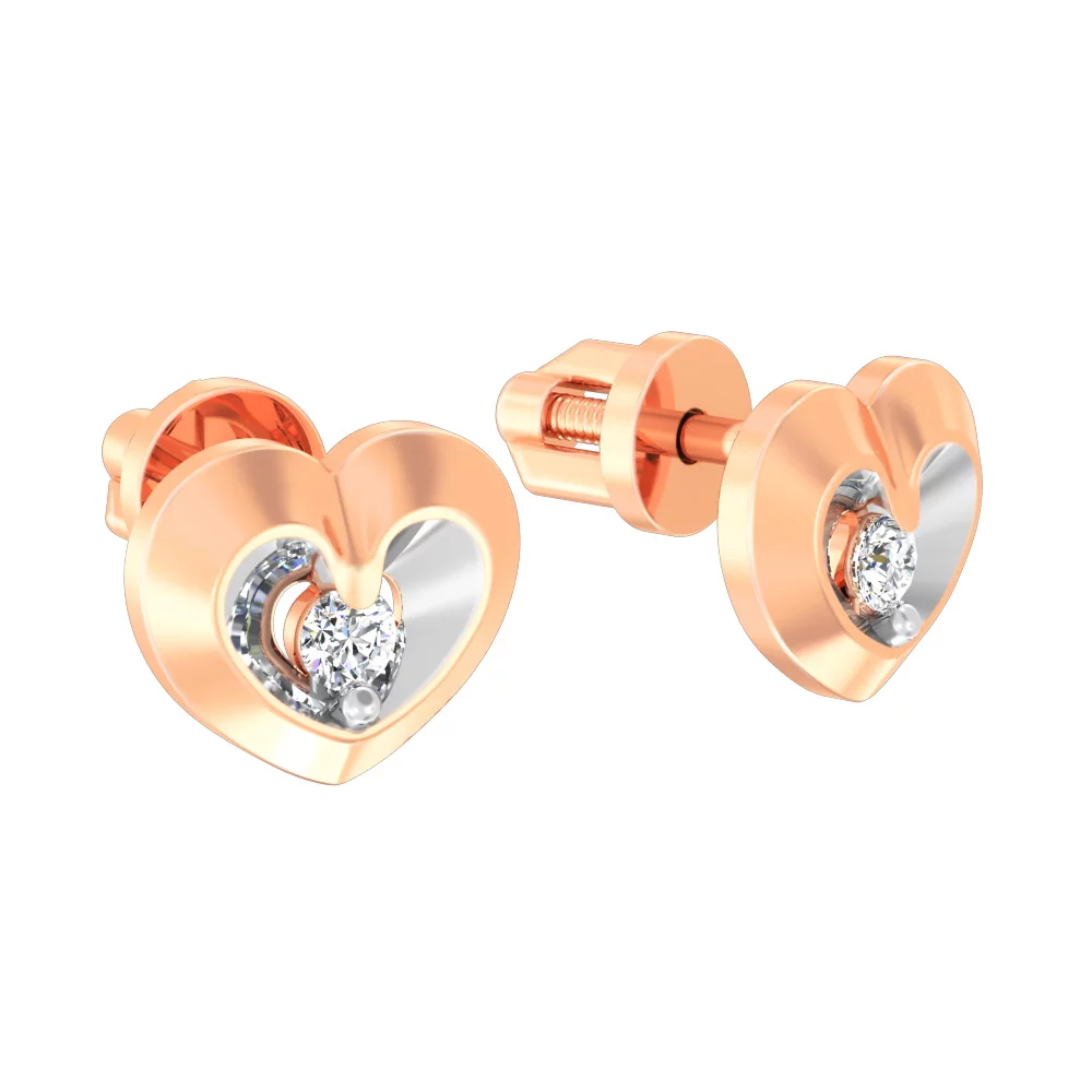 Сережки из комбинированного золота "Сердечки" с фианитами - 970528