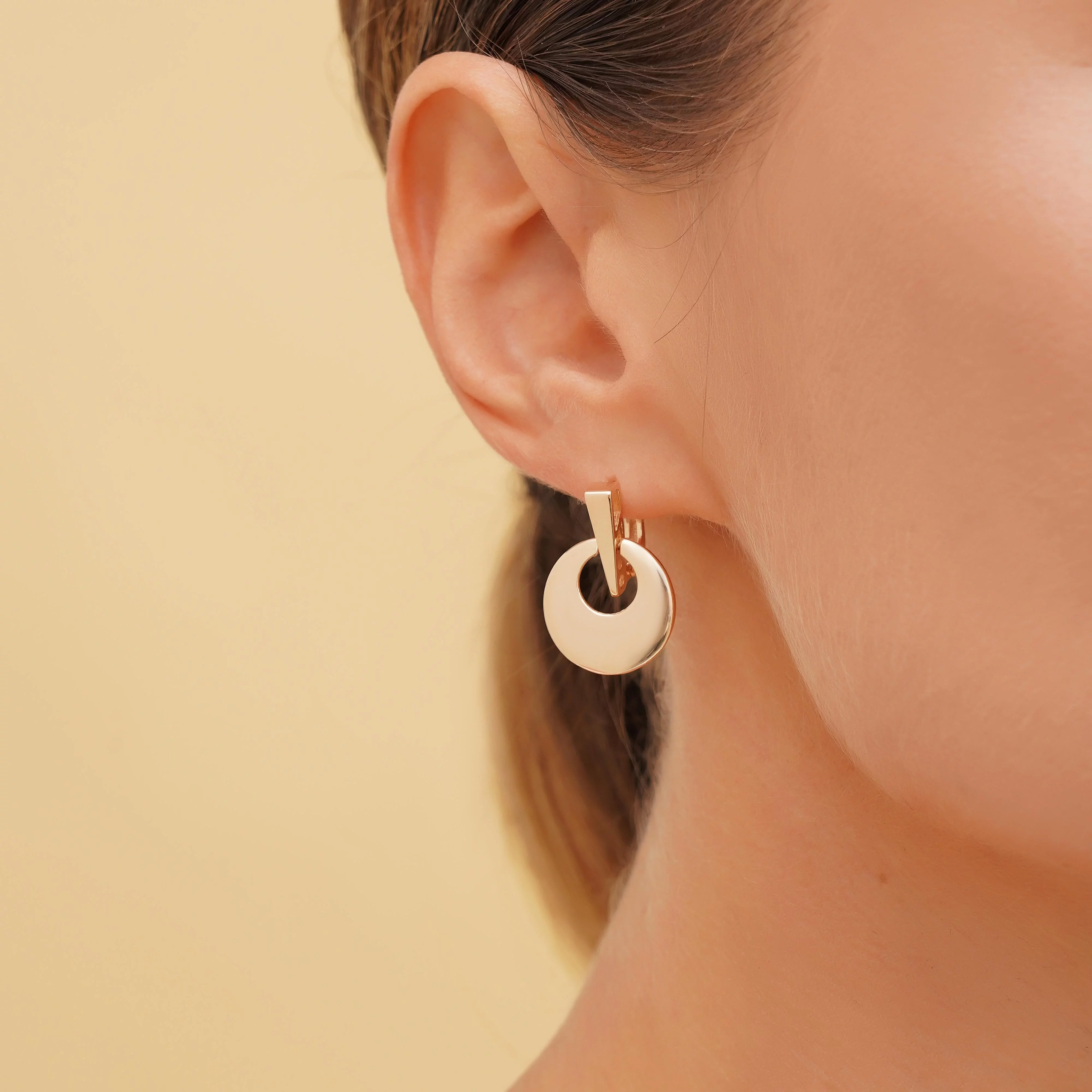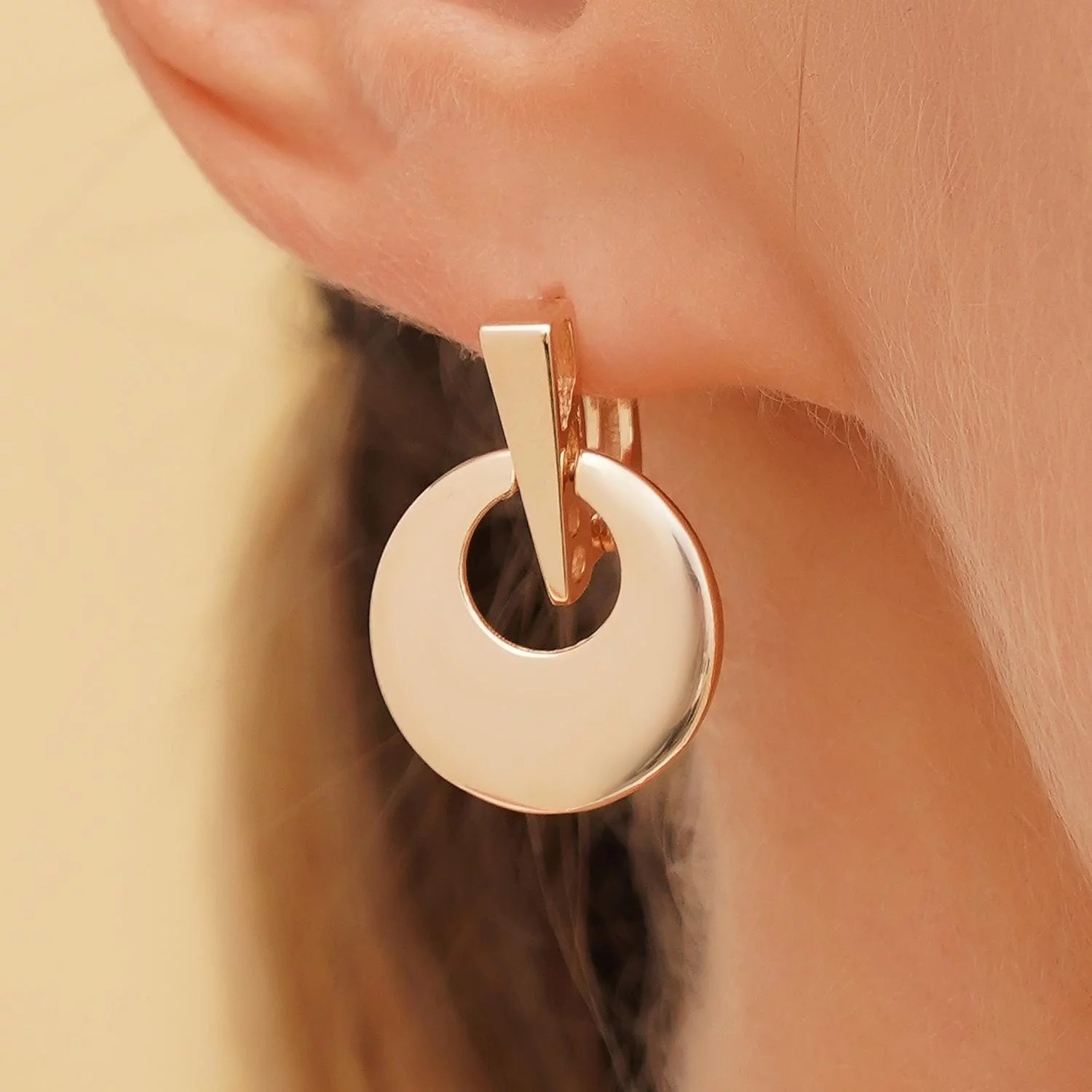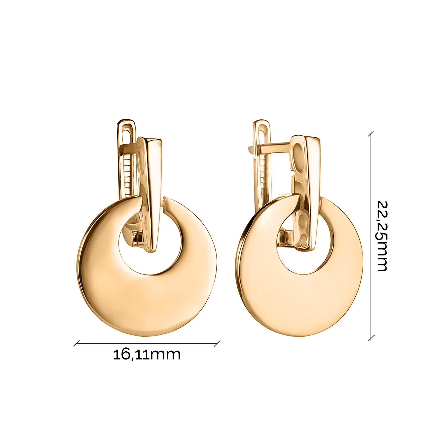 Серьги из красного золота с подвесами "Кольца" с алмазной гранью - 1562490