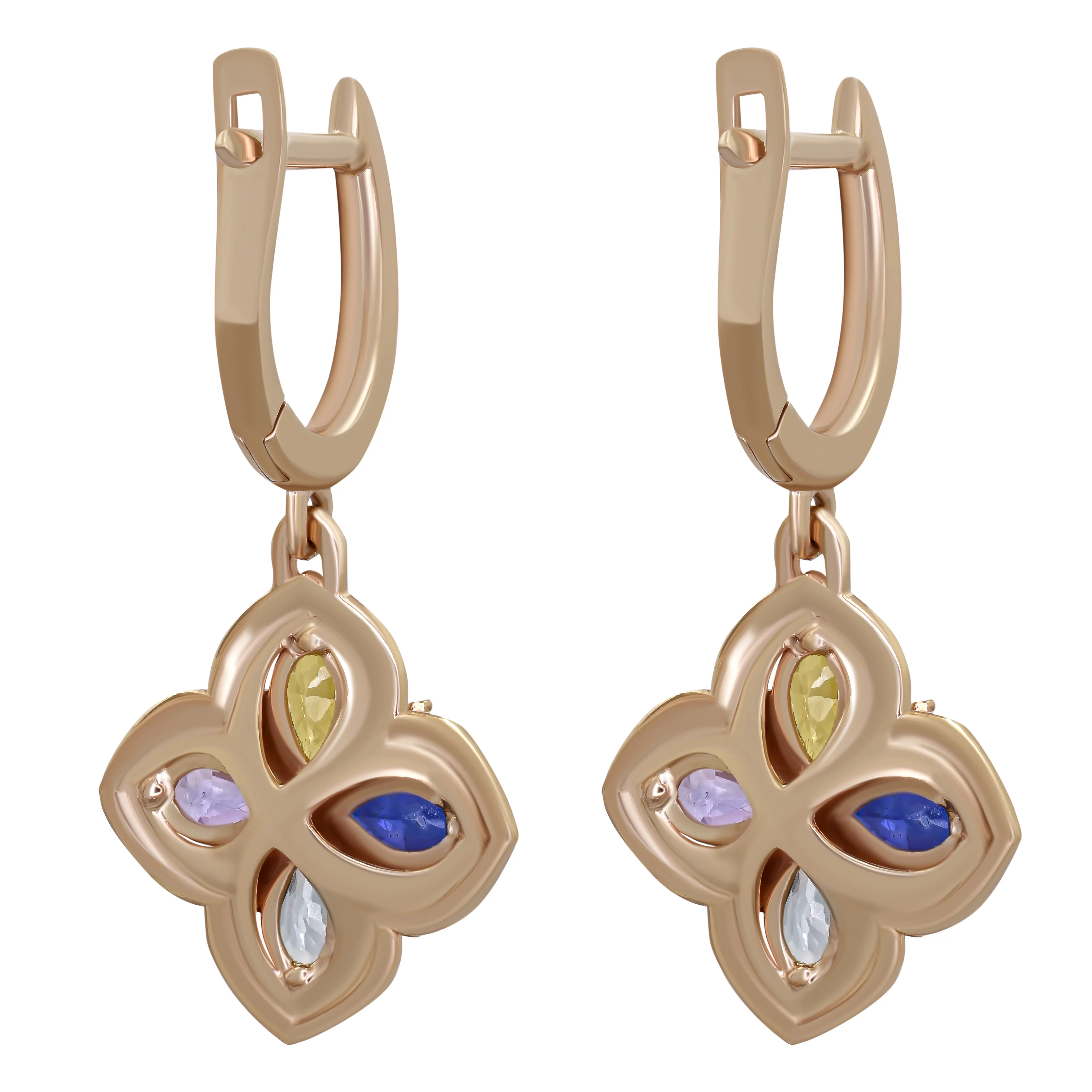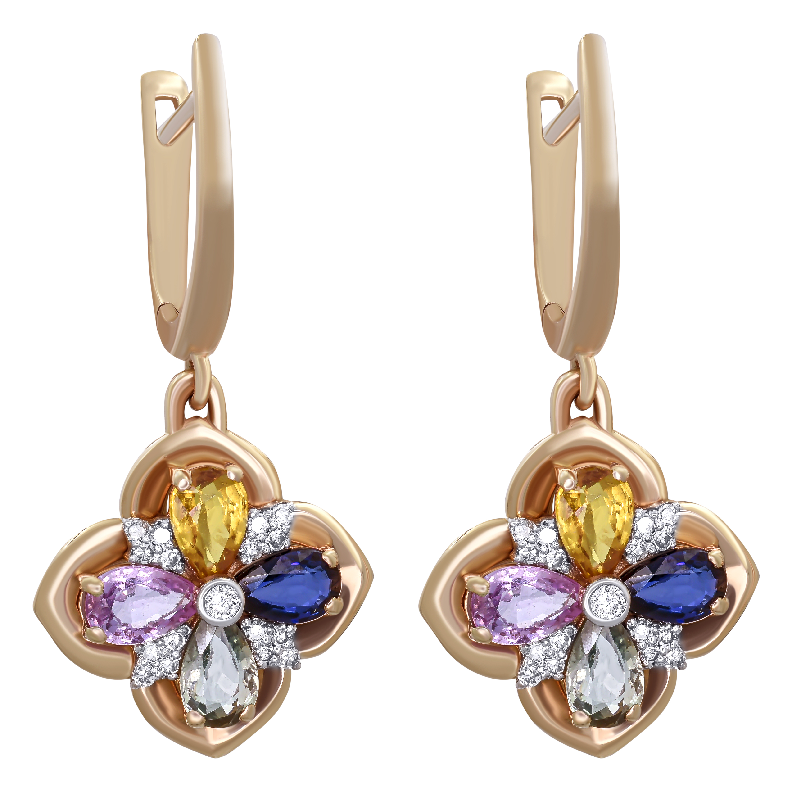 Сережки из красного золота Клевер с бриллиантами и сапфирами - 902200