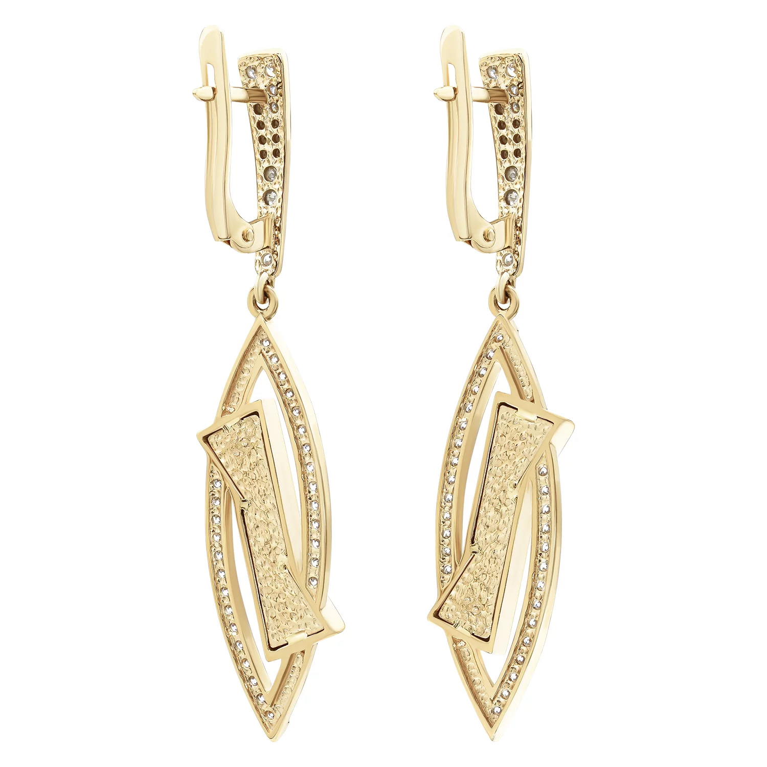 Сережки с подвесками "Гвоздь" из красного золота с фианитами - 1612881