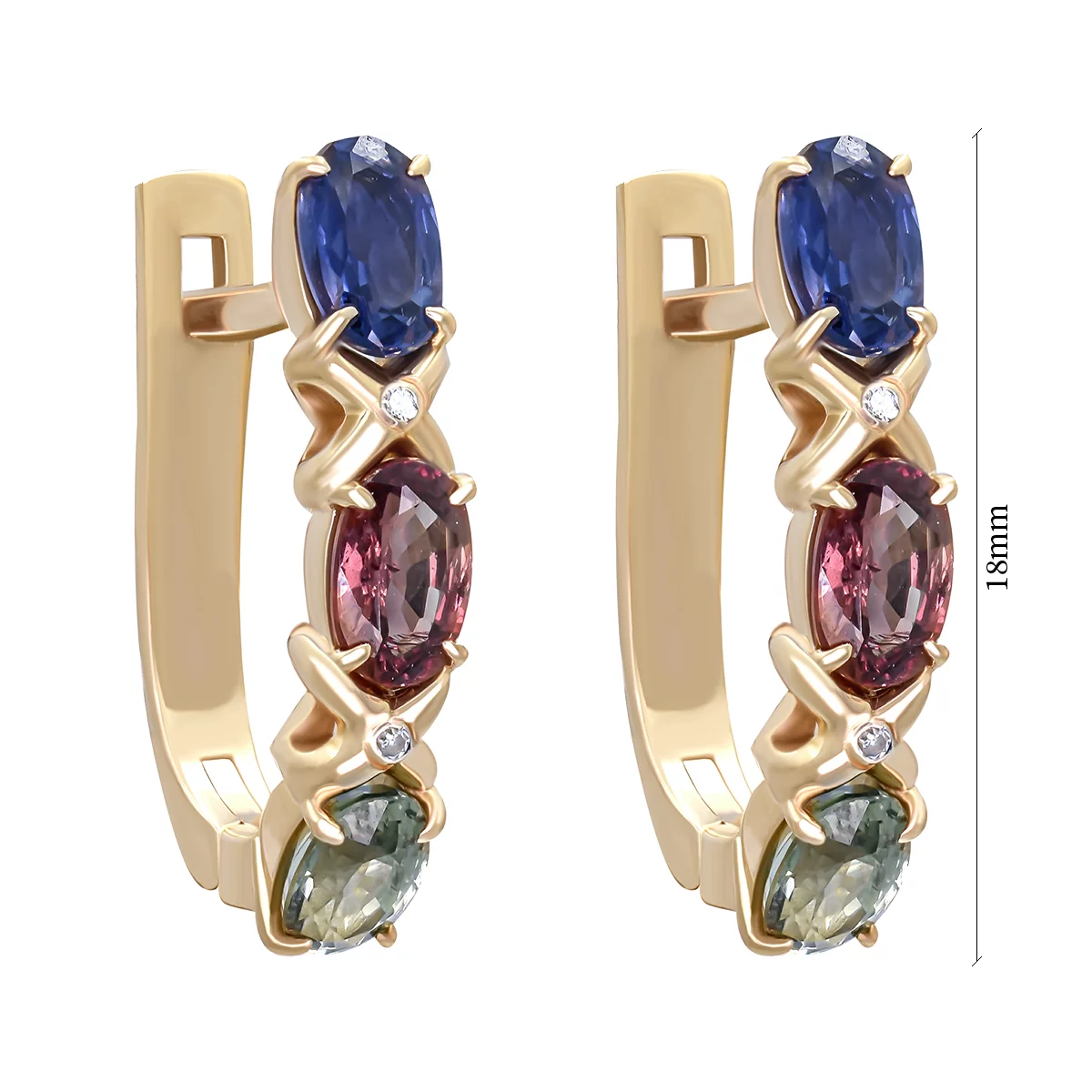Сережки из красного золота с бриллиантами и сапфирами - 902197