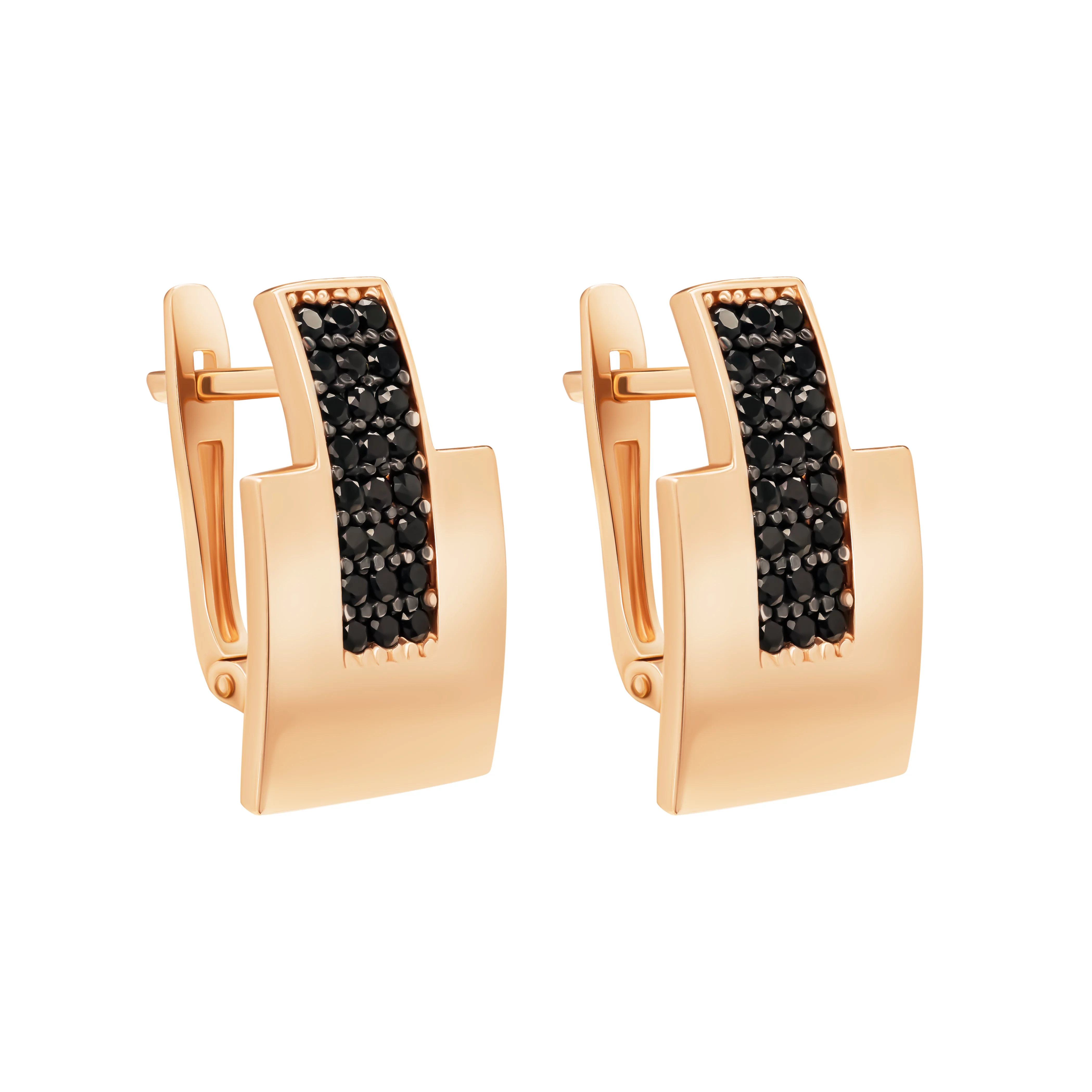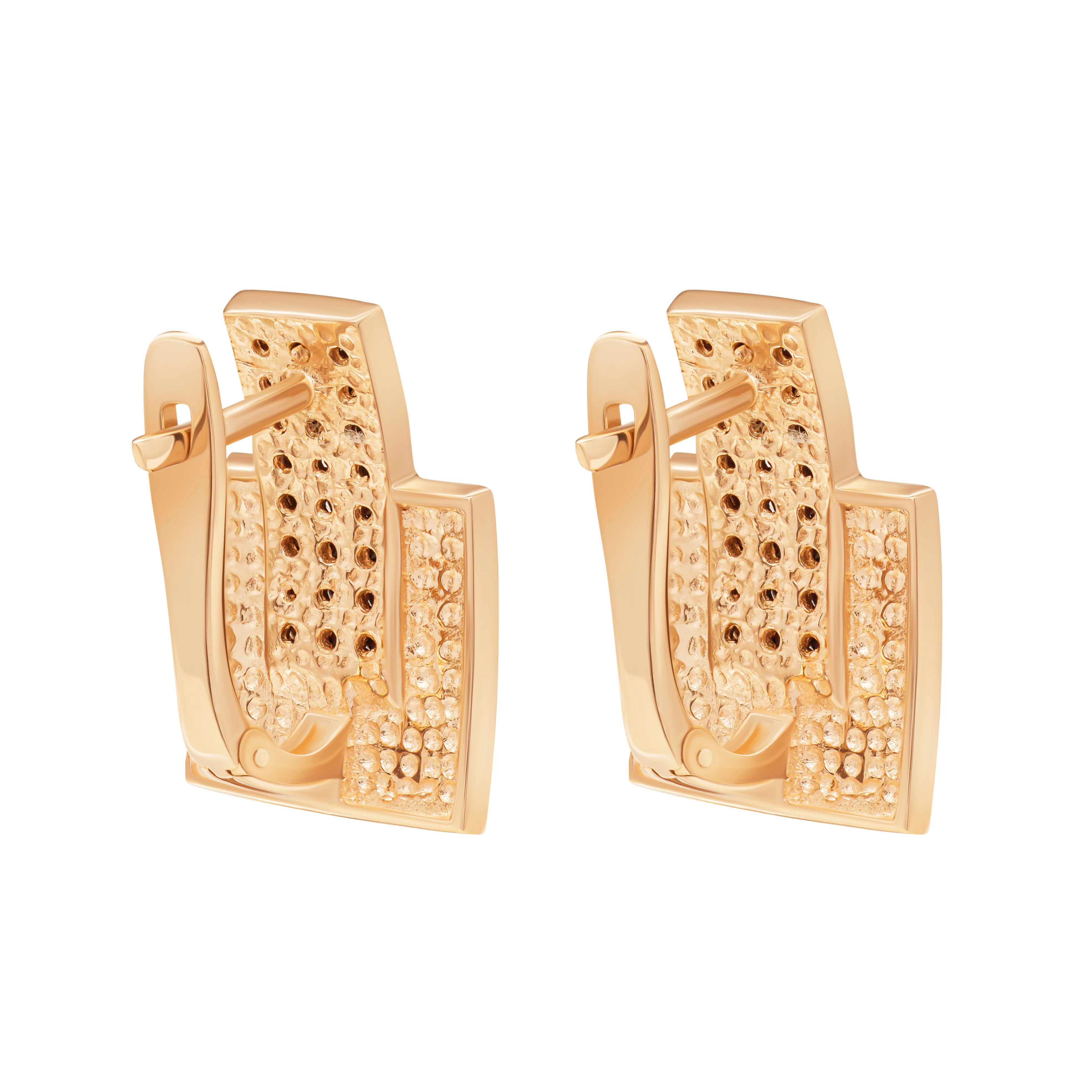 Стильные сережки из красного золота в геометрическом стиле с топазом и фианитами - 1925553