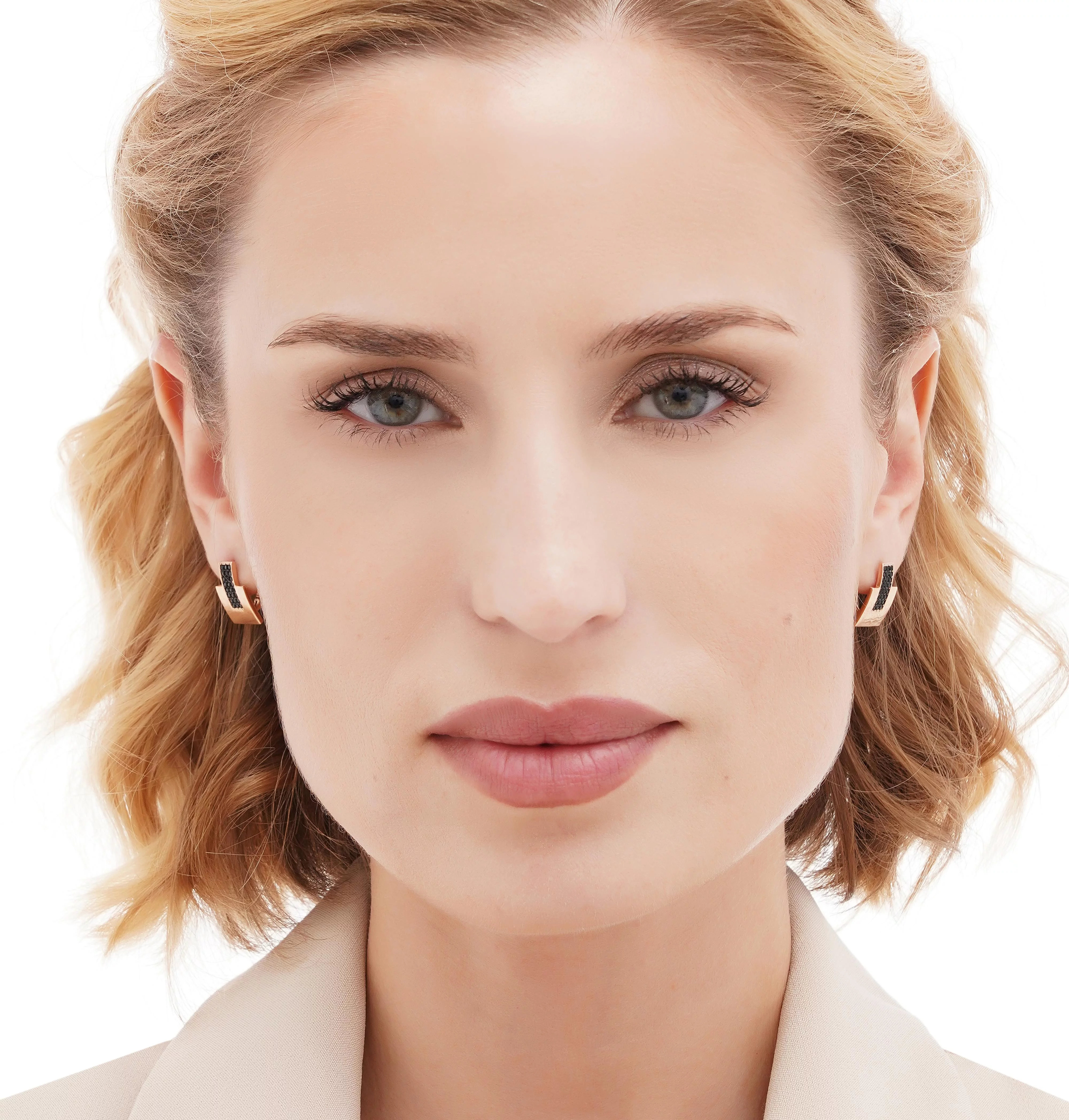 Стильные сережки "Круг" в красном золоте с эмалью и фианитами - 1958507