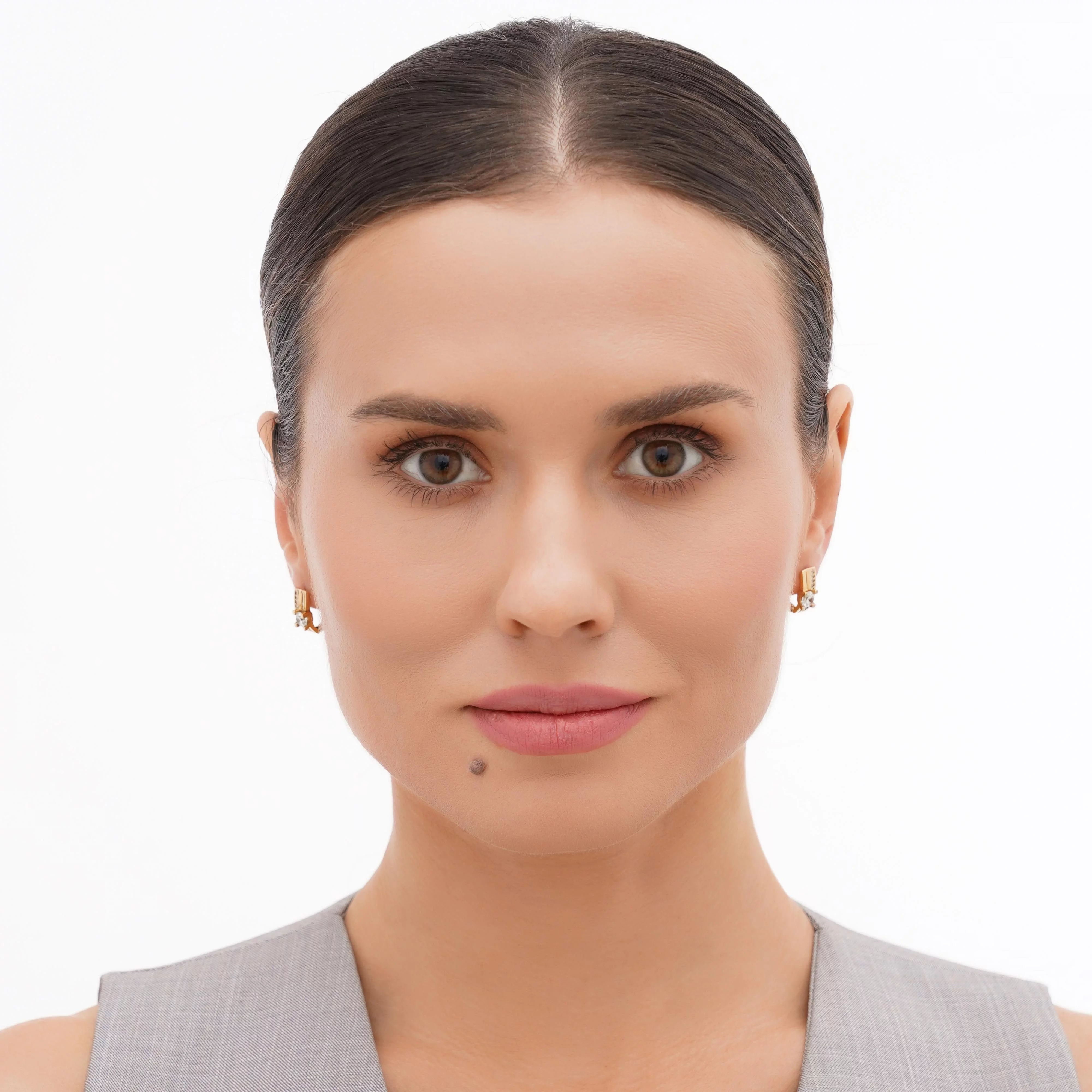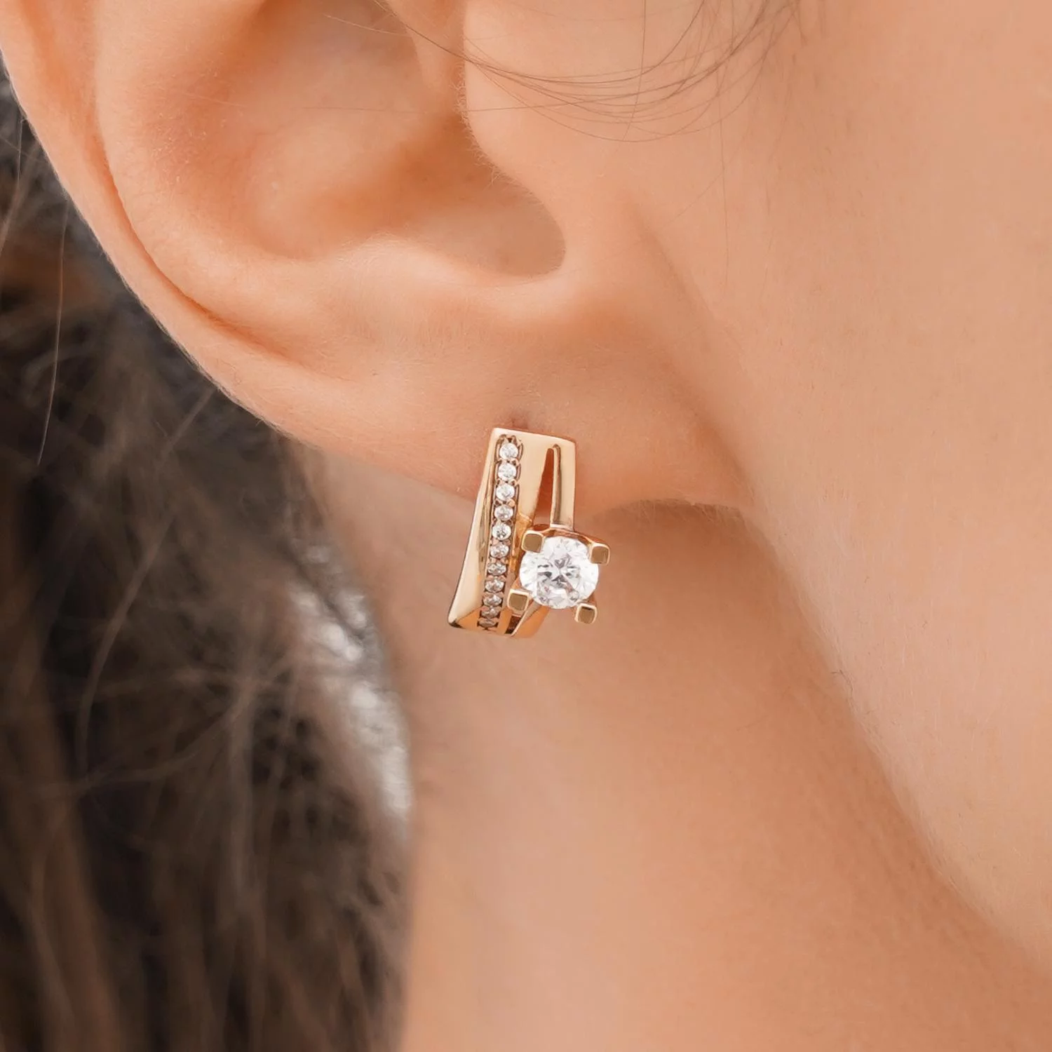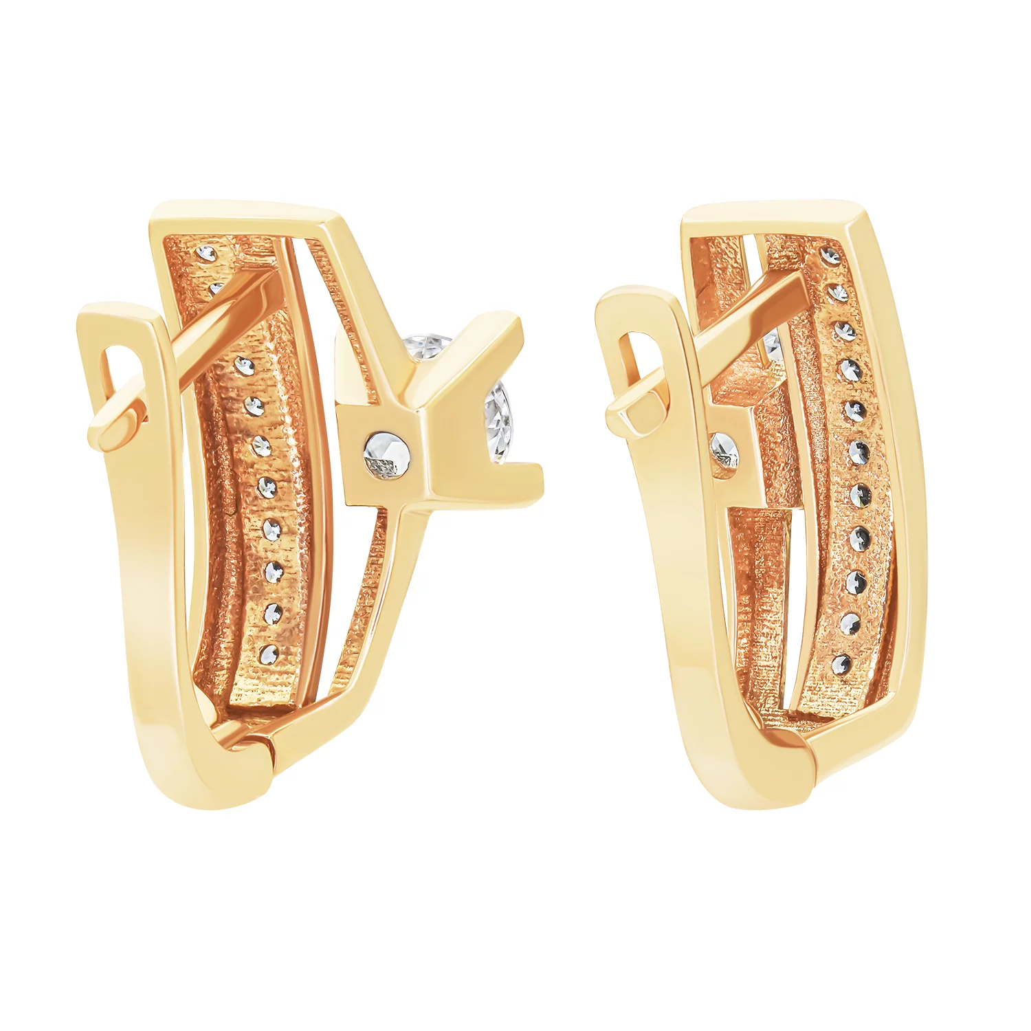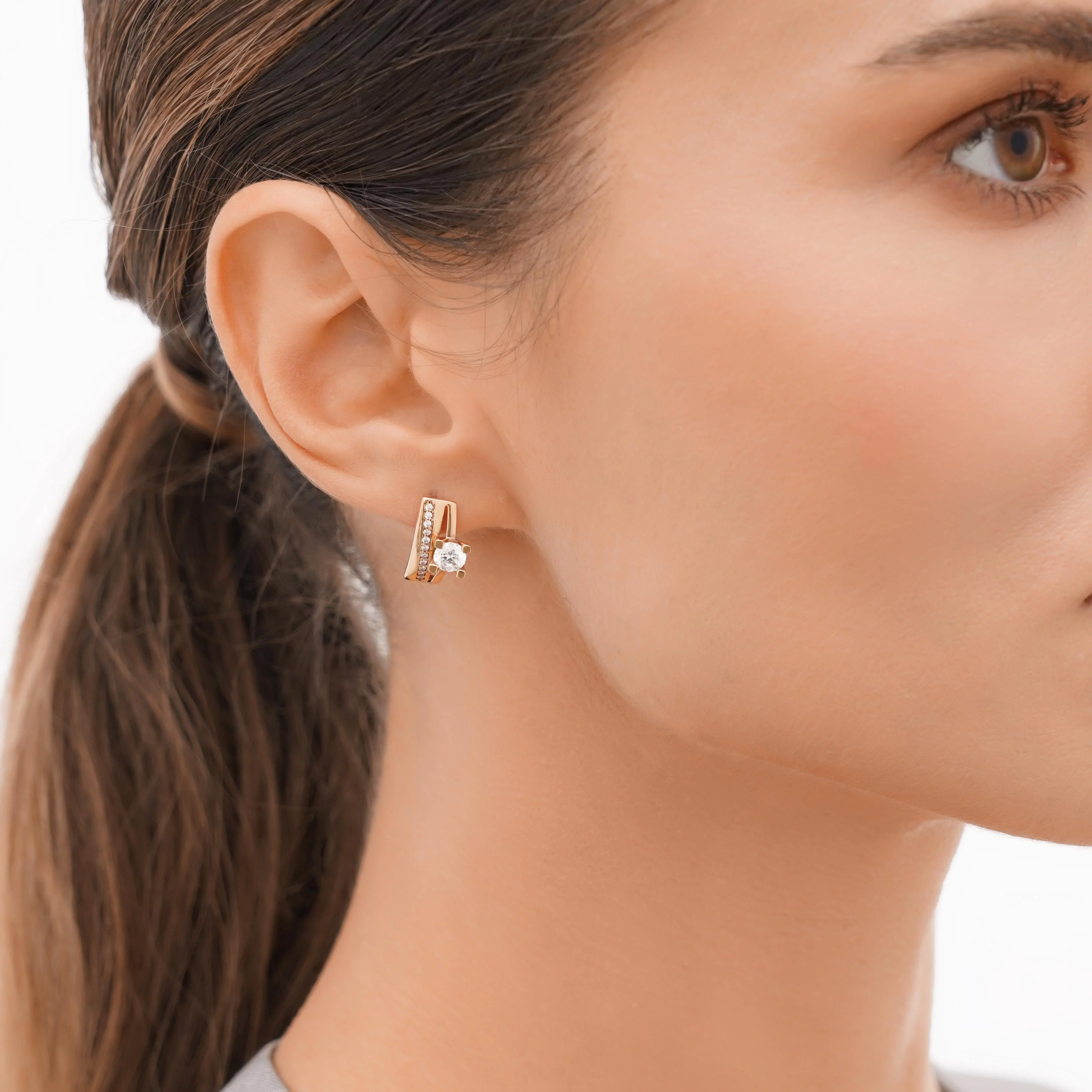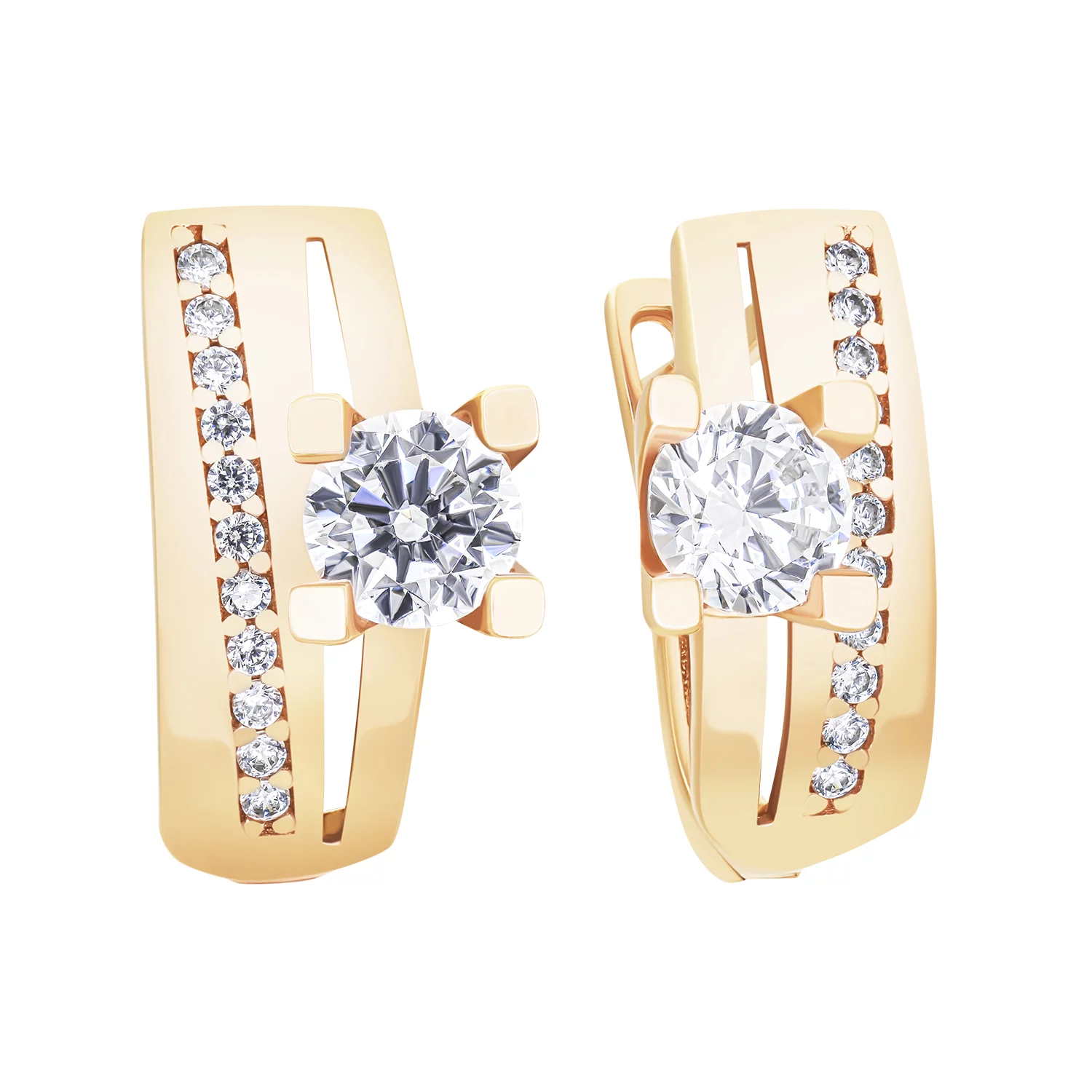 Сережки в форме листочка из красного золота с жемчужиной и фианитами - 1630904