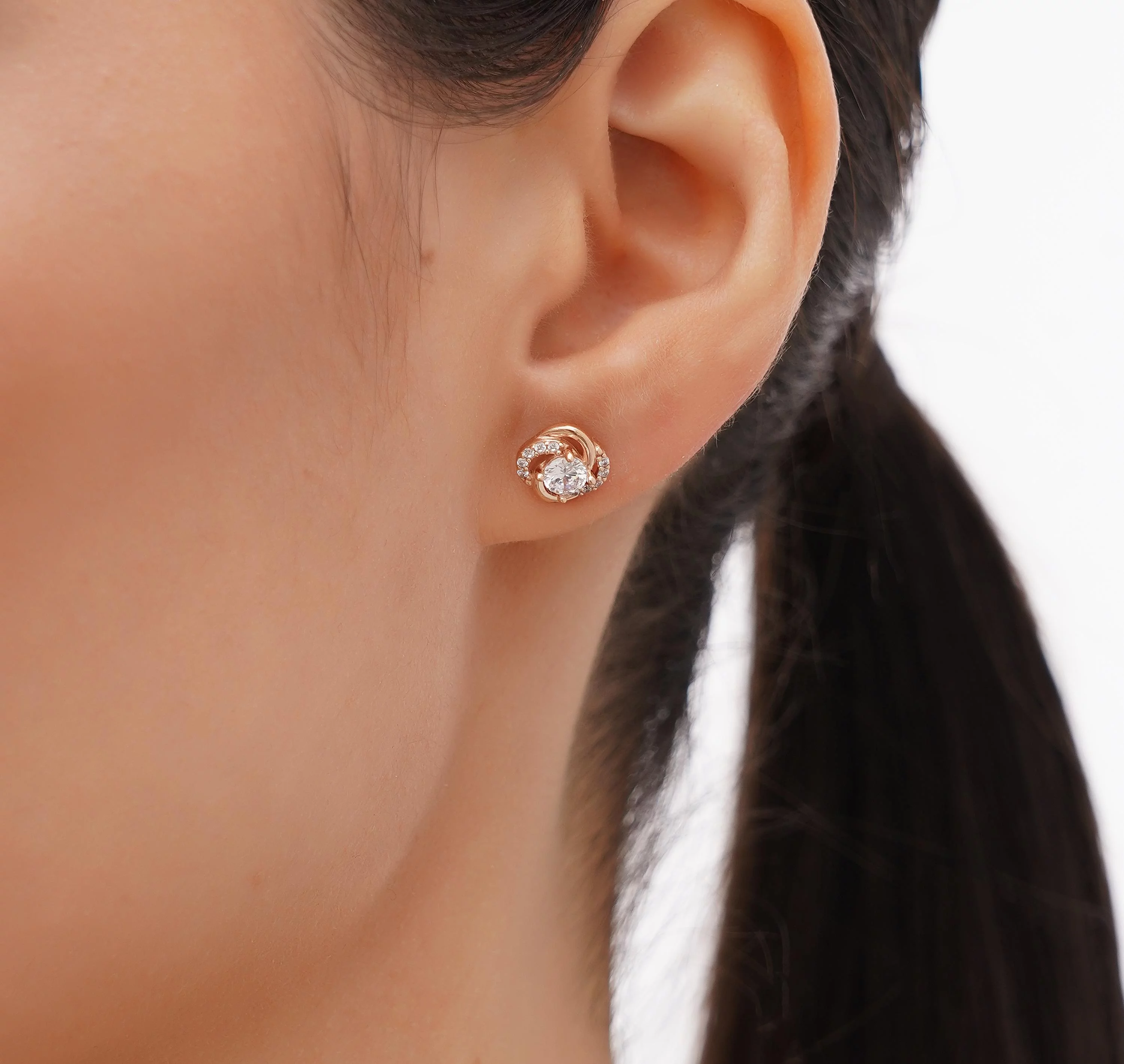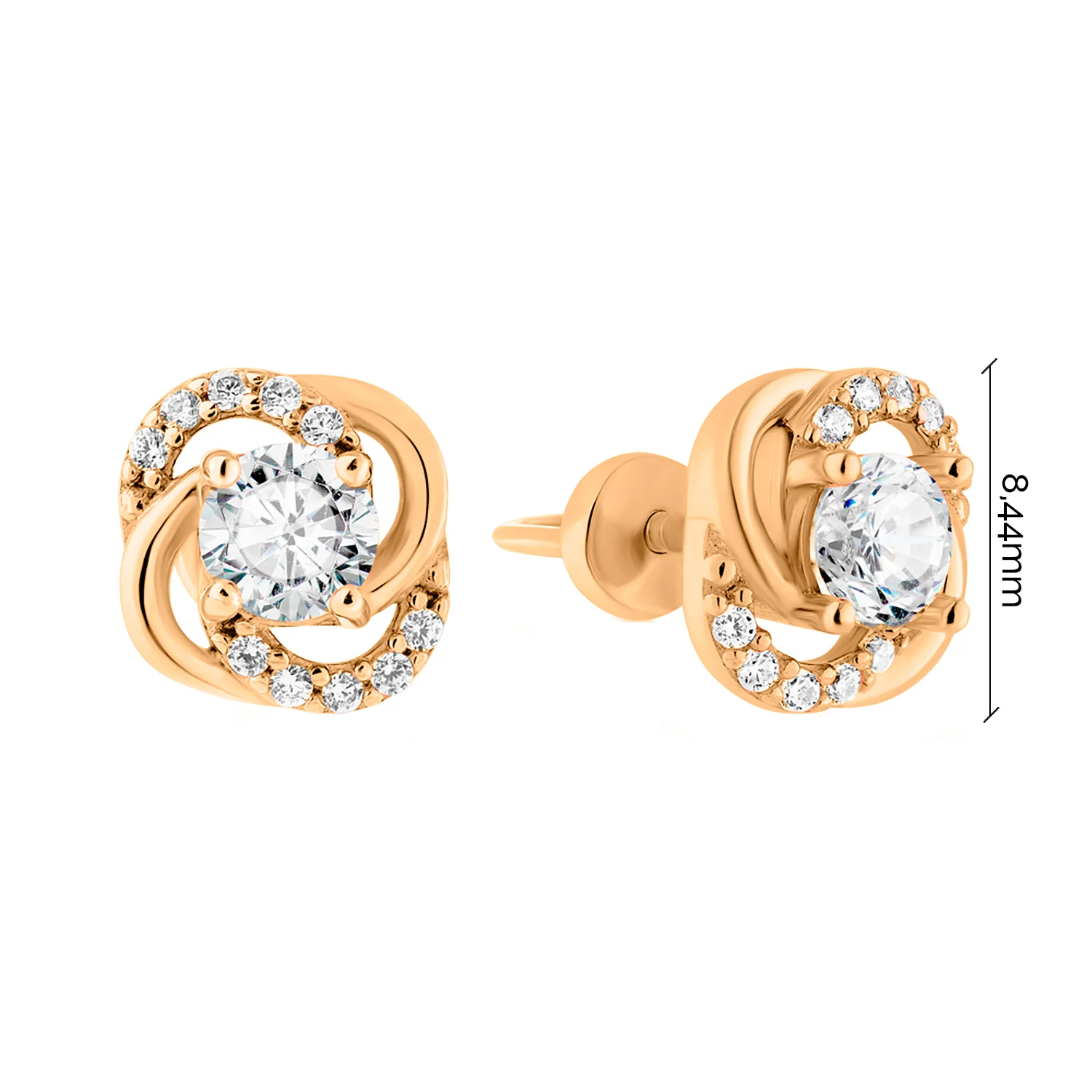 Сережки-гвоздики с жемчужиной и фианитами из красного золота - 1617638