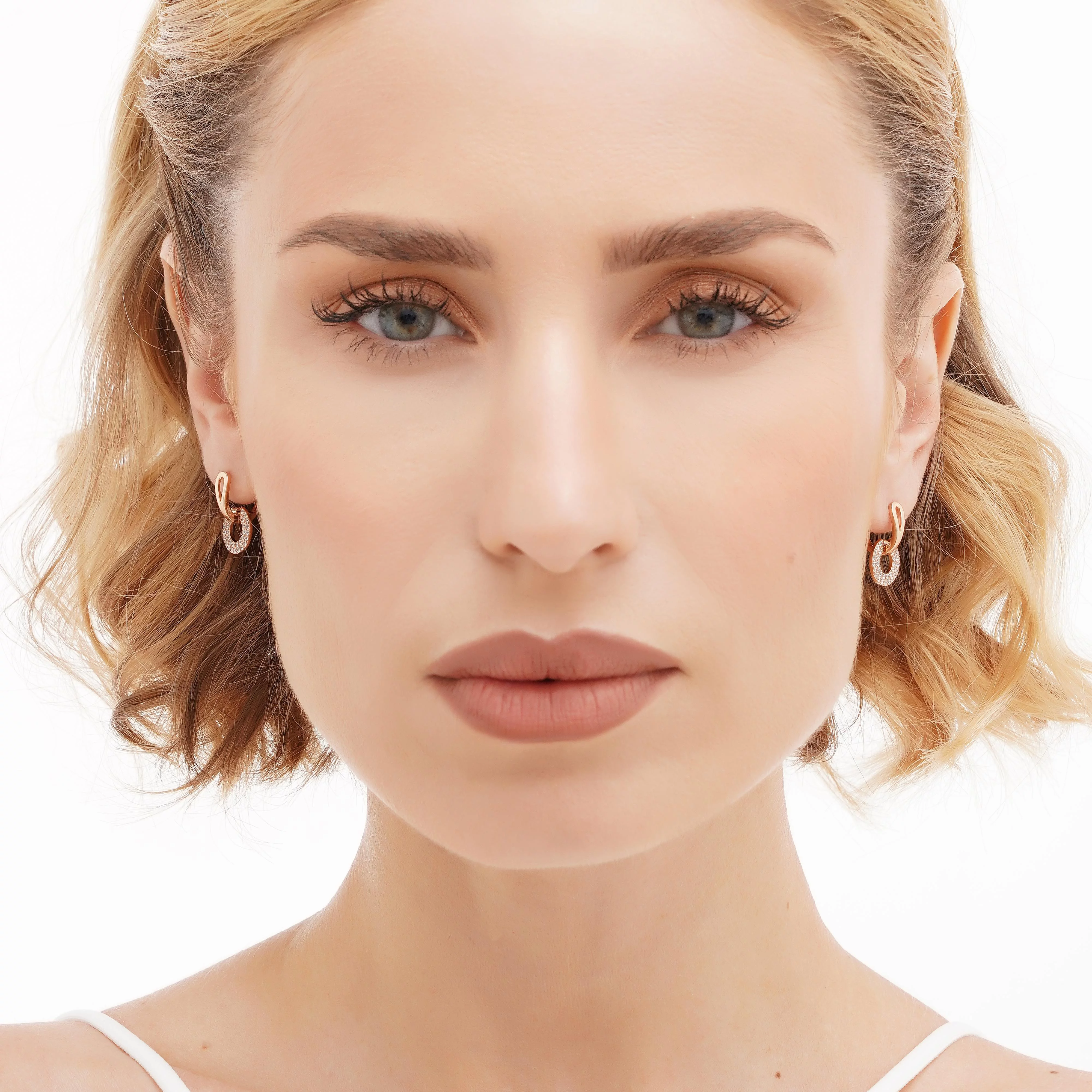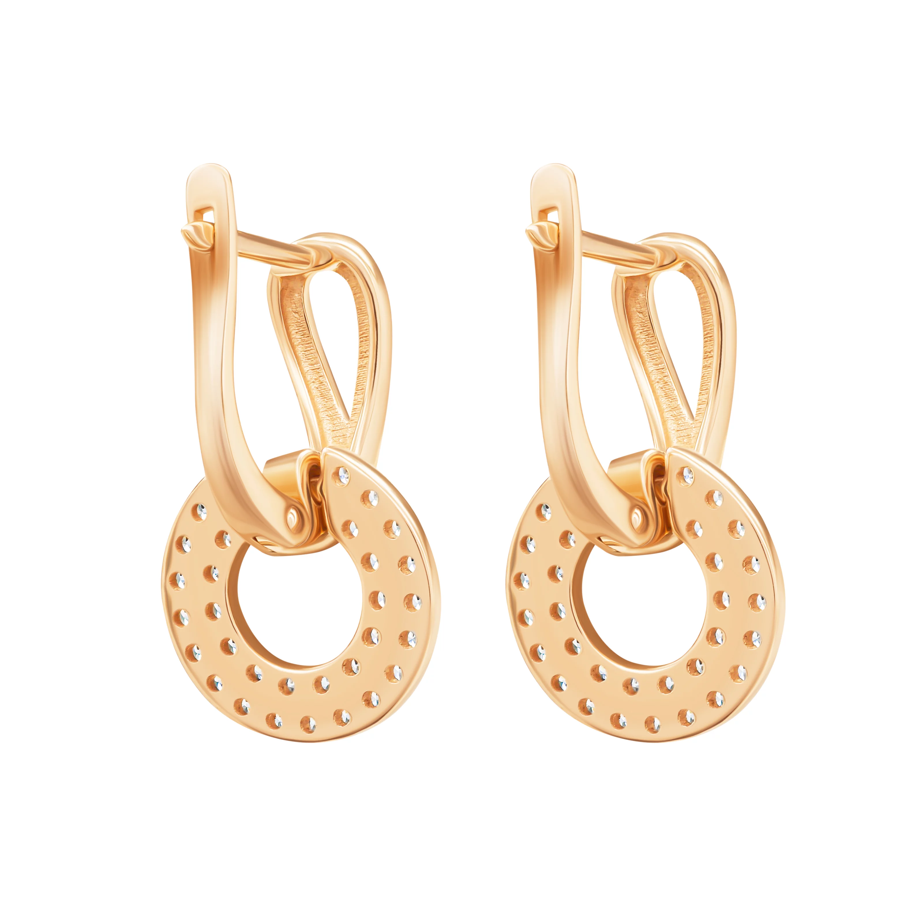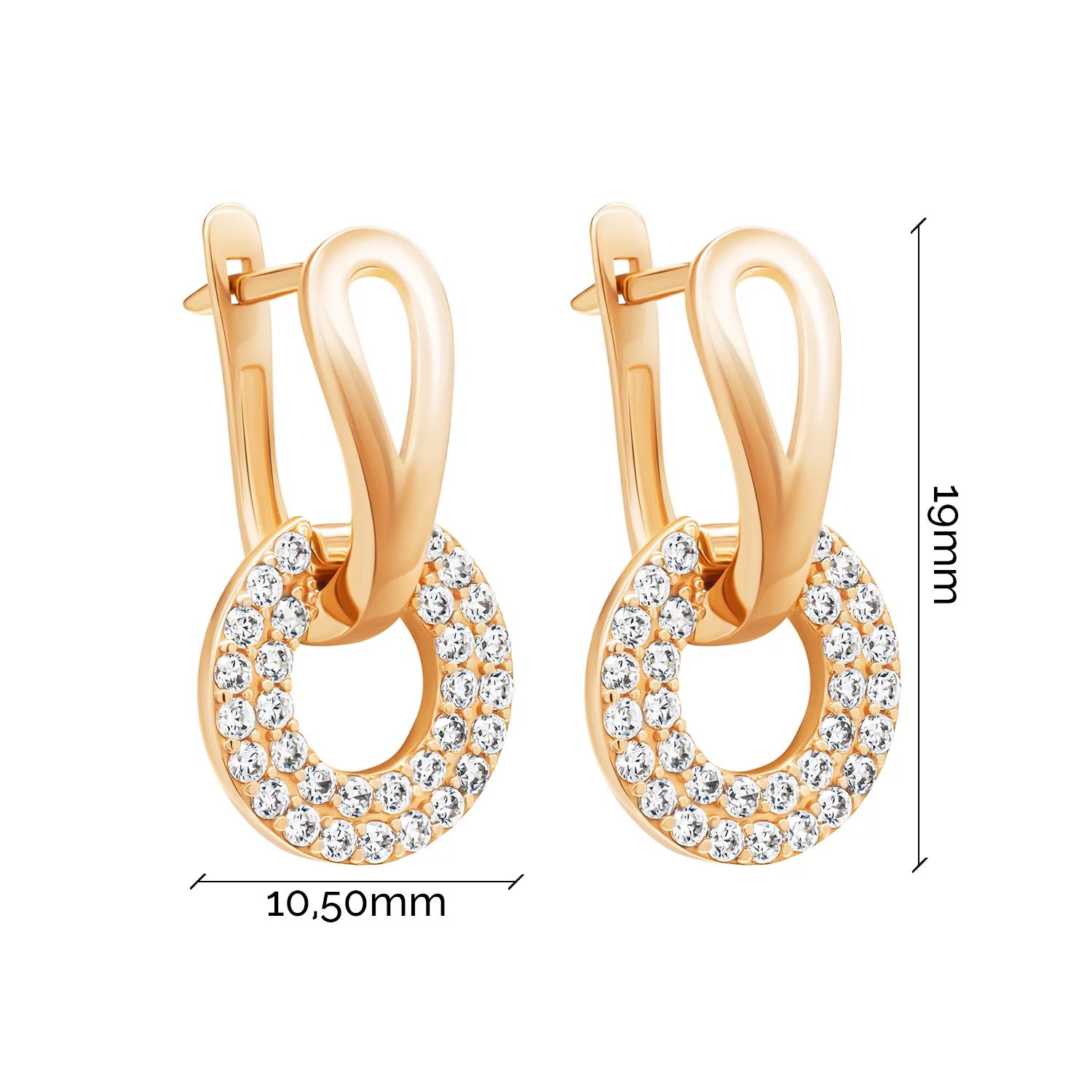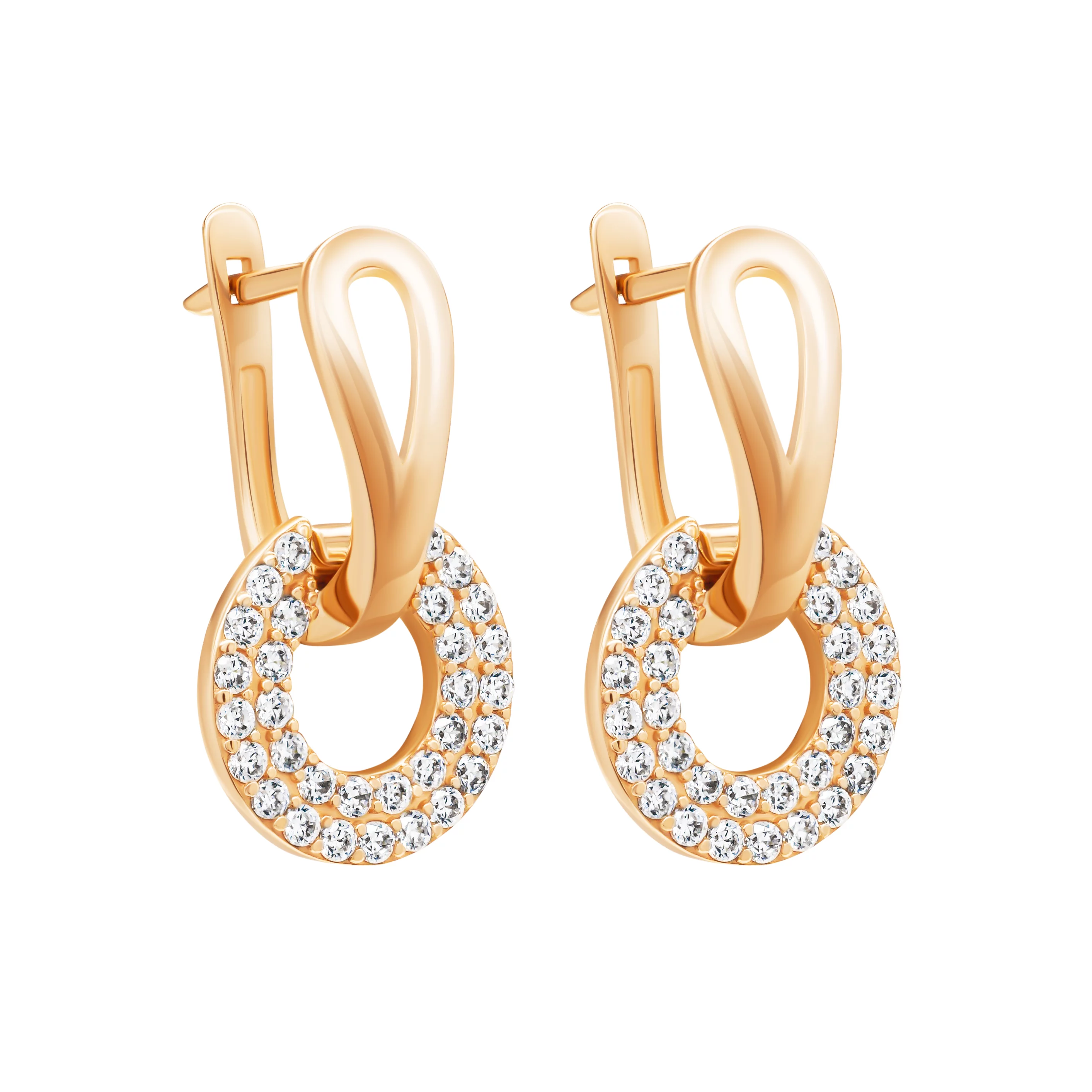 Стильные сережки с подвесом из комбинированного золота с фианитами - 1877893