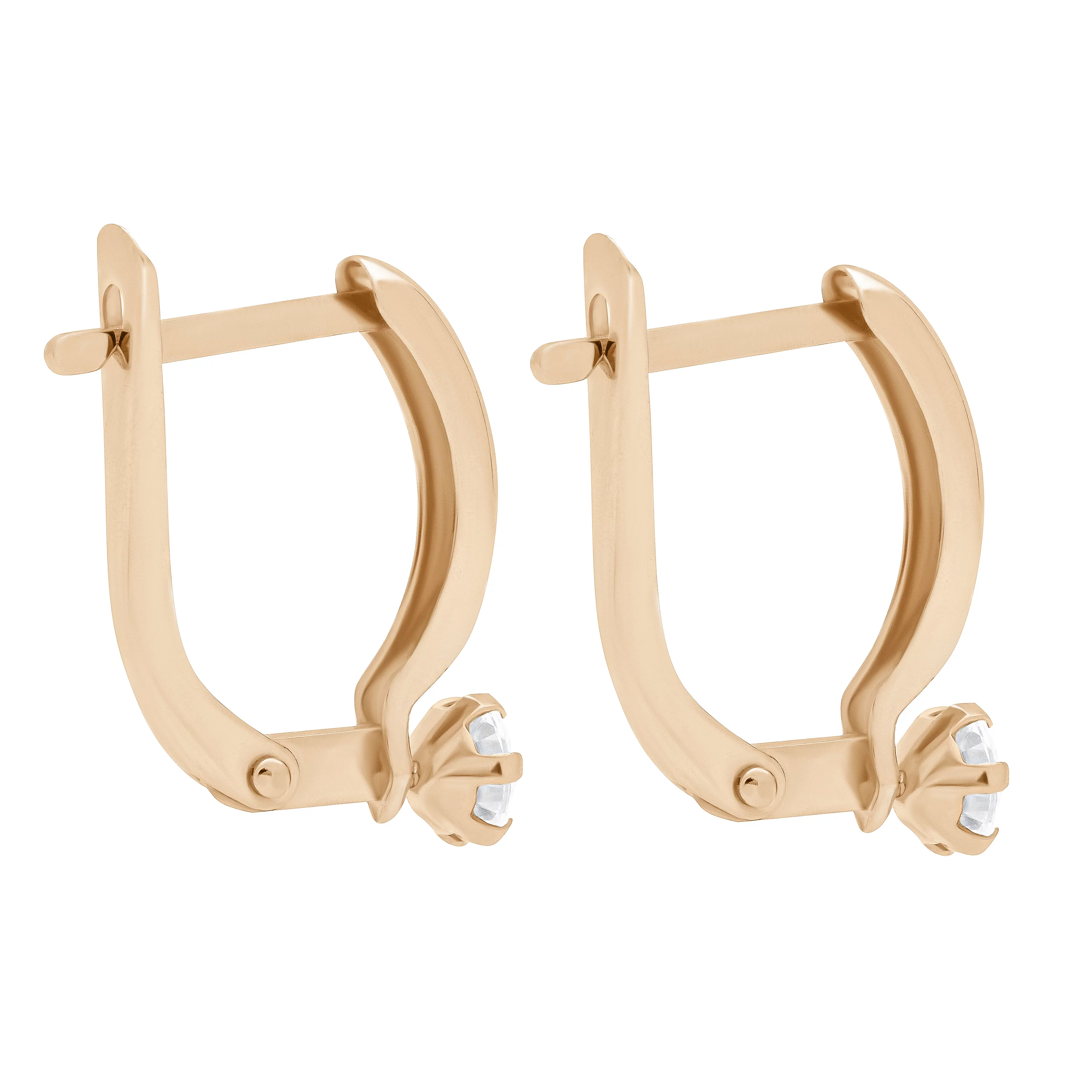Сережки из красного золота с фианитом выполнены в классическом стиле и сочетаются с любыми образами — от деловых до романтических и повседневных. В мочке уха украшения фиксируются благодаря английскому замку, состоящему из швензы и штифта. Он легко застегивается и надежно держится. На нижней части каждой сережки есть вставка с фианитом. У камней круглая огранка, обеспечивающая отличное светопреломление и яркое сияние под лучами солнца или лампы. Сережки изготовлены из красного золота 585 пробы. Подходят для подарка на выпускной, совершеннолетие и другие торжества.