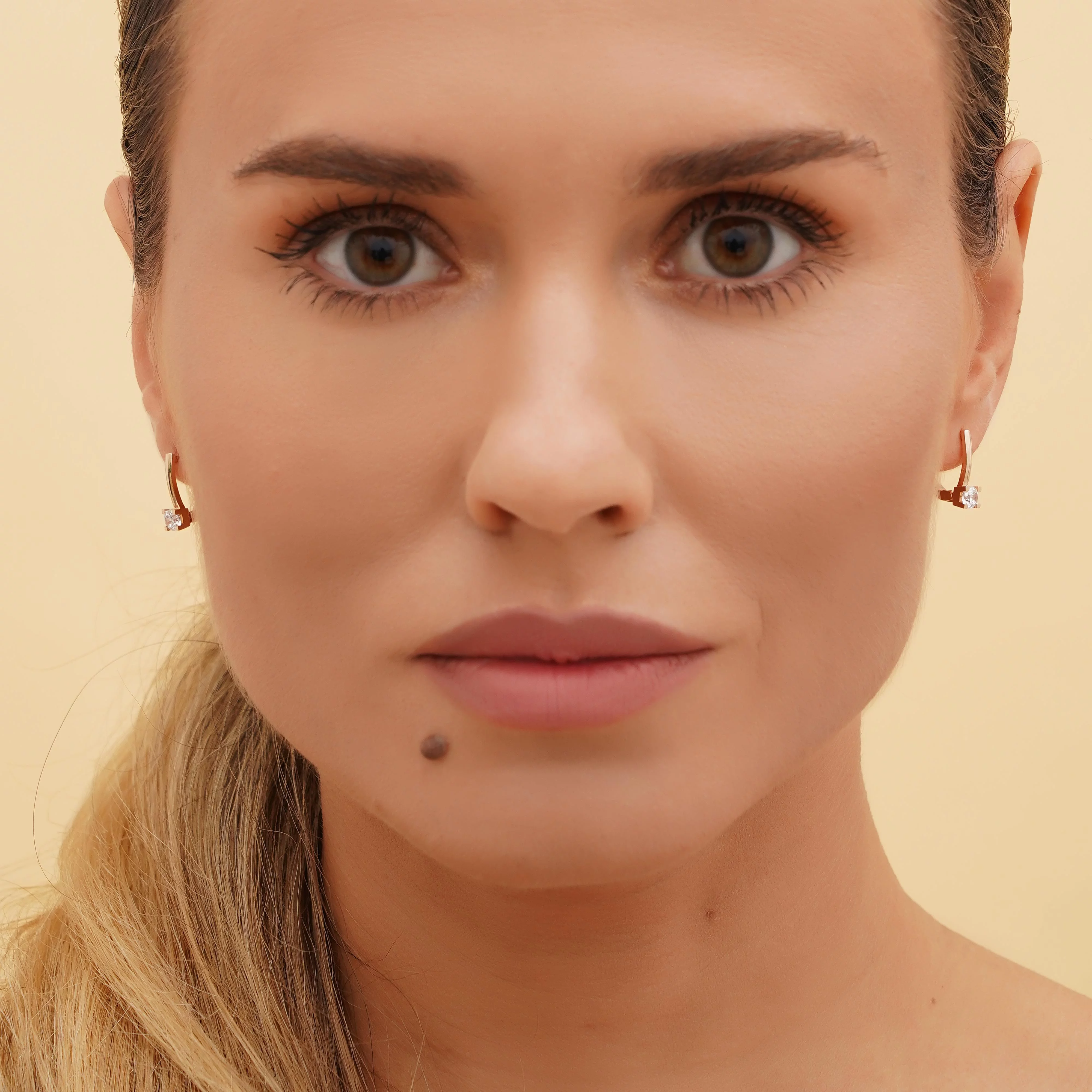 Сережки из красного золота с фианитом - 1748316