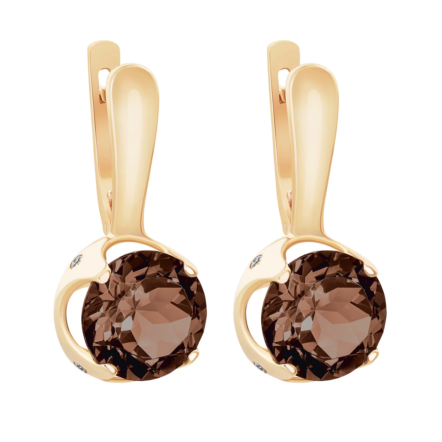 Сережки-гвоздики с топазом лондон и фианитами из красного золота - 1525469