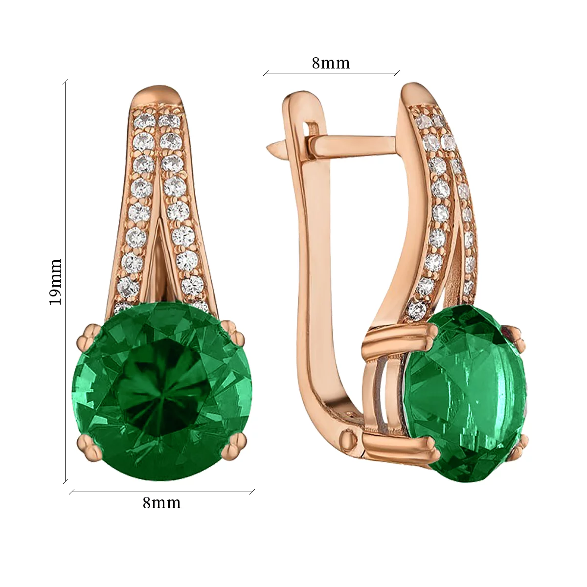 Сережки квадратной форми из красного золота с турмалином и фианитами - 1562305