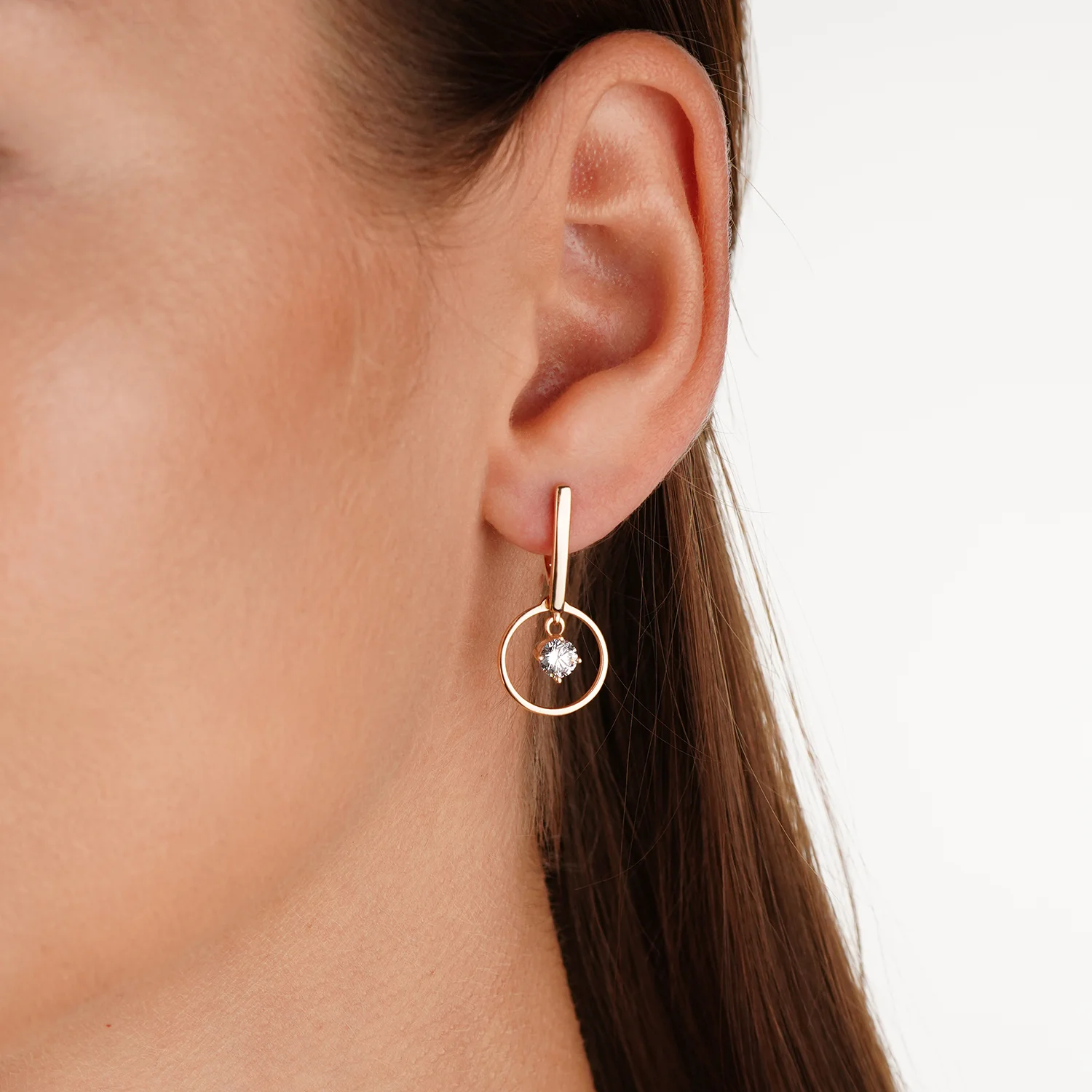 Серьги в красном золоте с фианитом и подвесками спиральной формы - 1589621