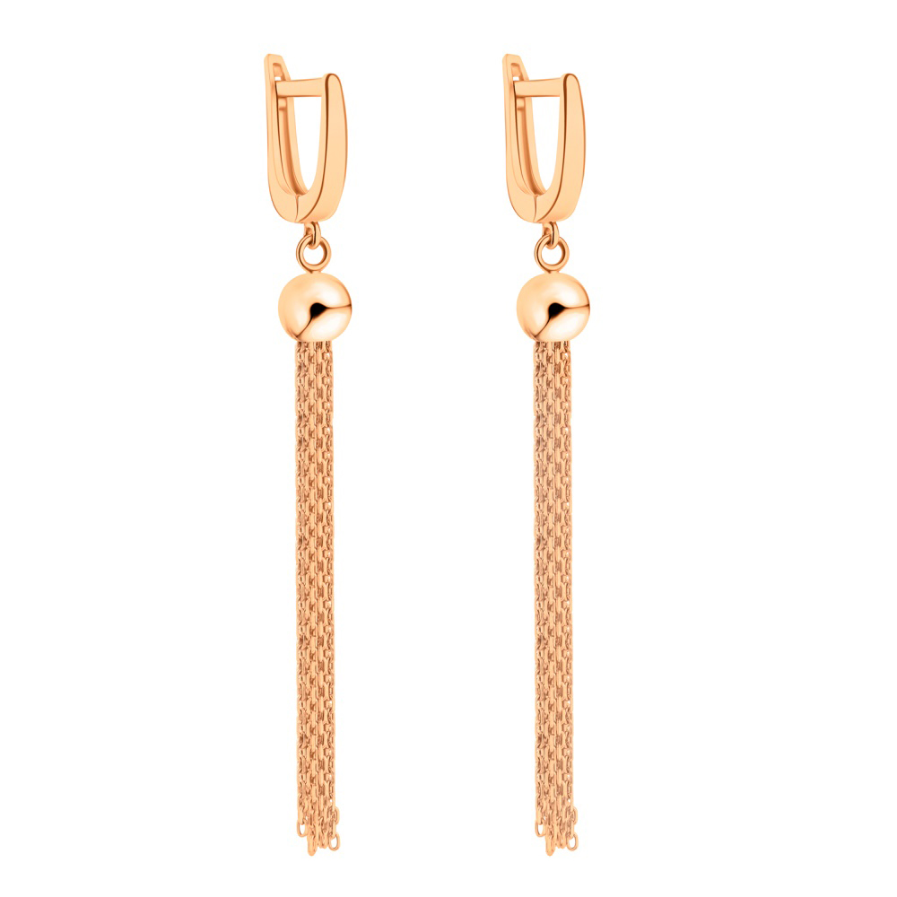 Сережки из красного золота с подвесами "Цепочки" - 962248